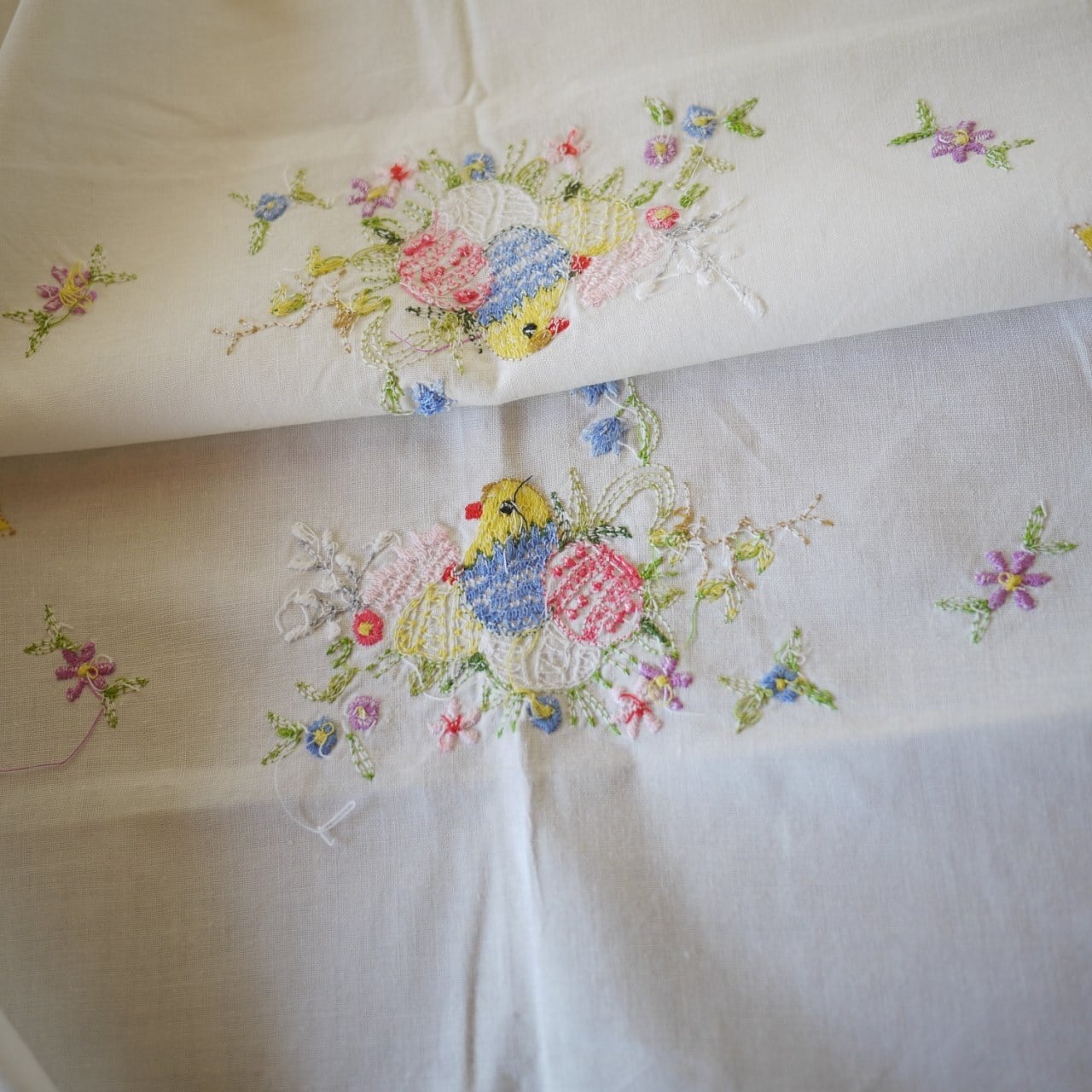 ひよことスズラン 刺繍のテーブルクロス ドイツ