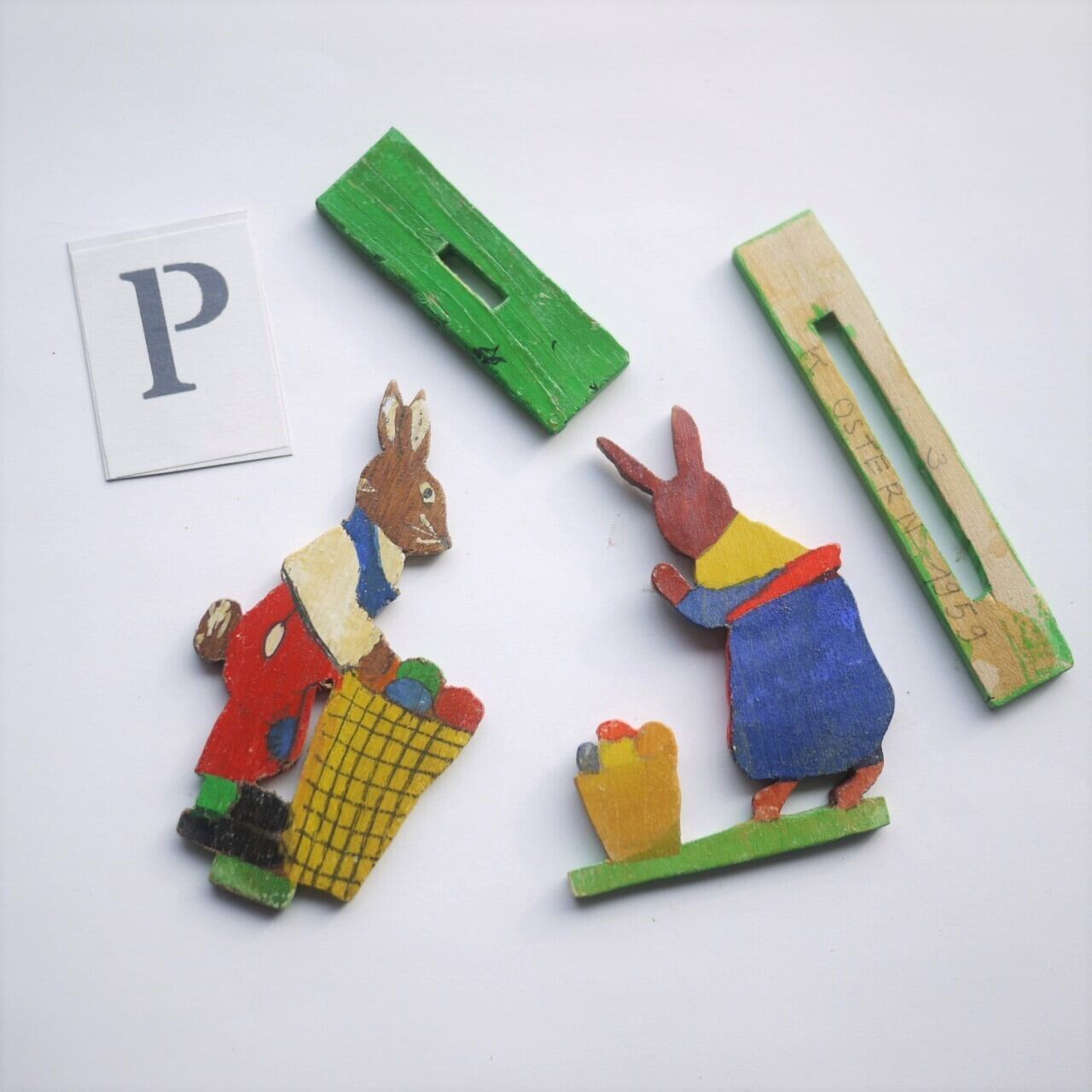 板絵飾り イースターうさぎドイツ Märchen-Holzbild