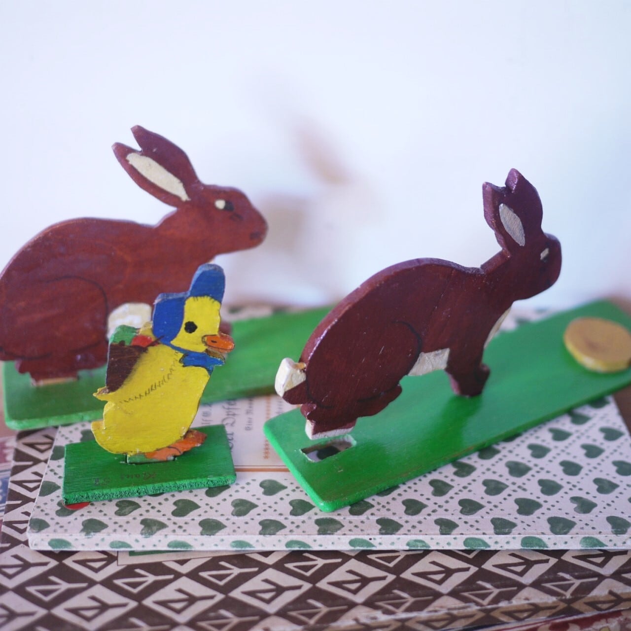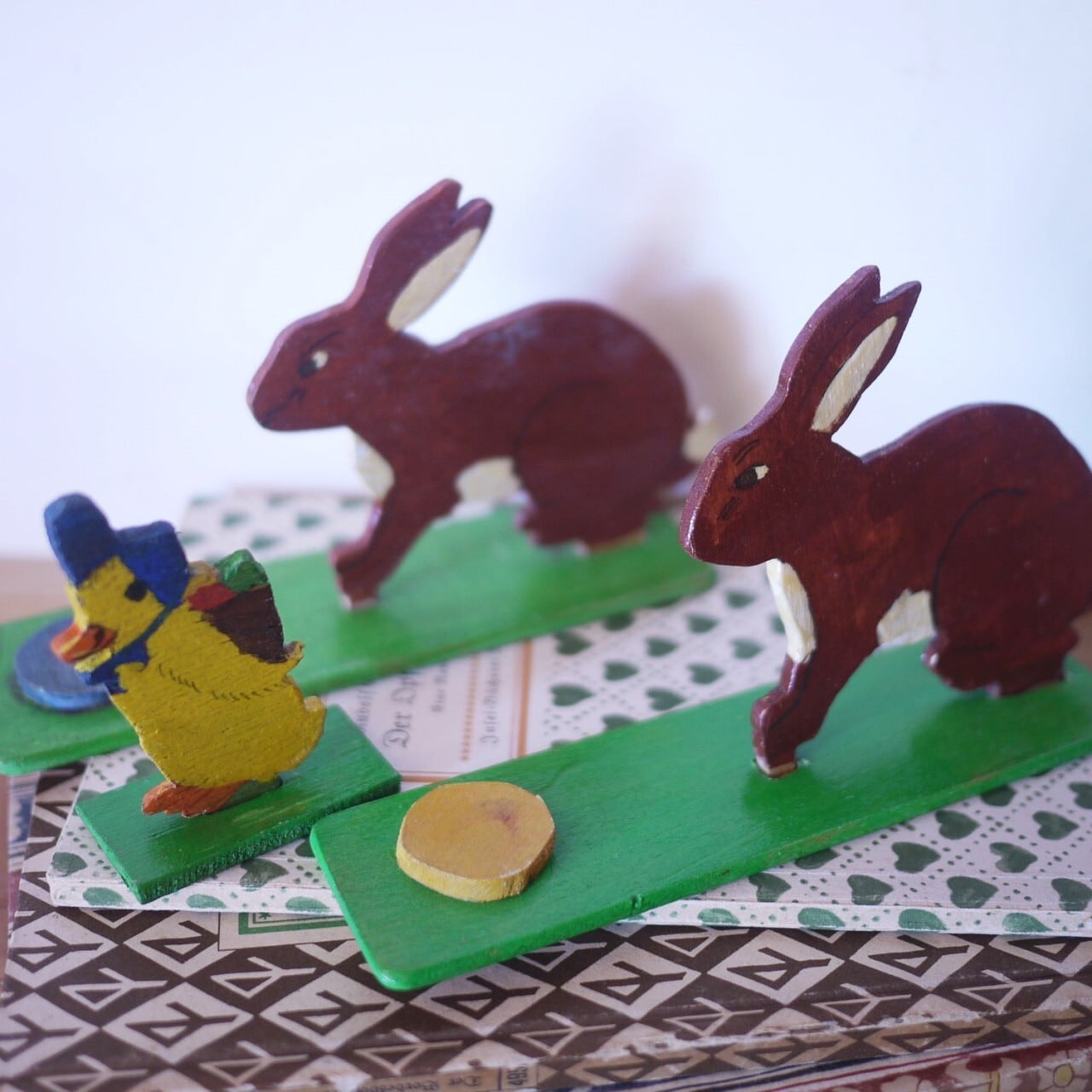 板絵飾り イースターうさぎとあひる ドイツヴィンテージ Marchen-Holzbild