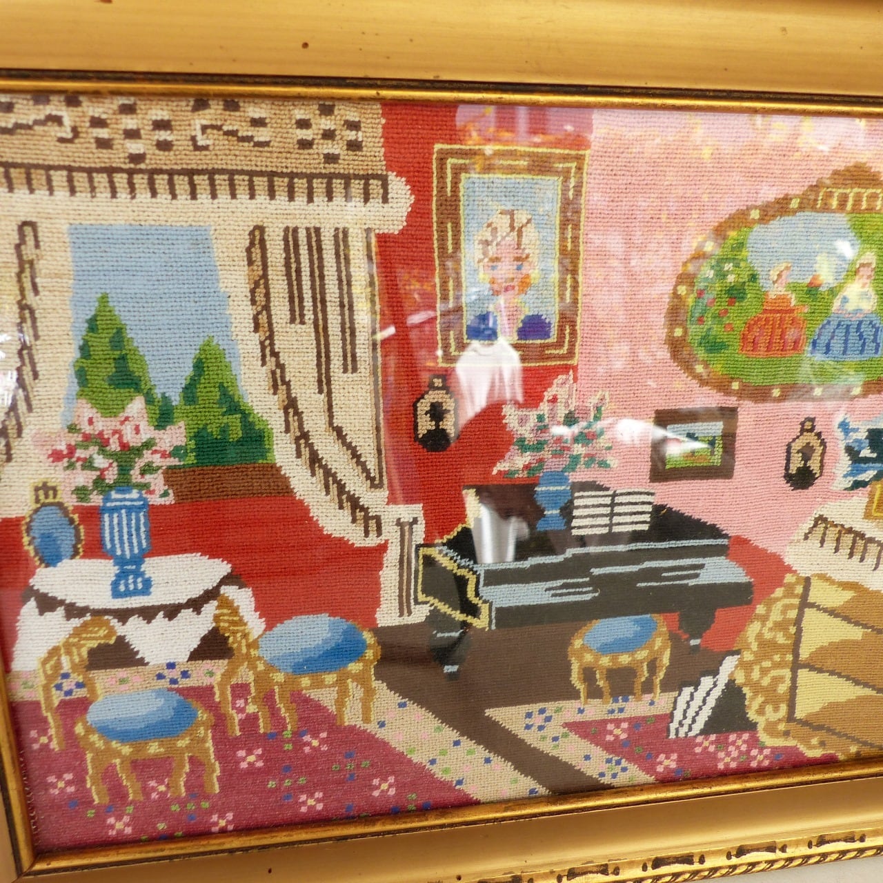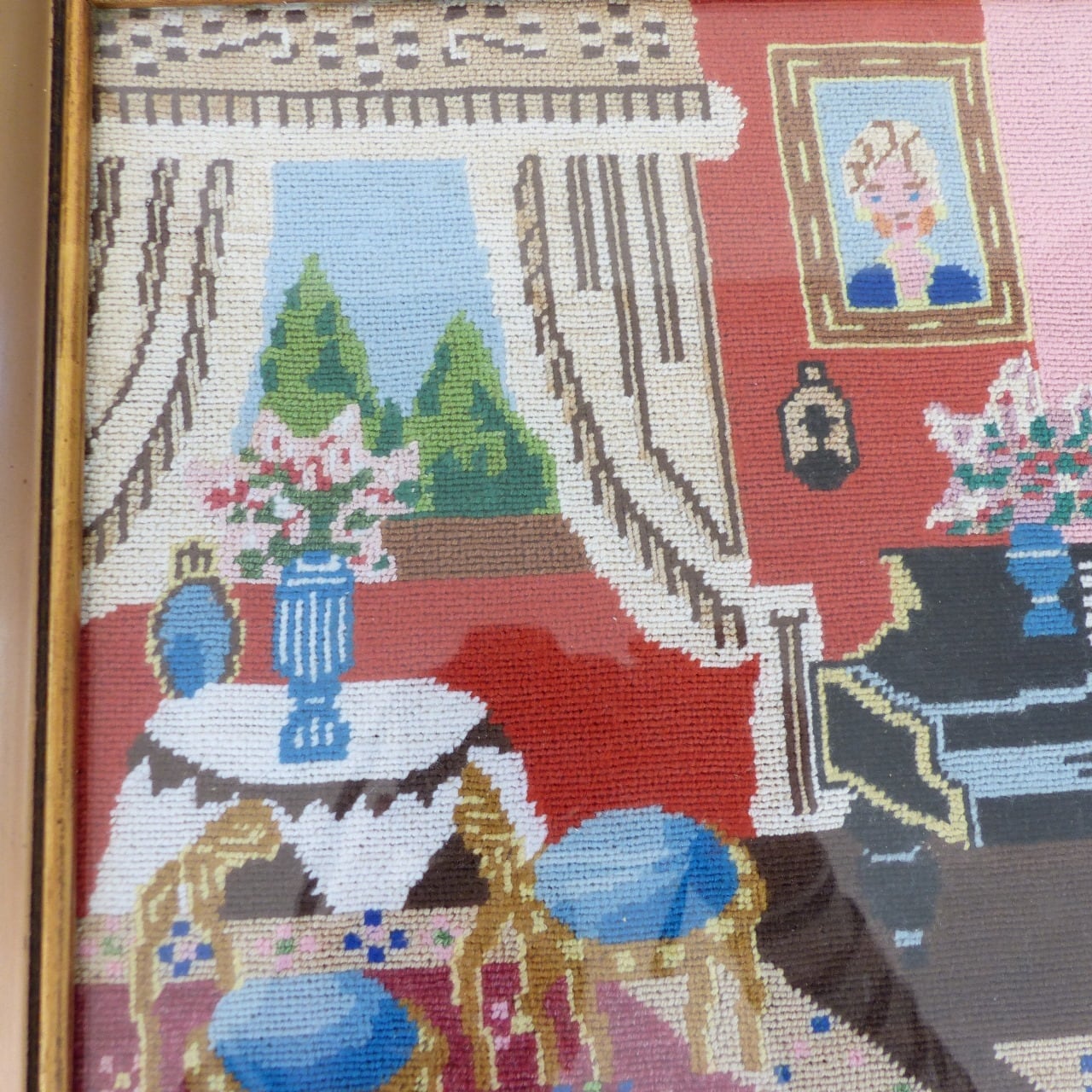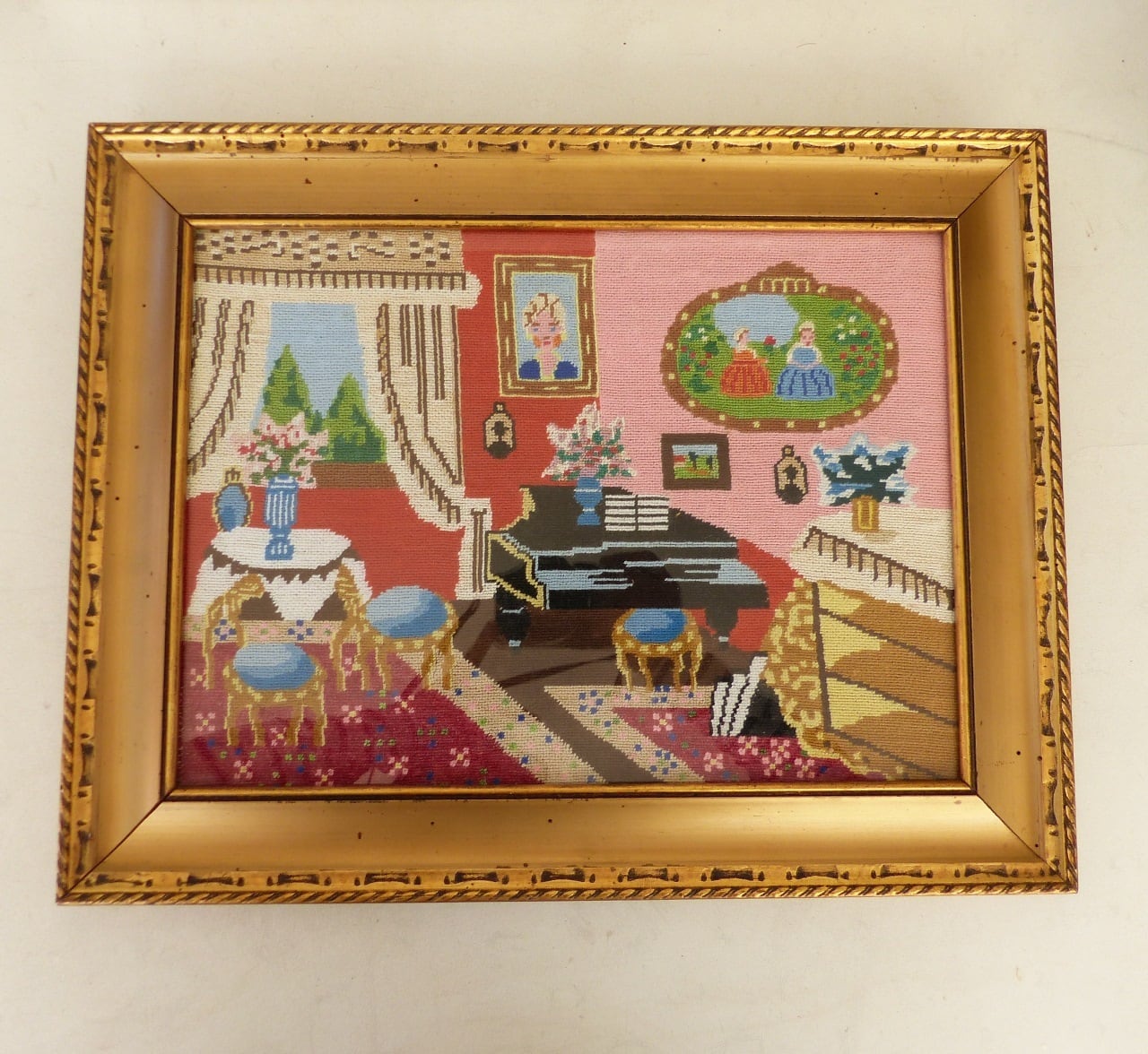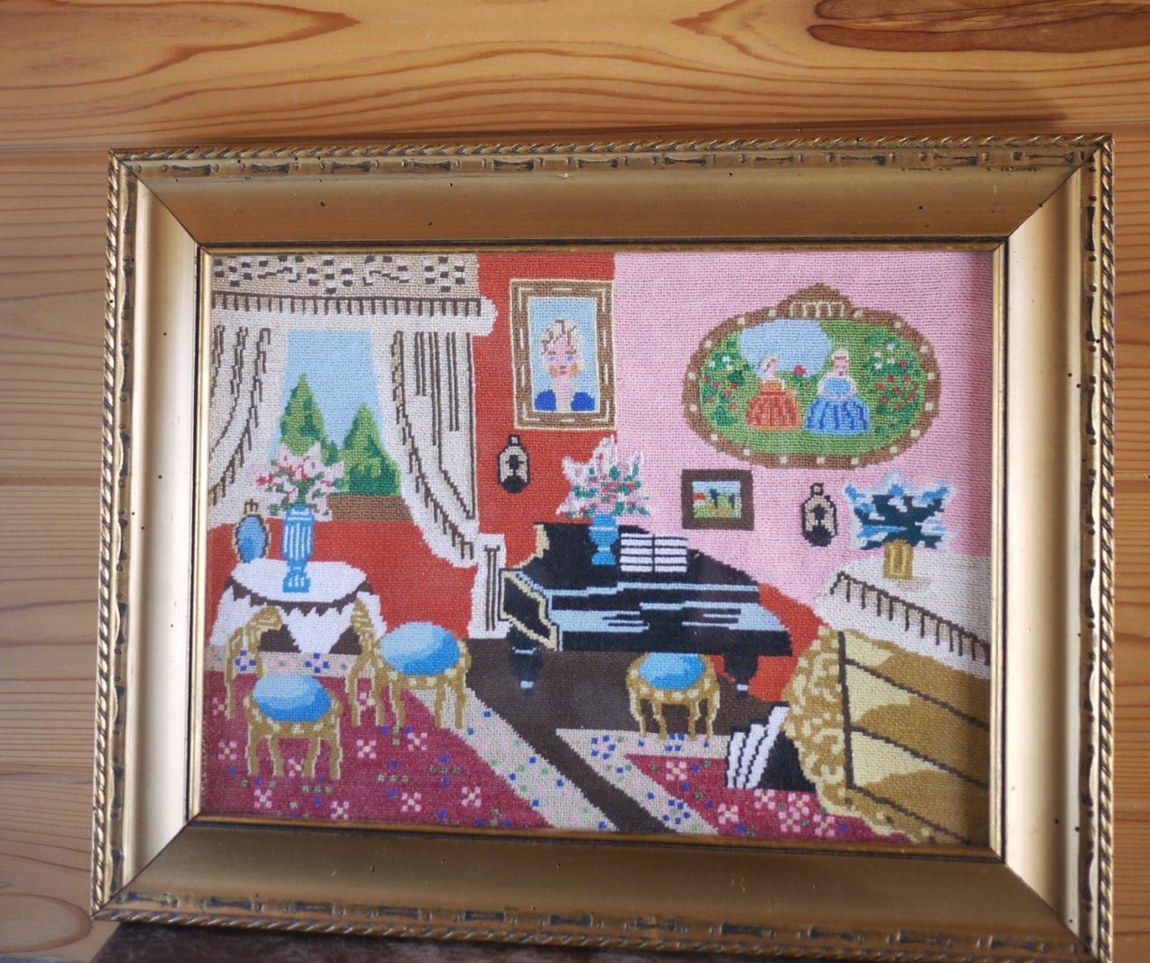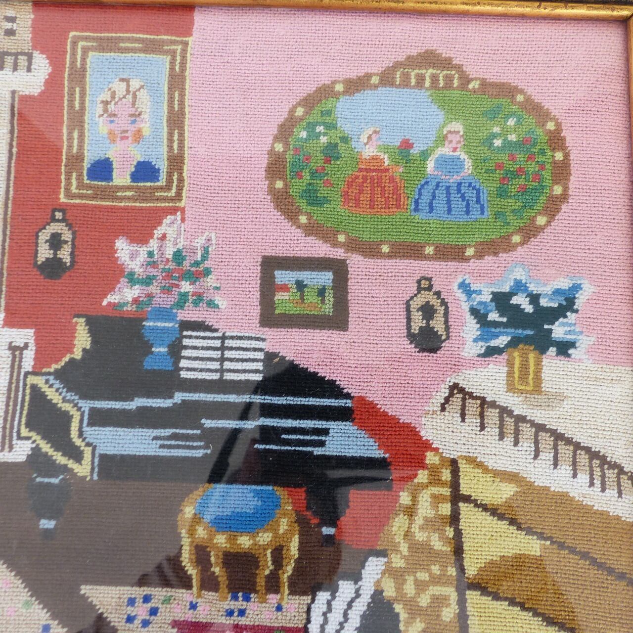 刺繍画額装 ニードルポイントプチポワン ピアノのある部屋