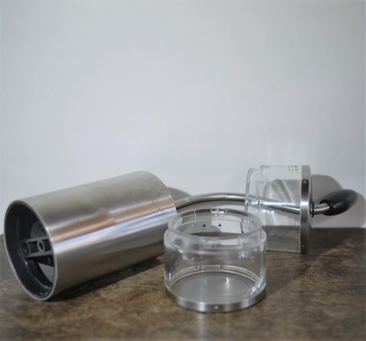 透明アクリル&ステンレスの本体にセラミックのミル刃が装着され、