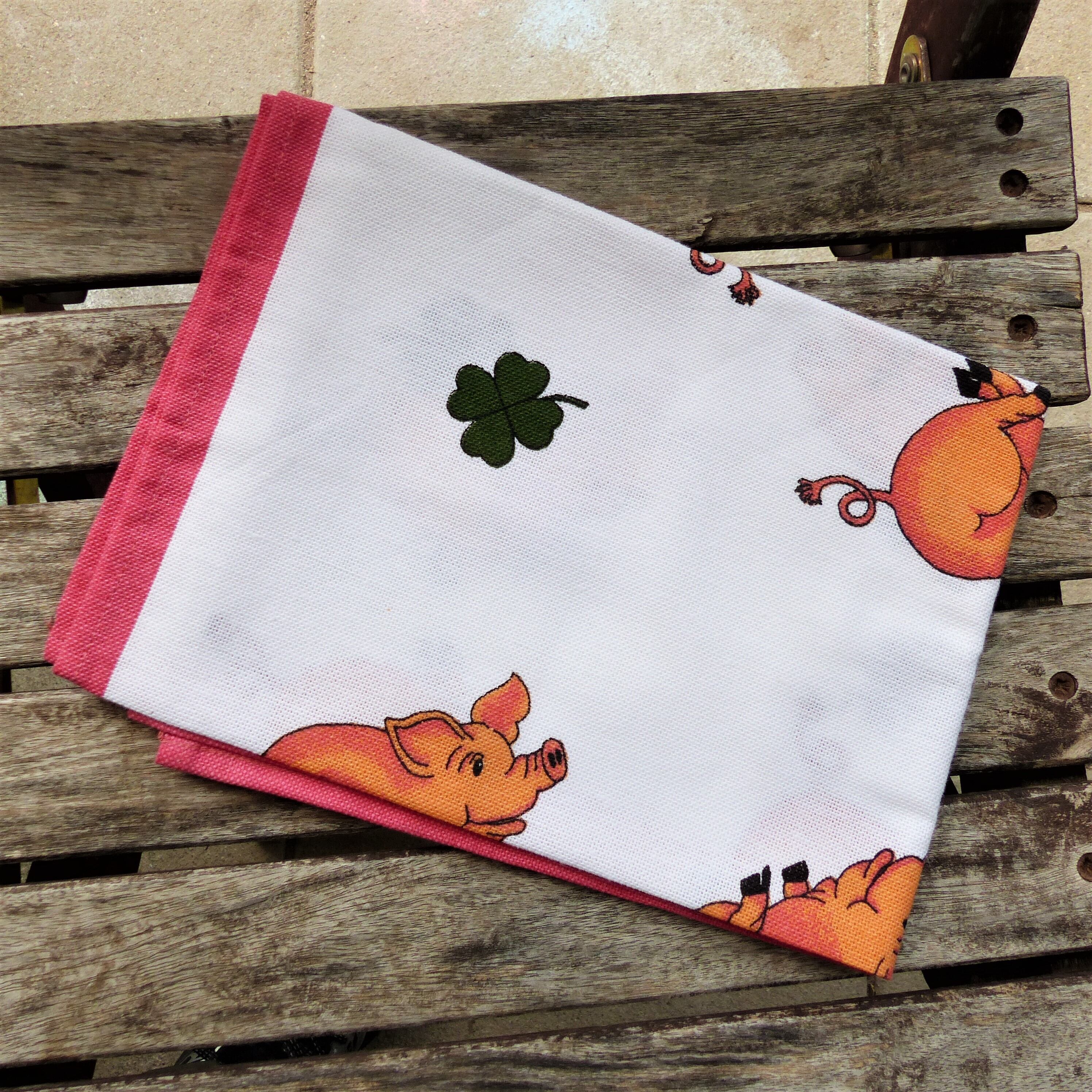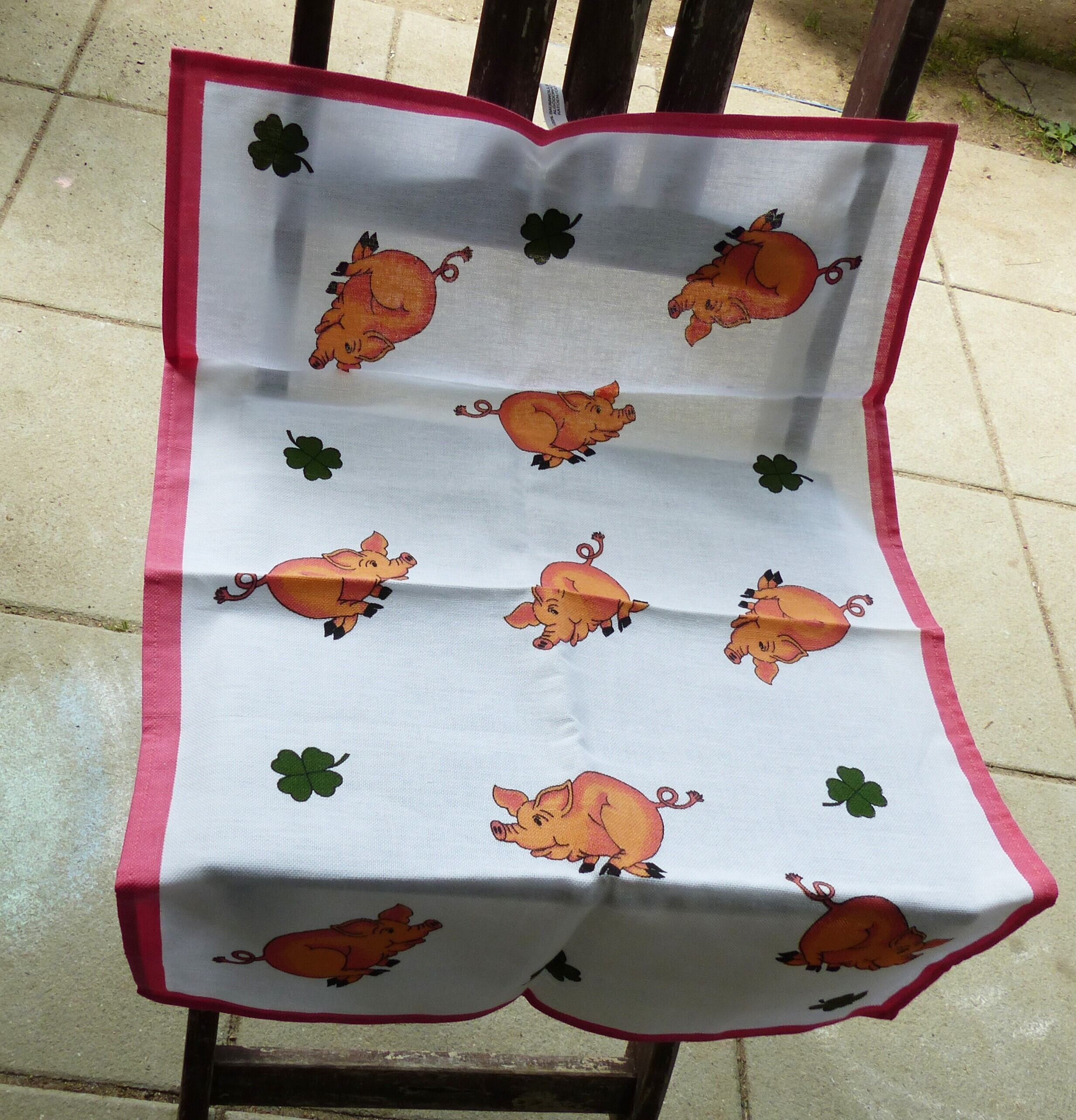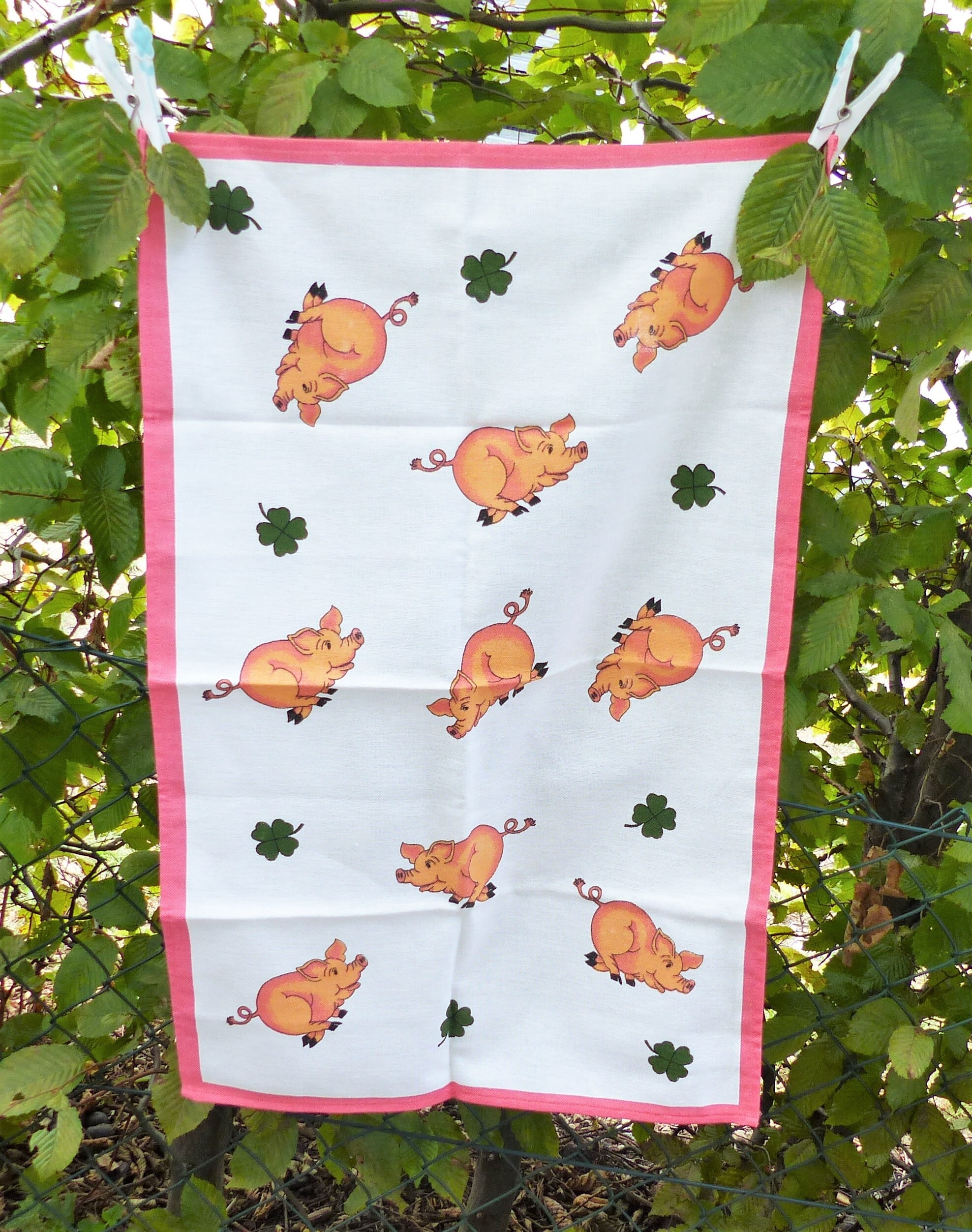 幸せを運んでくれる豚と幸運のクローバーのプリント