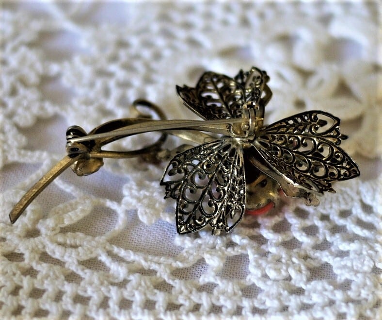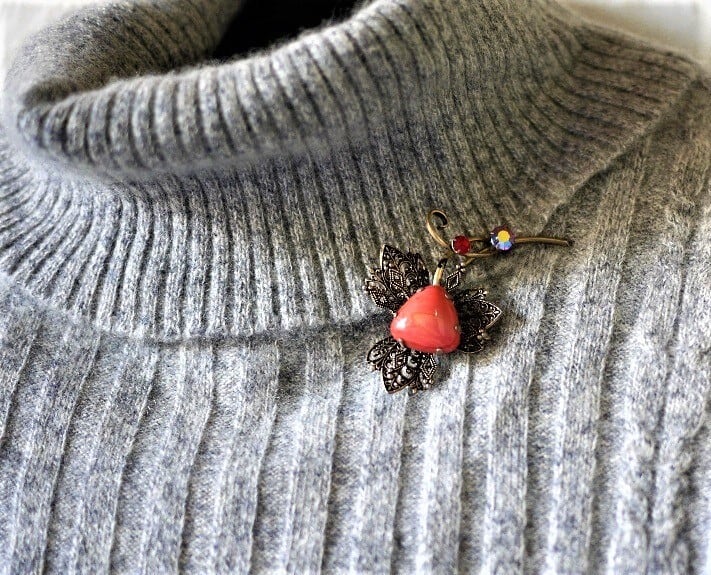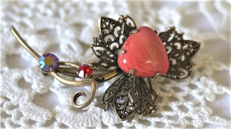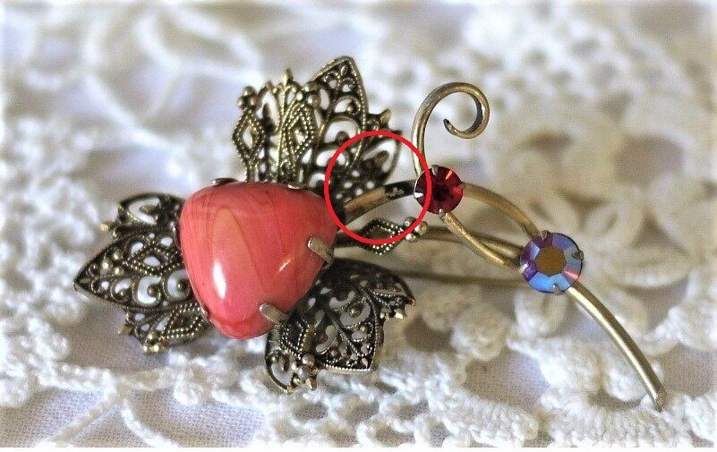 ラインストーンは光が反射し、様々な色にみえますが赤です。
