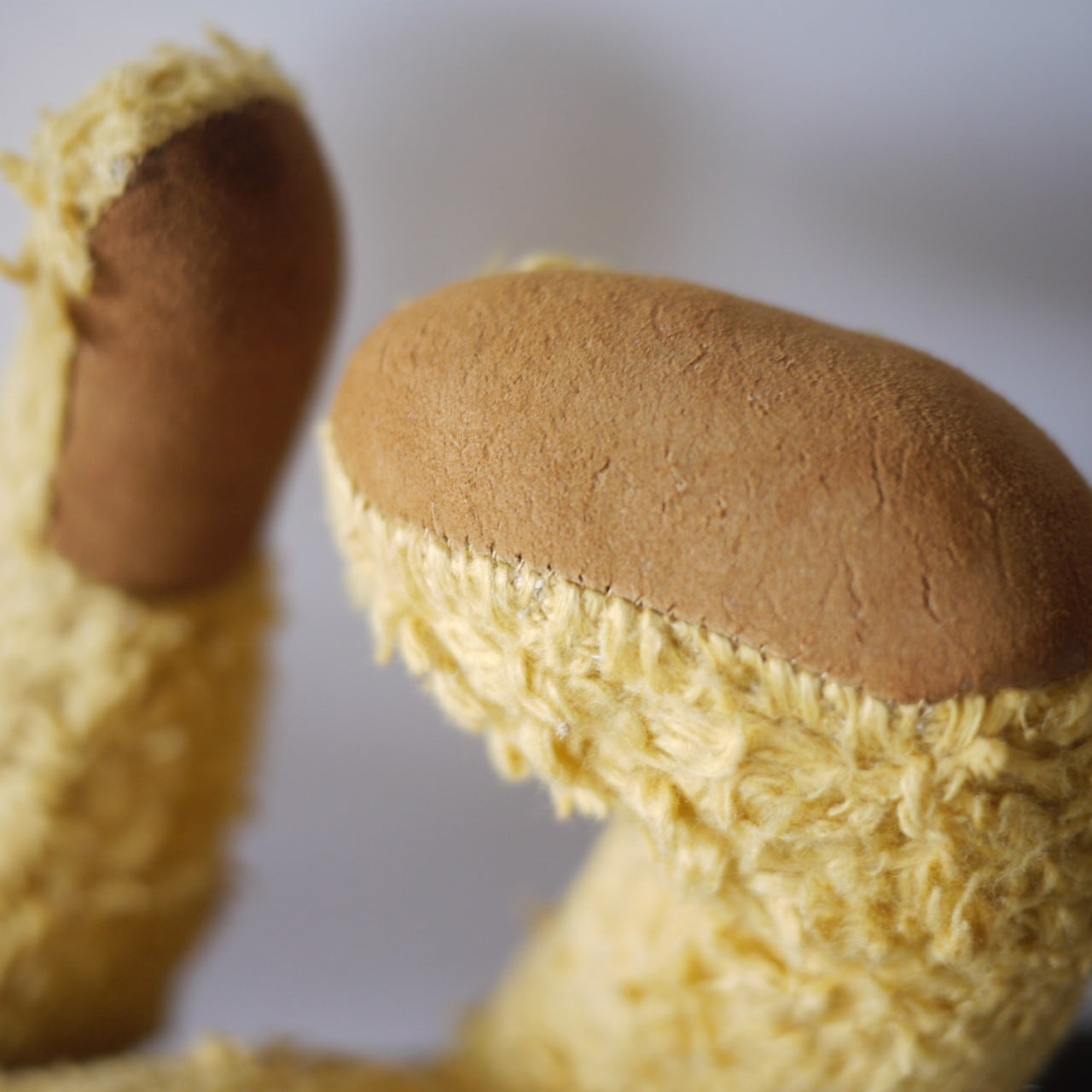 ちょっとゆがんだ口元と鼻は刺繍の縫い取り。