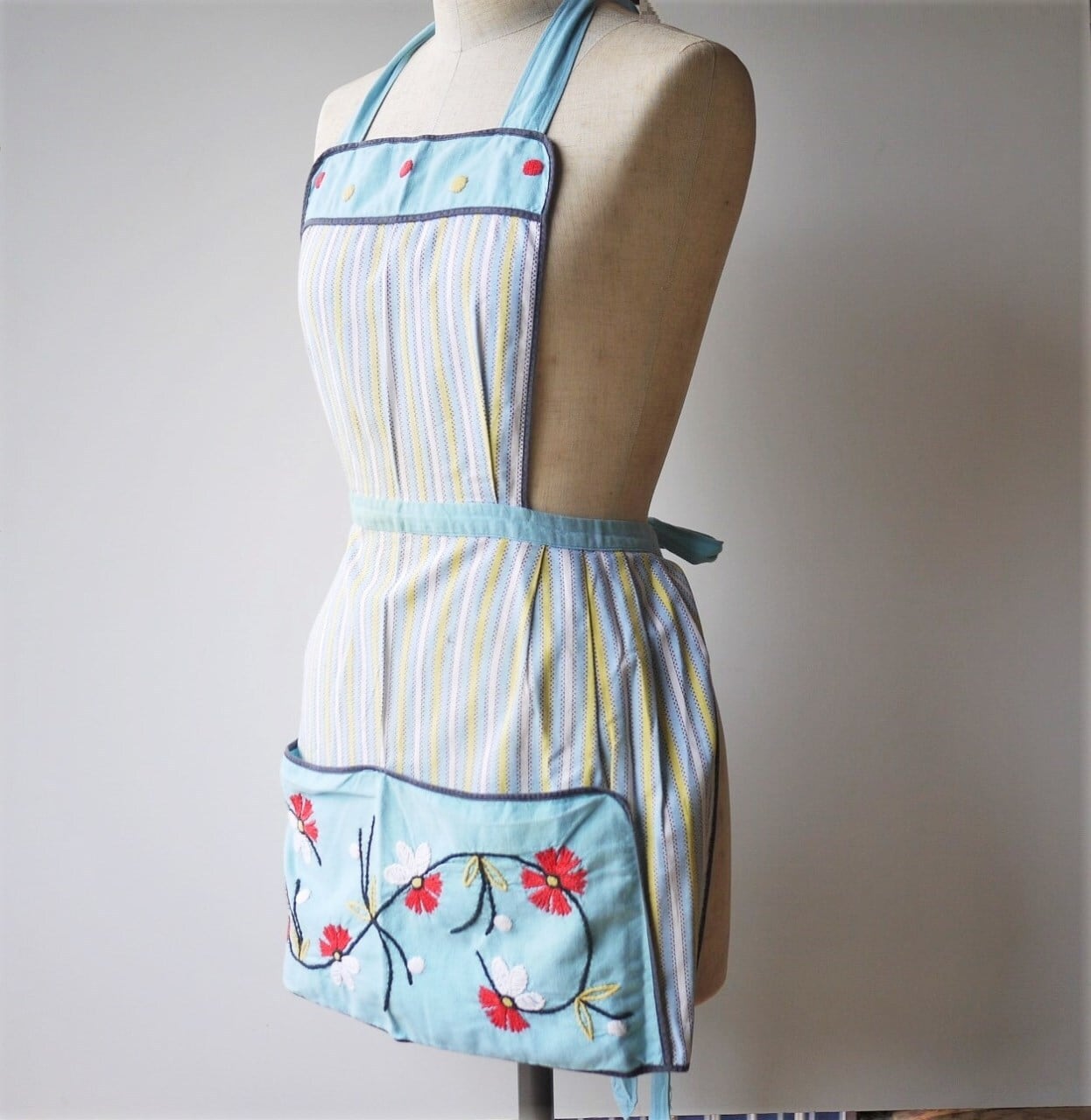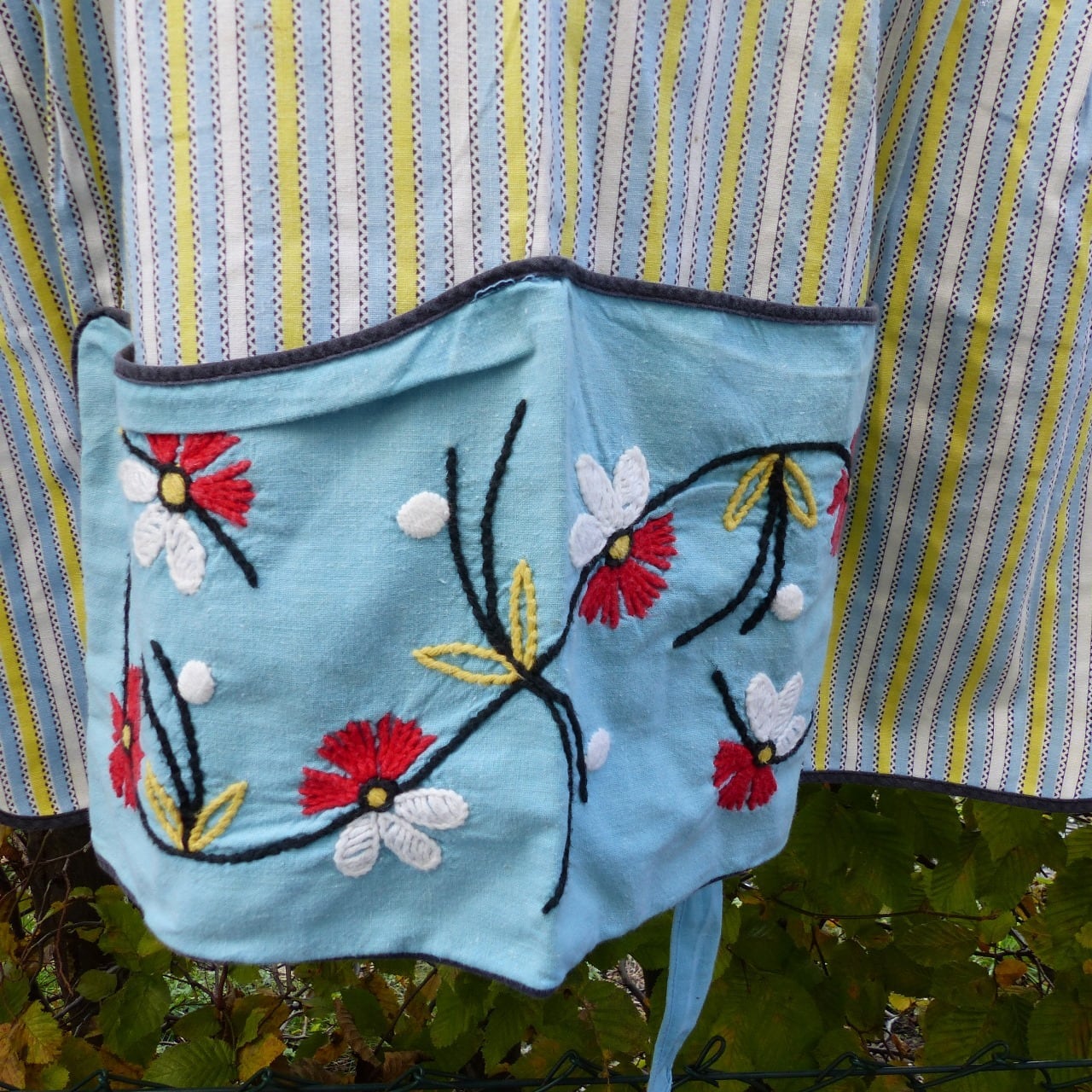 エプロン ストライプと刺繍の花 ドイツヴィンテージ
