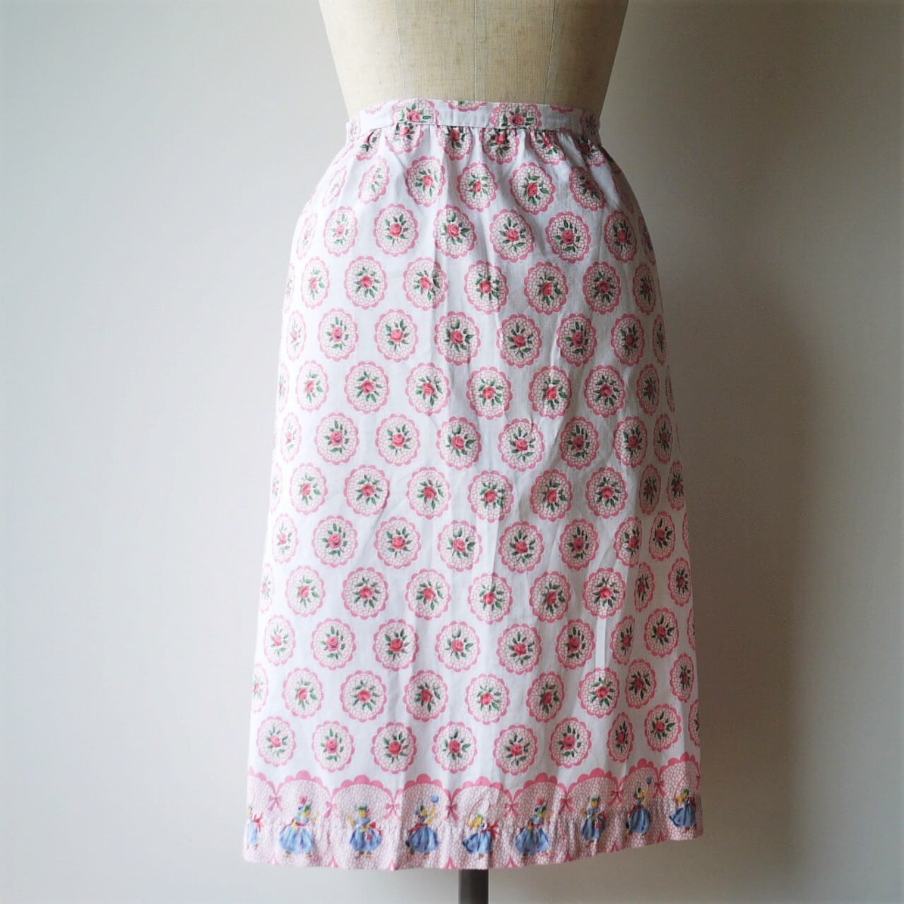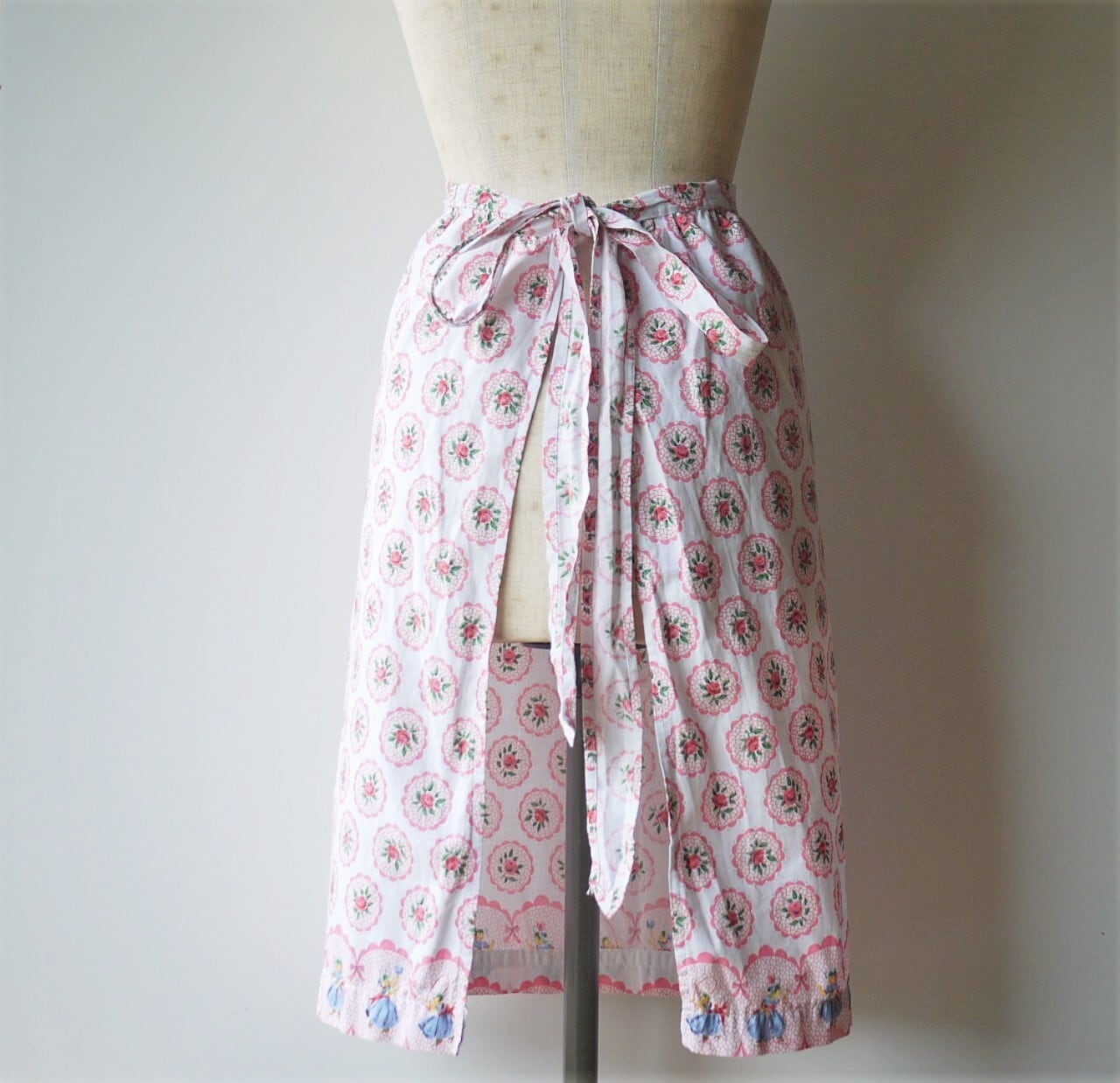エプロン ピンクの薔薇と女の子 ドイツヴィンテージ