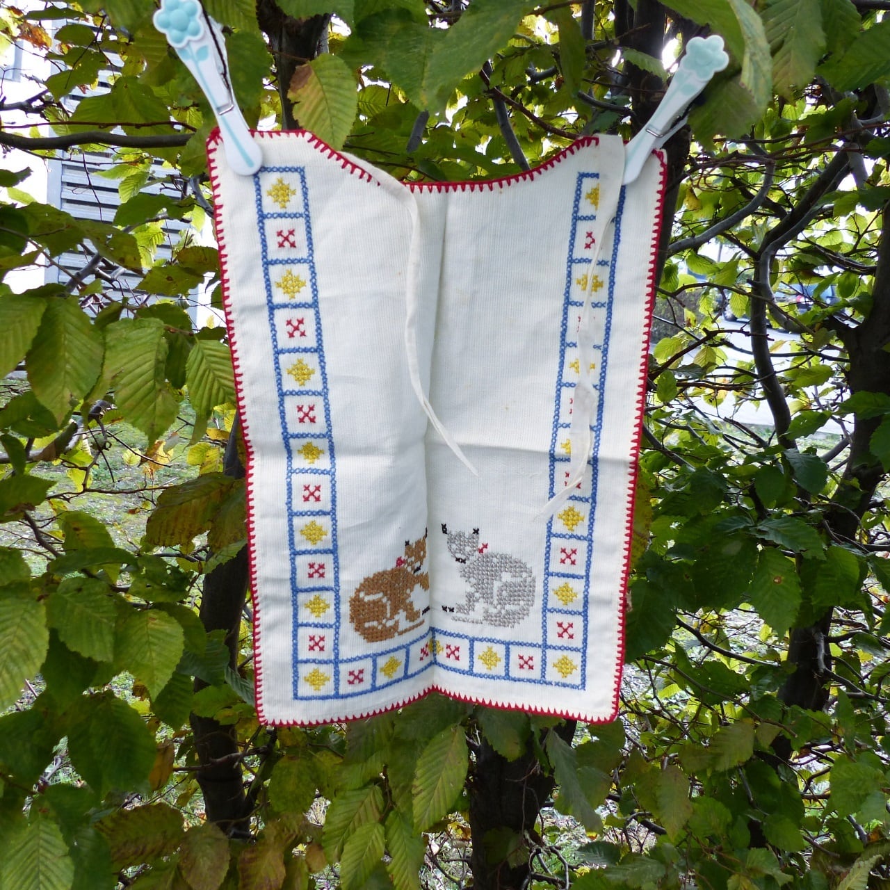 ネコさんししゅうのスタイ、エプロン