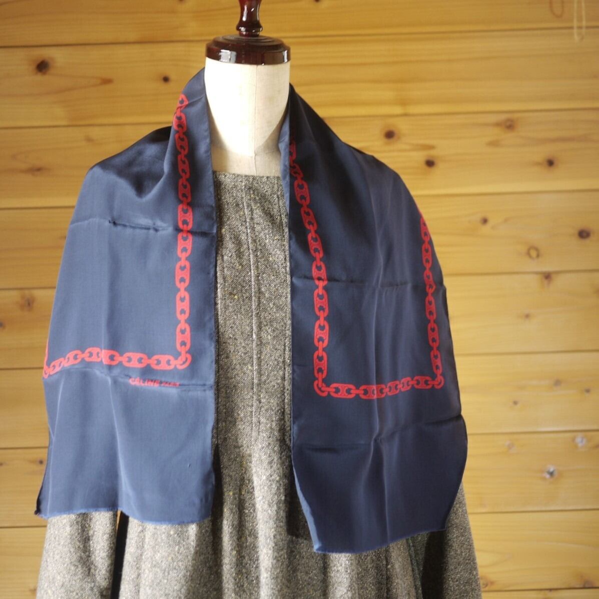 ヴィンテージスカーフ CELINE チェーン紺 難あり