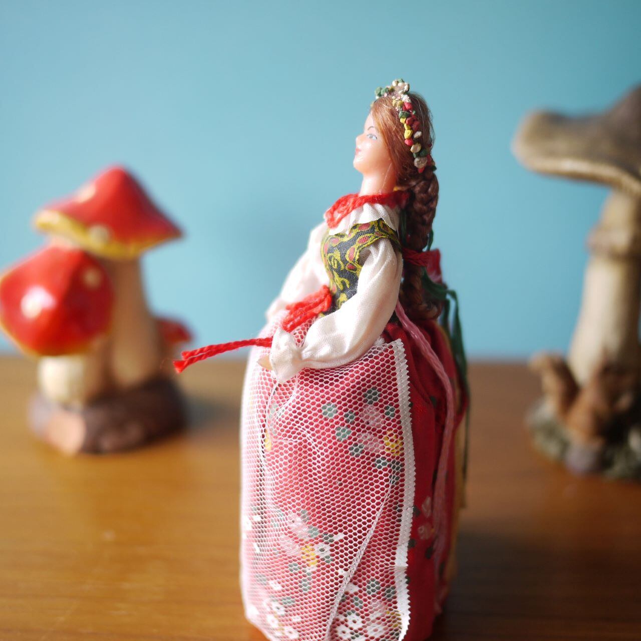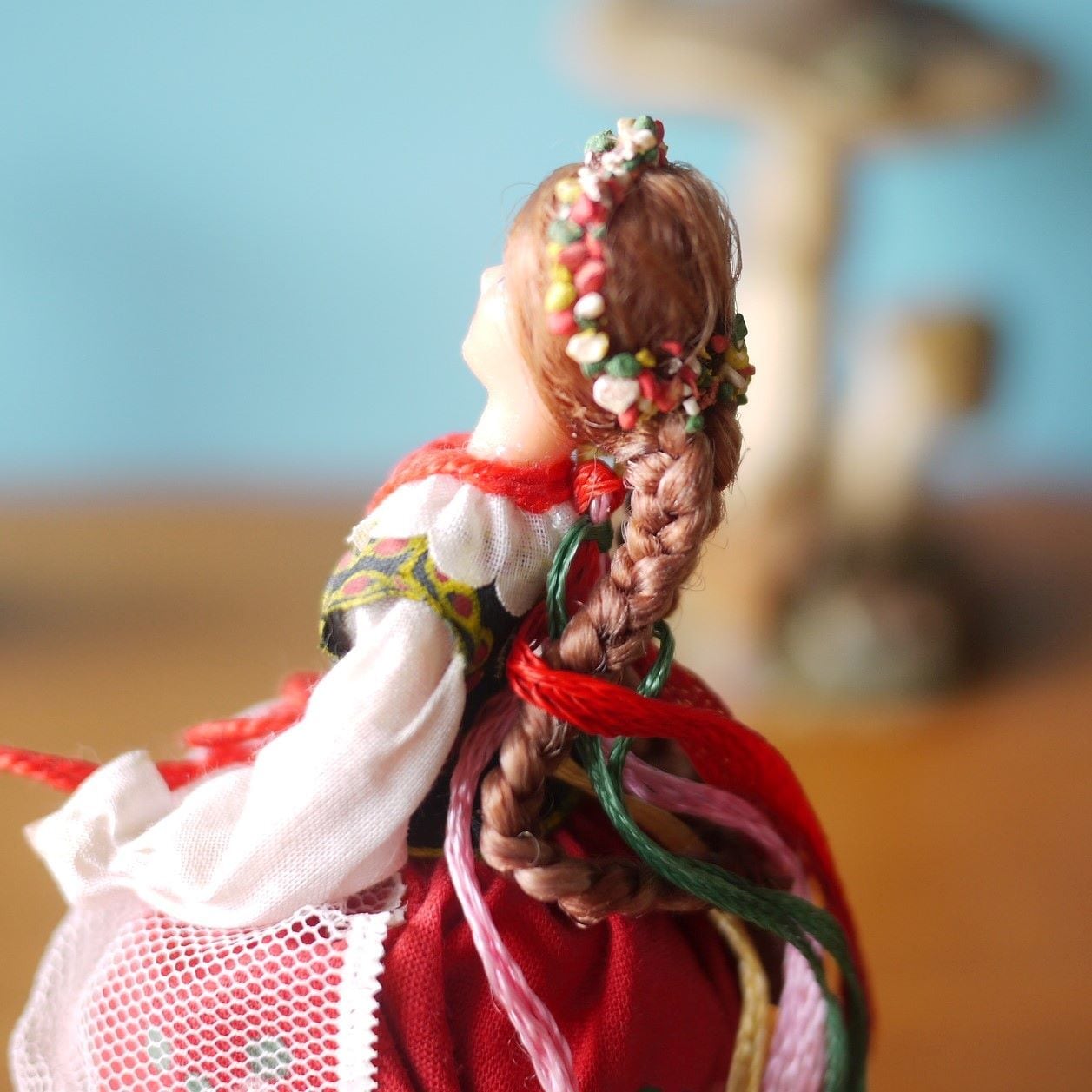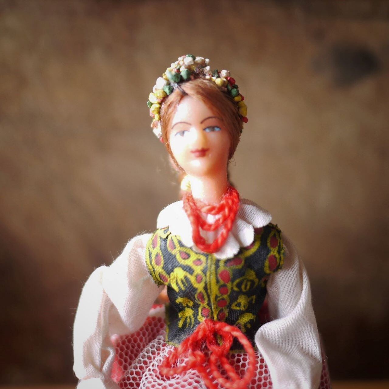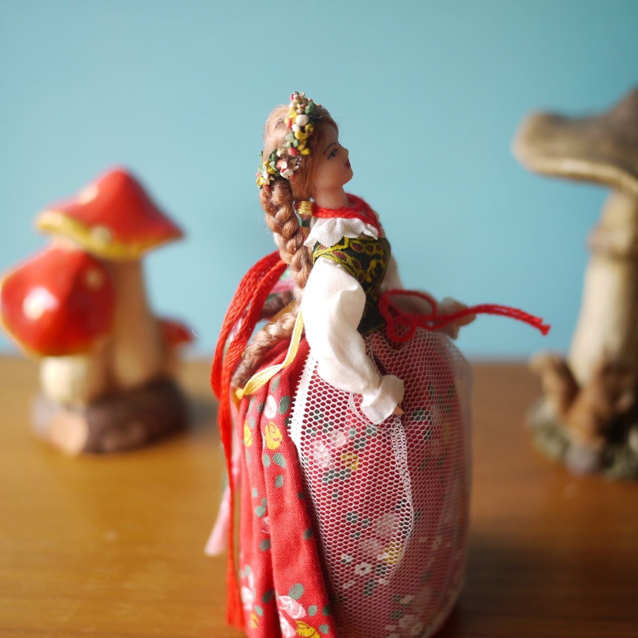 ポーランド、クラクフの伝統的な衣装を身に纏った愛らしいコスチュームドール。
