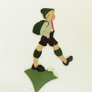 登山する男の子 MertensーFRIES 壁飾り板絵 Märchen-Holzbild