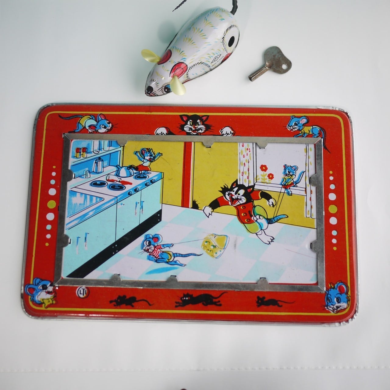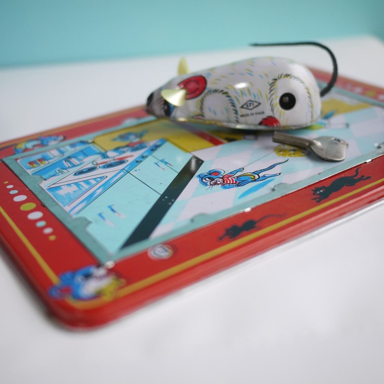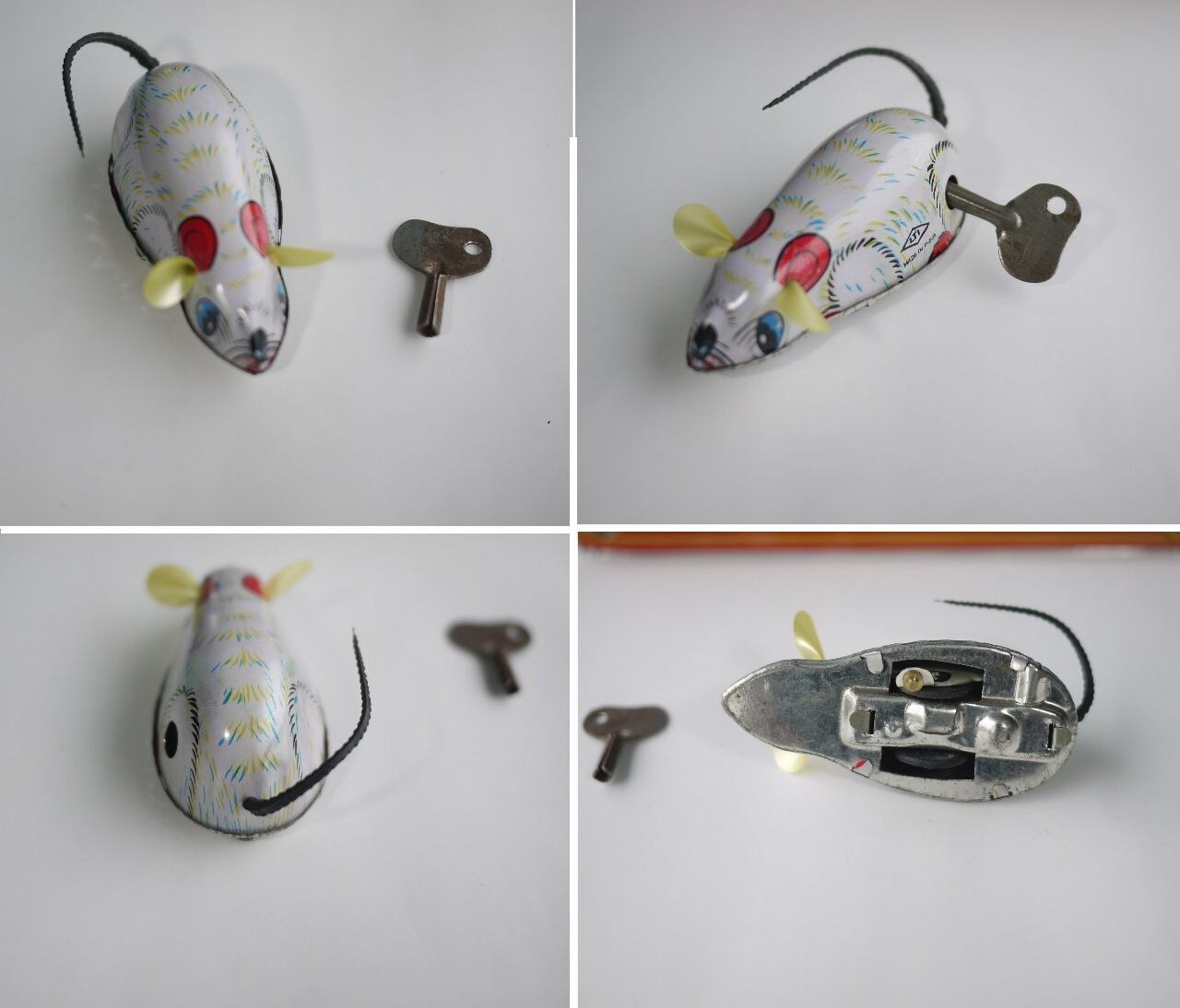 ゼンマイ仕掛けで動き回るブリキのネズミです。