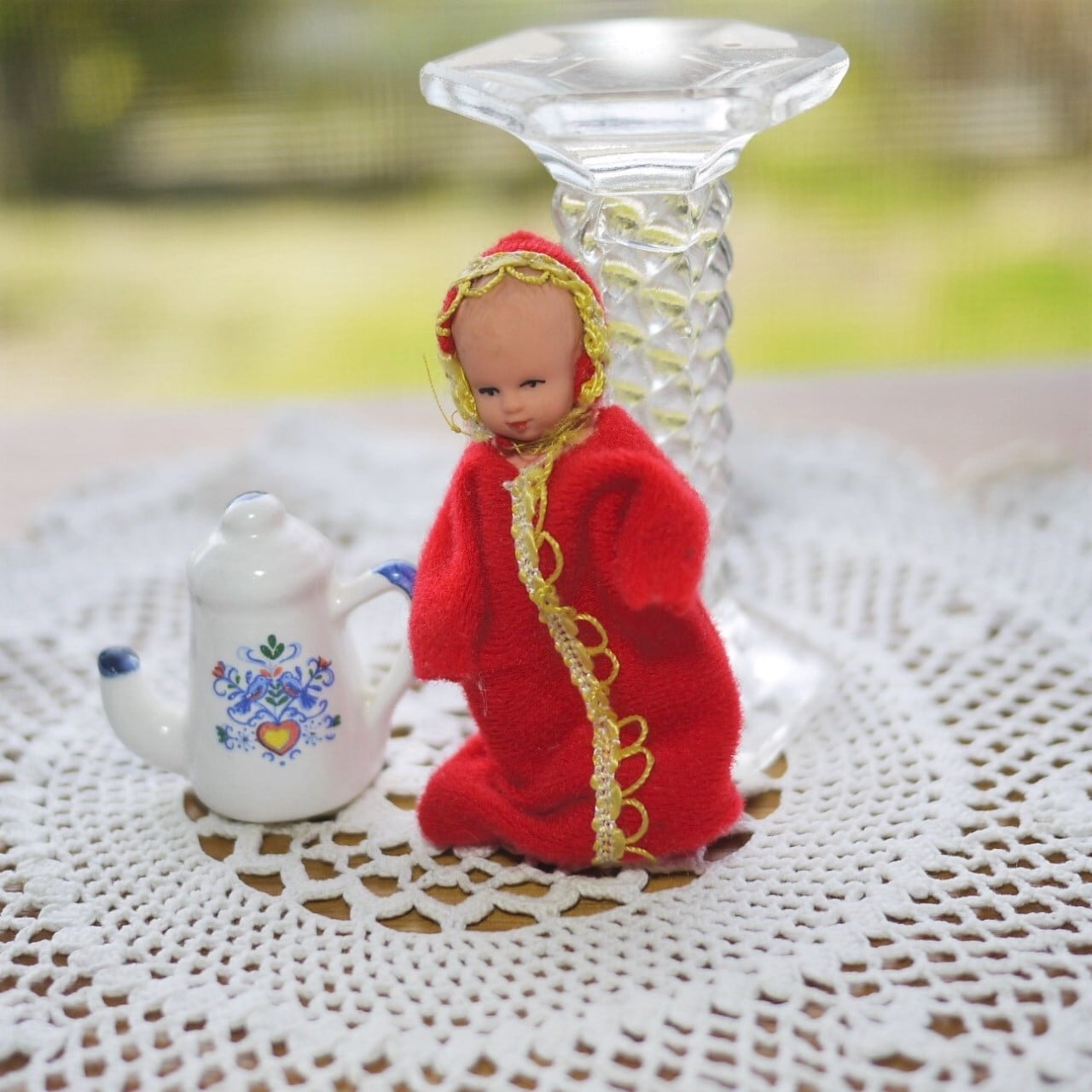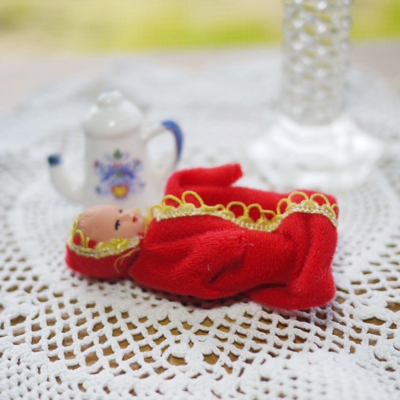 ミニチュアベビー コスチュームドール 赤いおくるみ