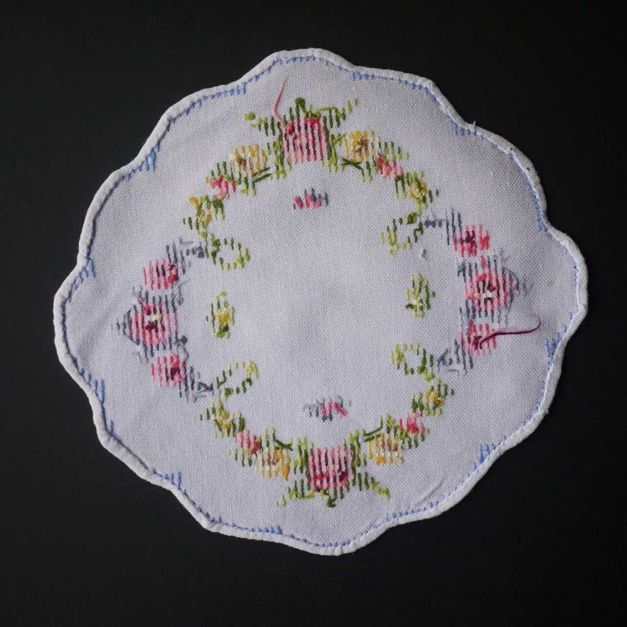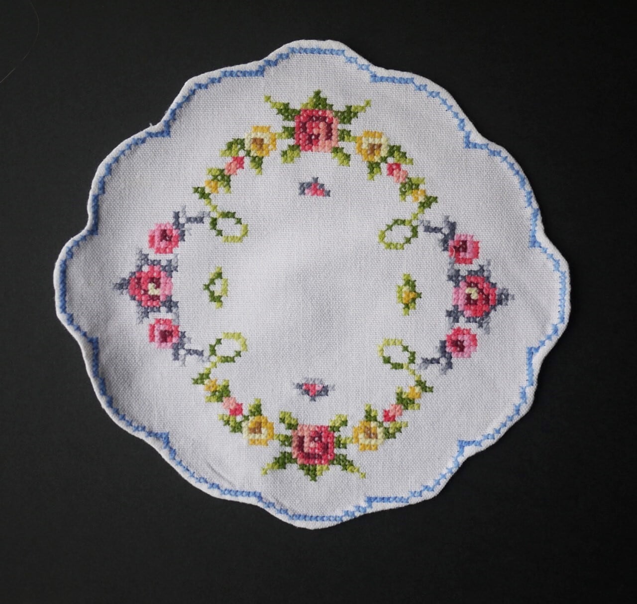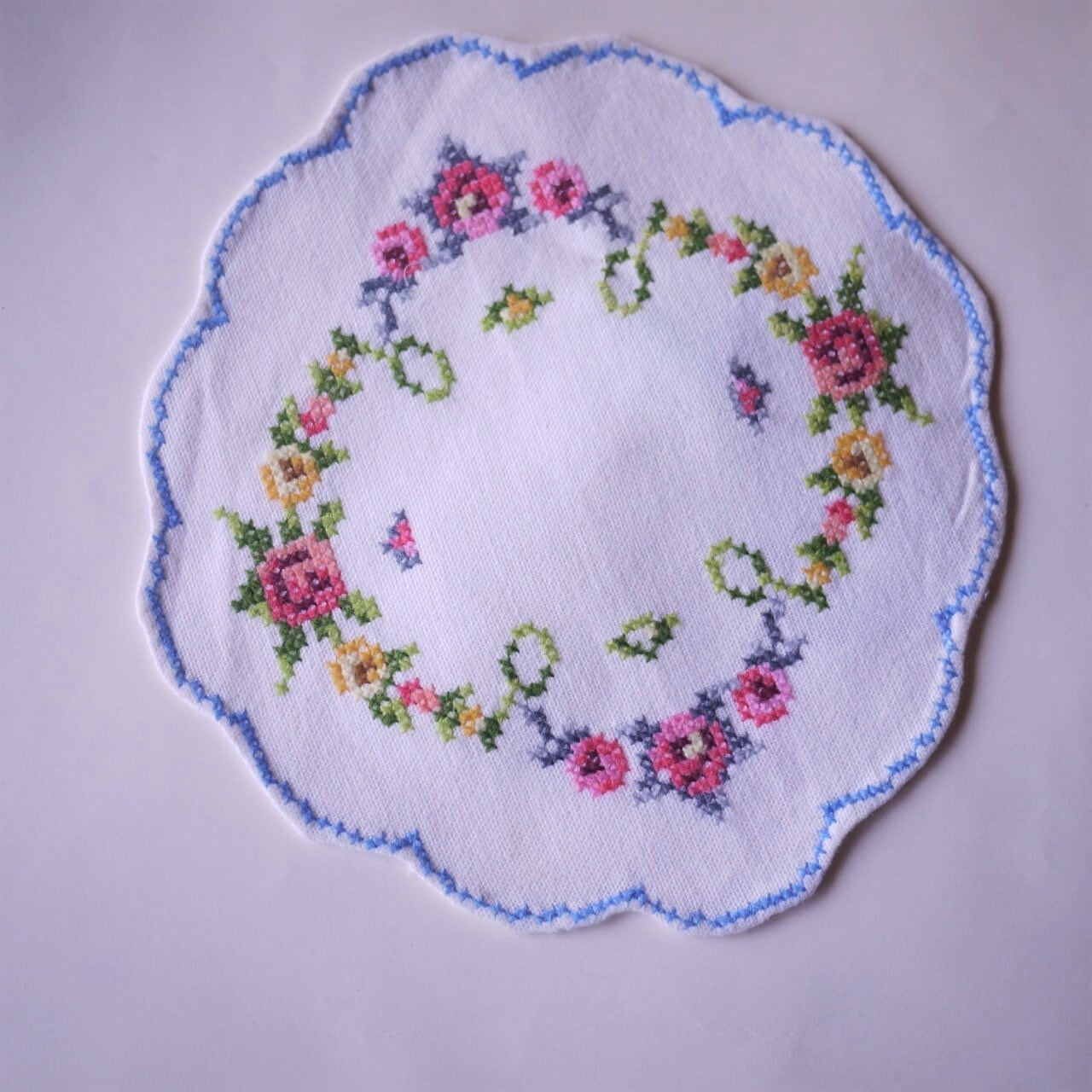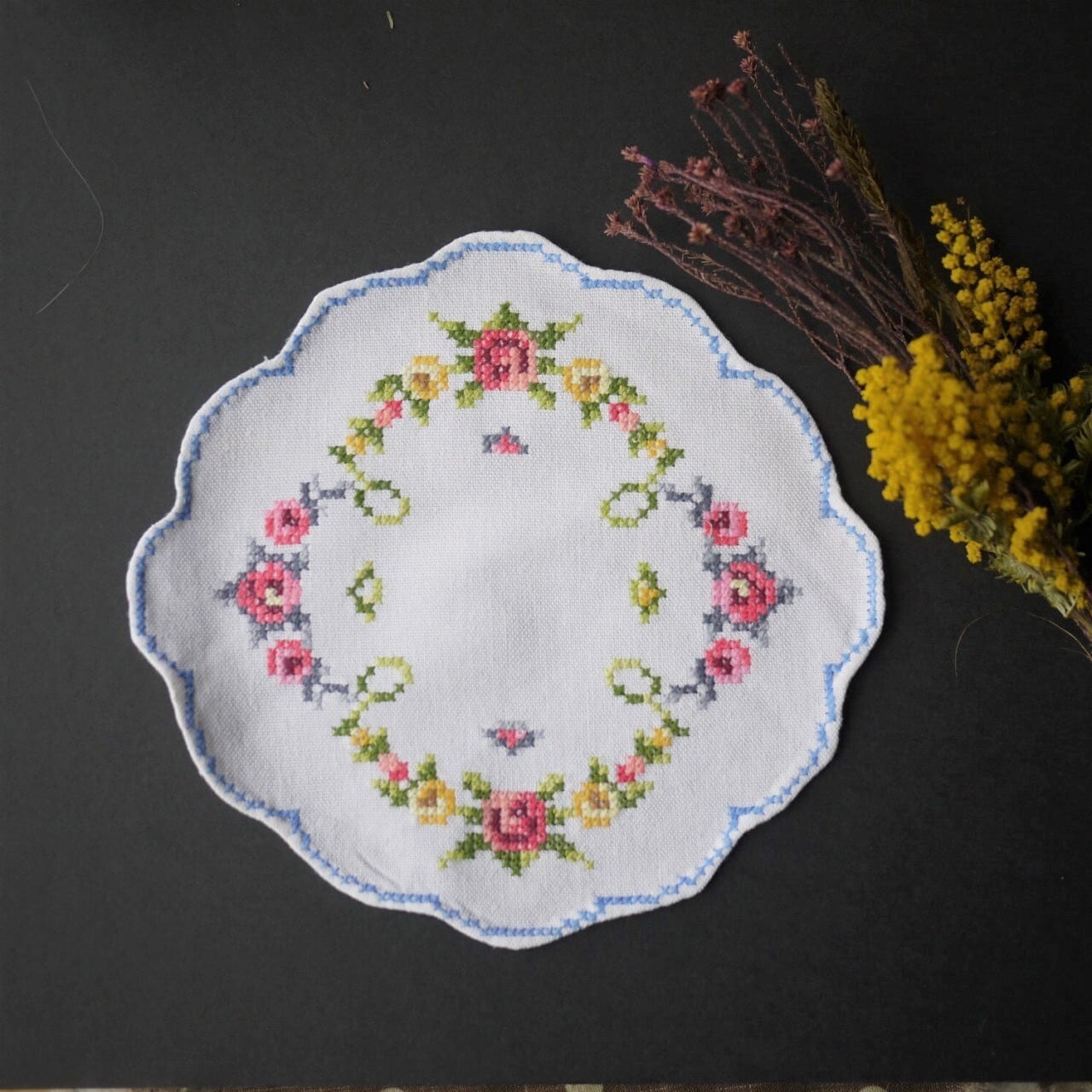 刺繍ドイリー マルチカラークロスステッチ薔薇