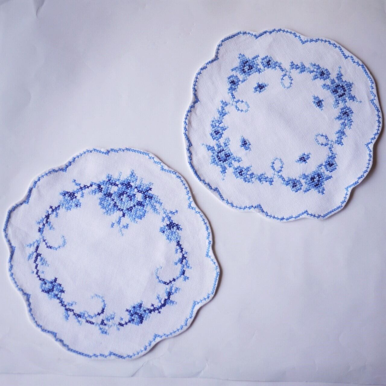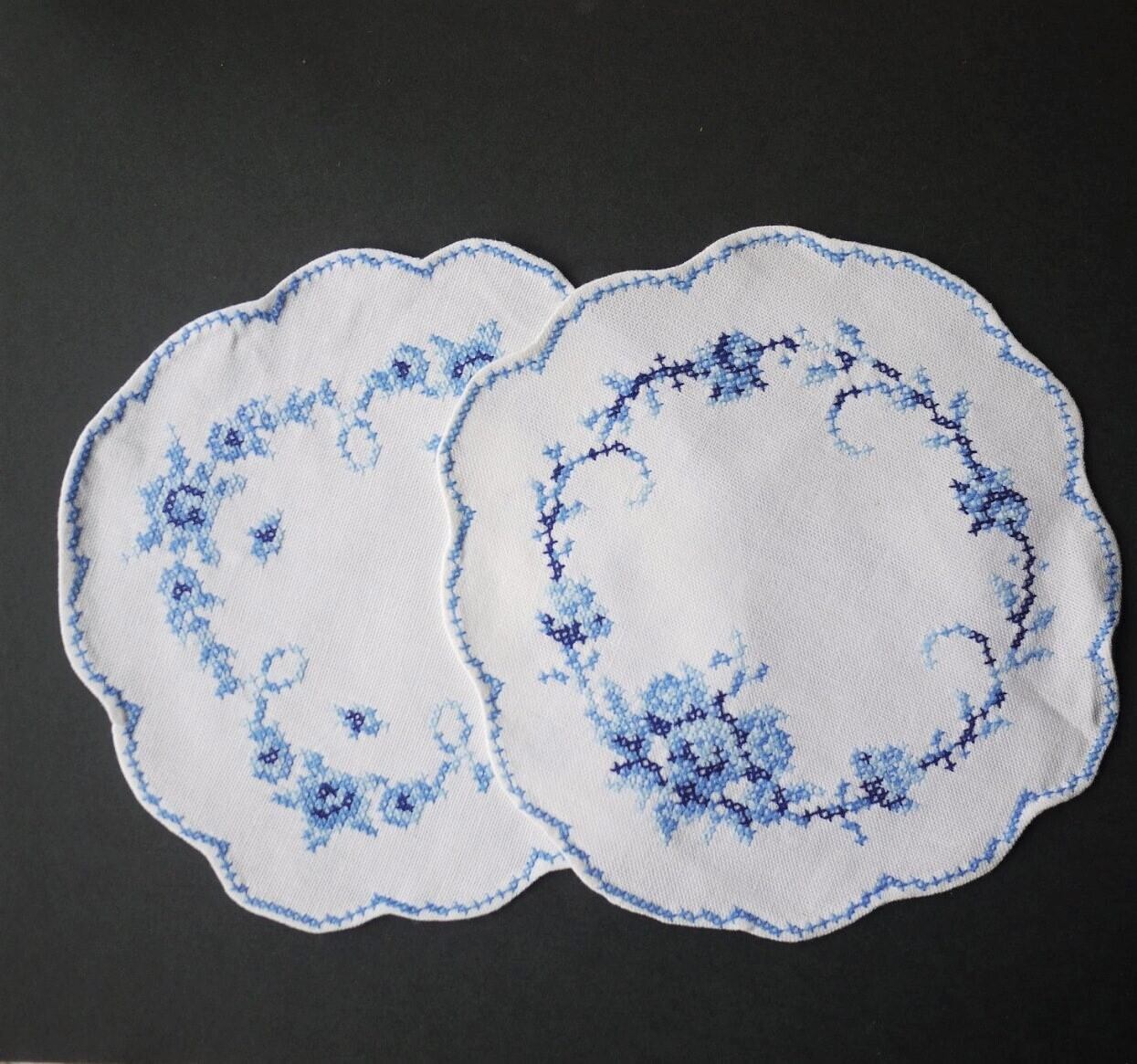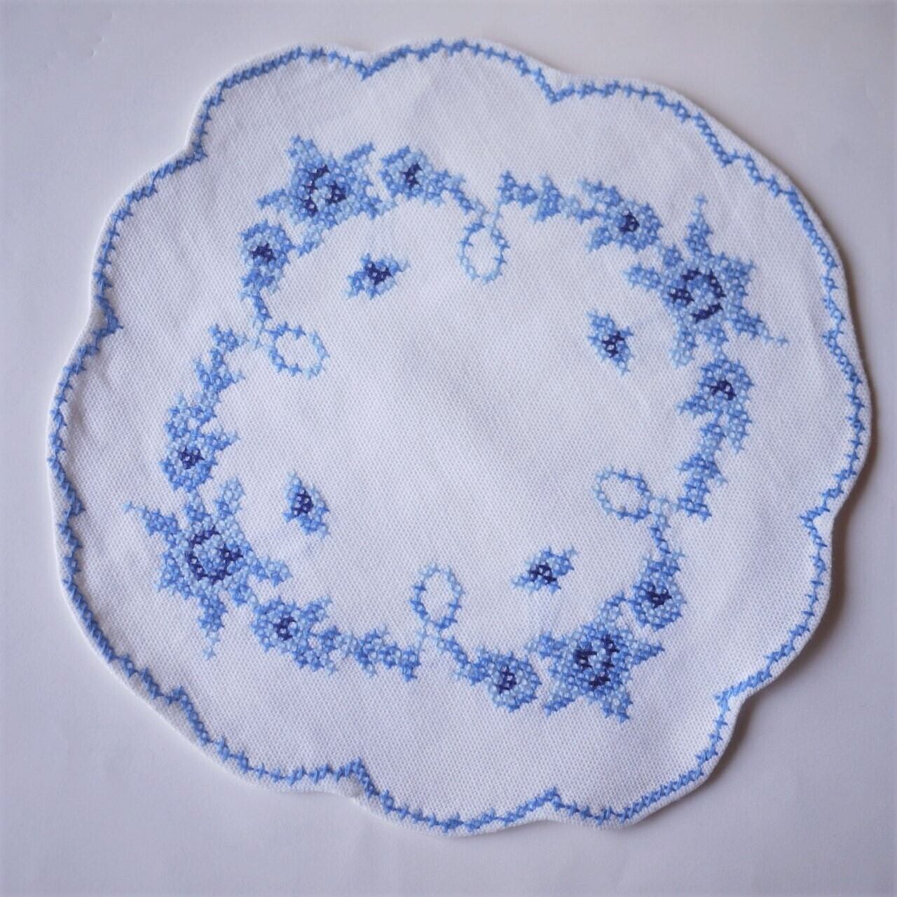 刺繍ドイリー 青のクロスステッチ2枚組
