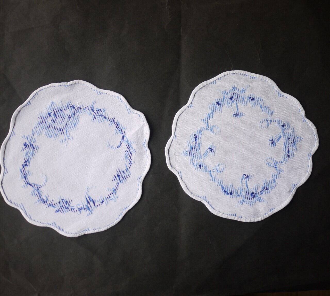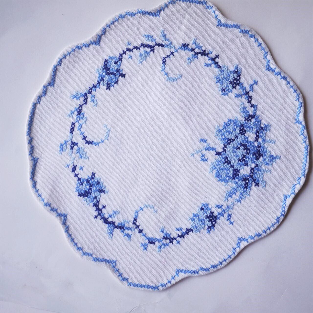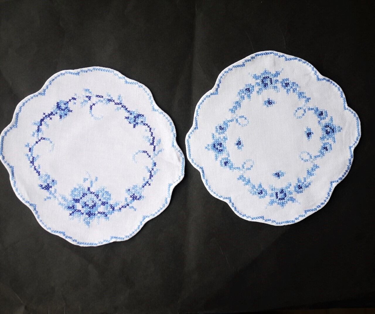 刺繍ドイリー 青のクロスステッチ2枚組