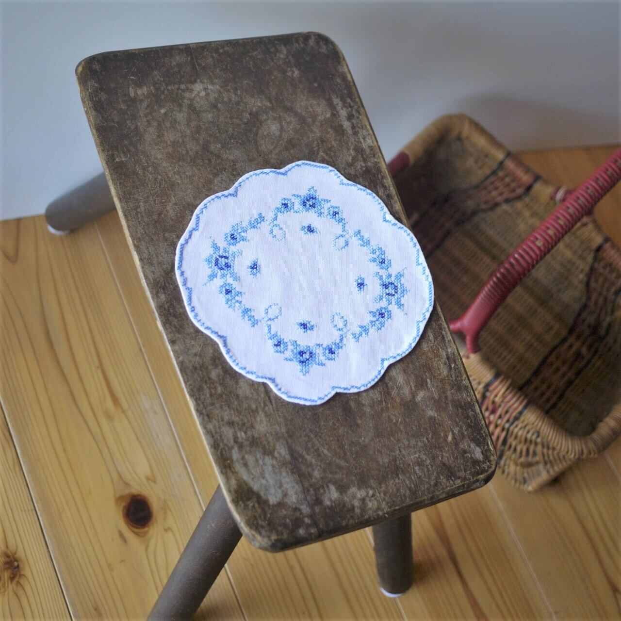 [刺繍ドイリー 青のクロスステッチ2枚組]