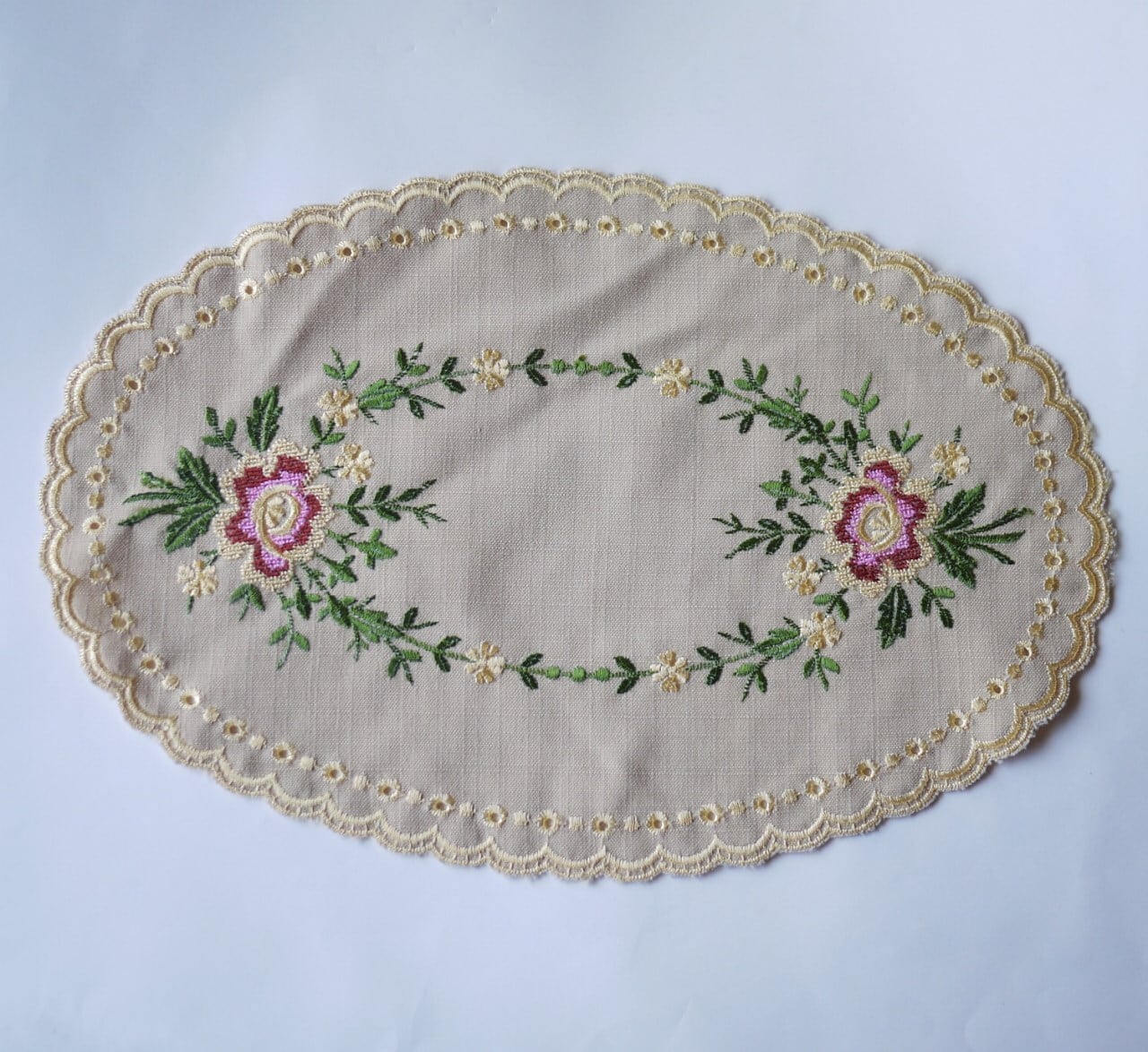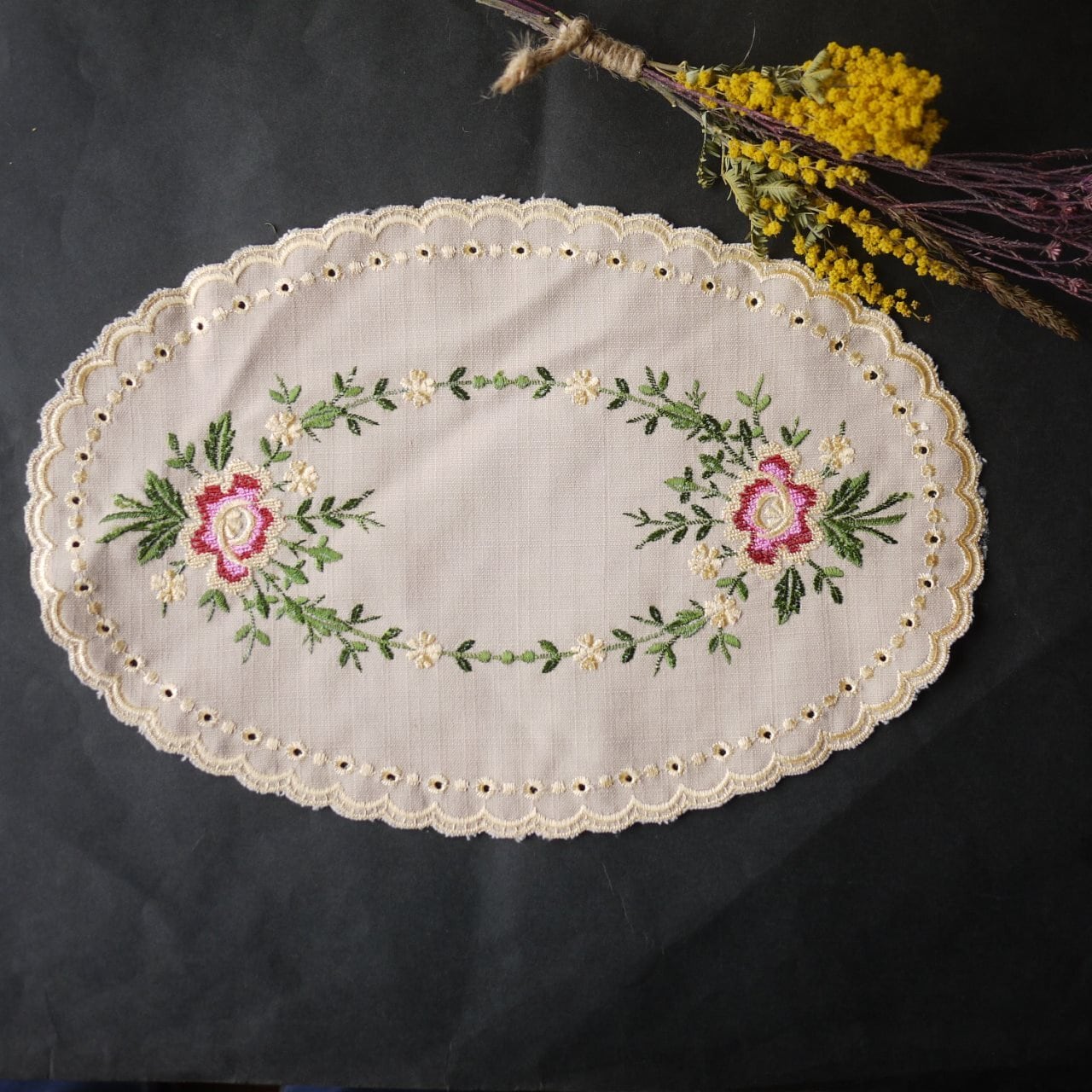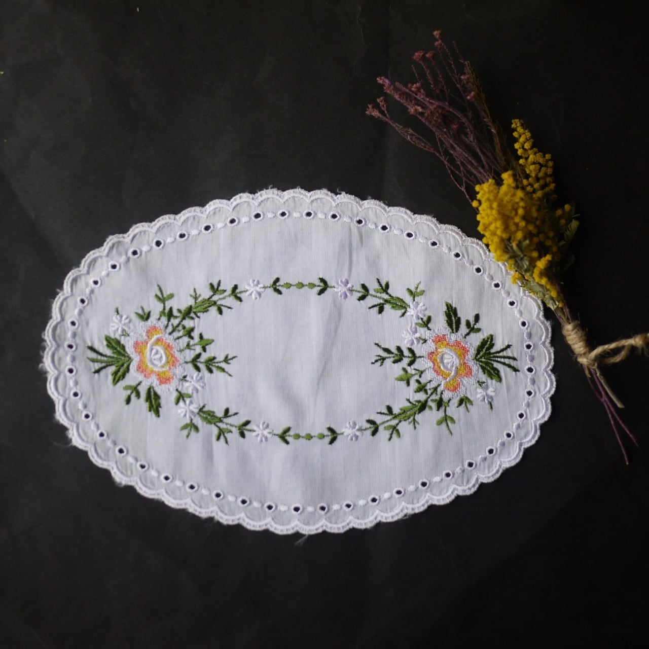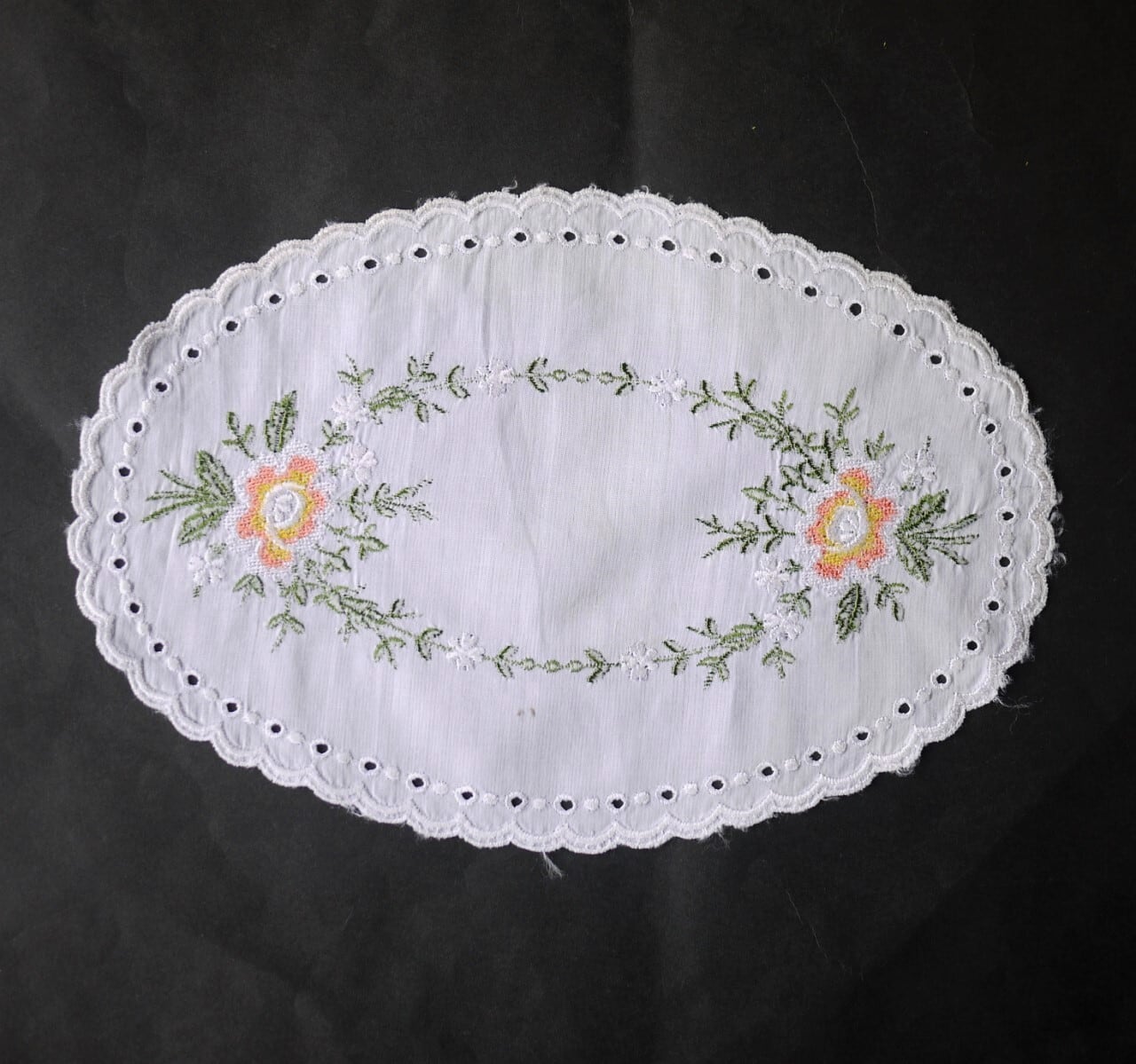 刺繍ドイリー バラ刺繍 楕円2枚組