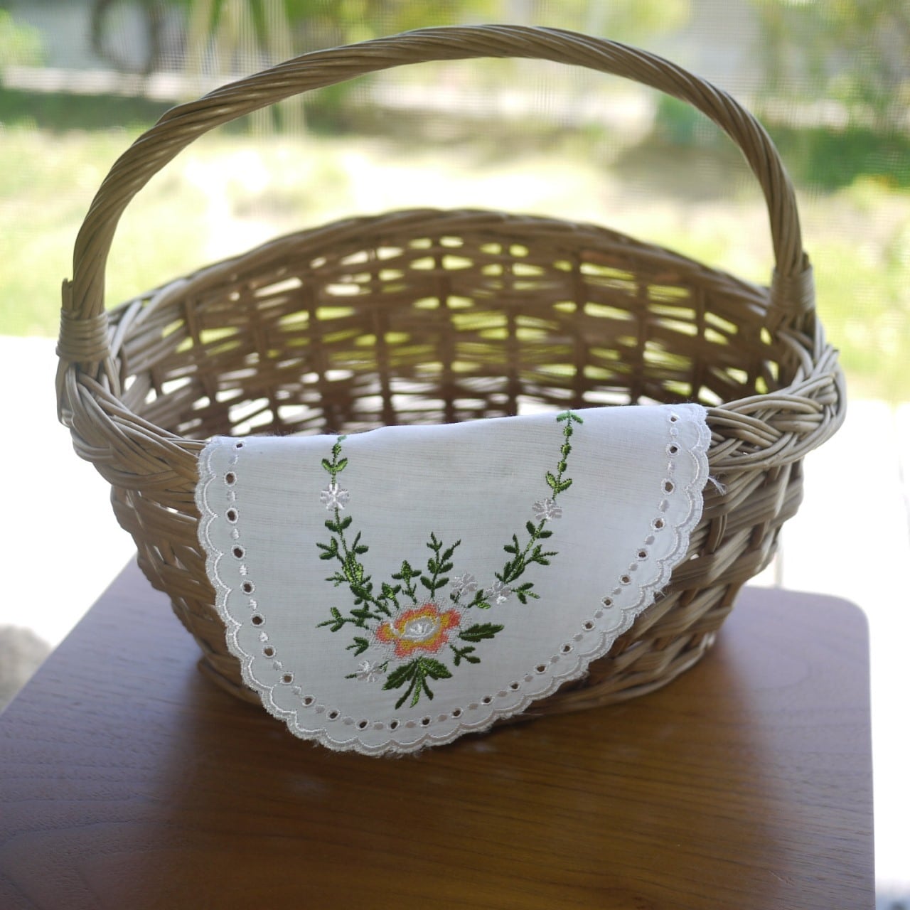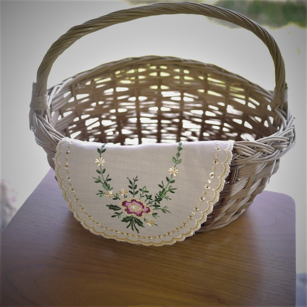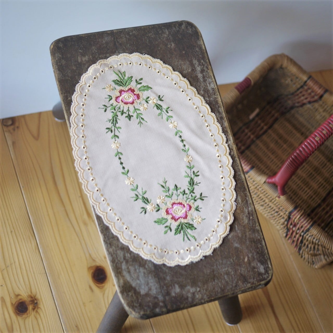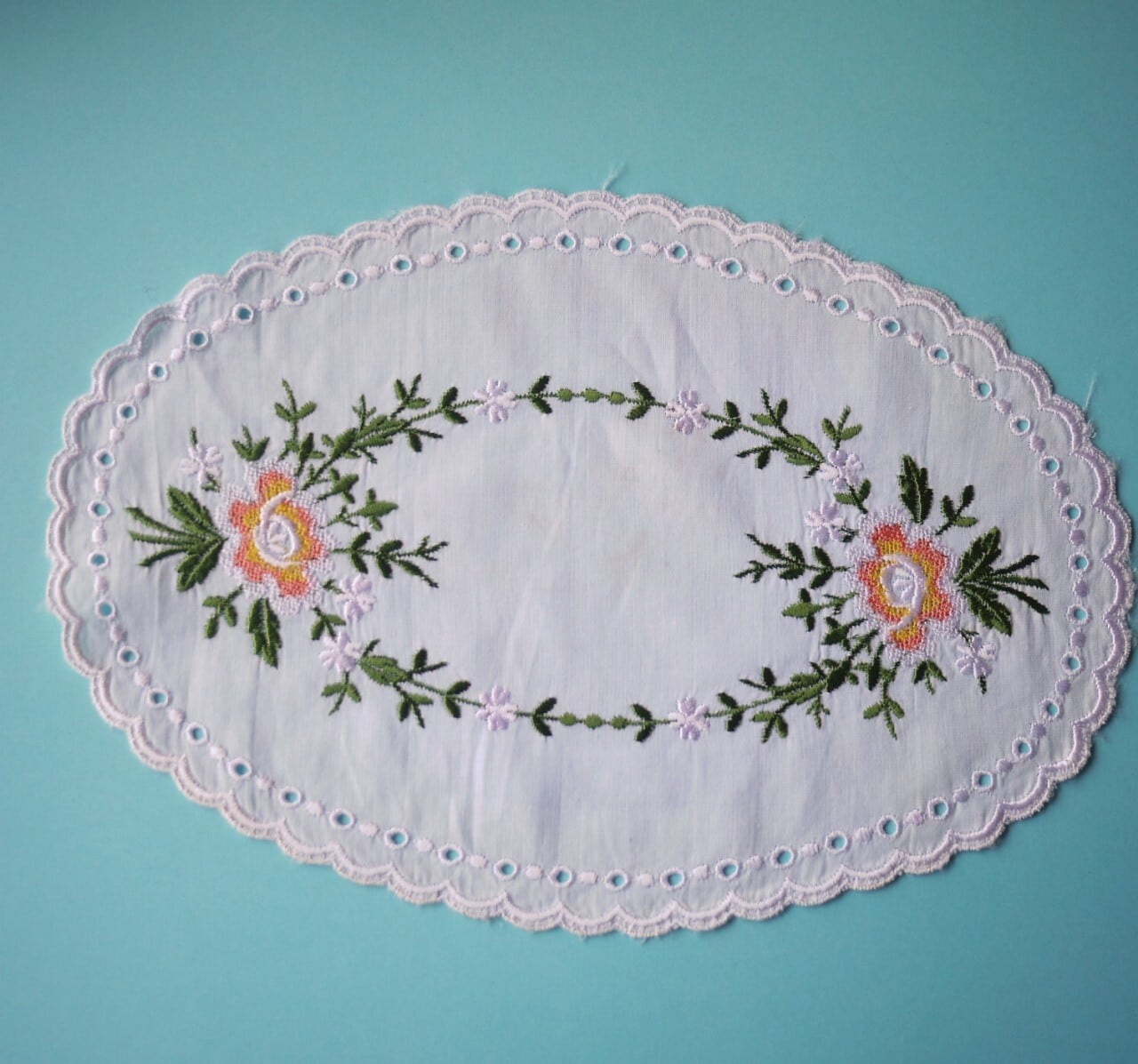 刺繍ドイリー バラ刺繍 楕円2枚組