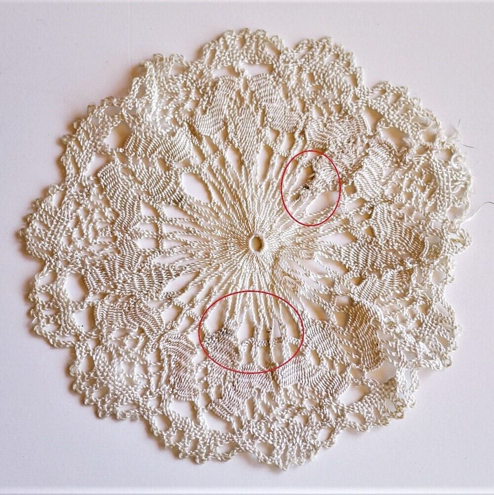 光沢のある細い糸で編んだドイリー花瓶敷き。