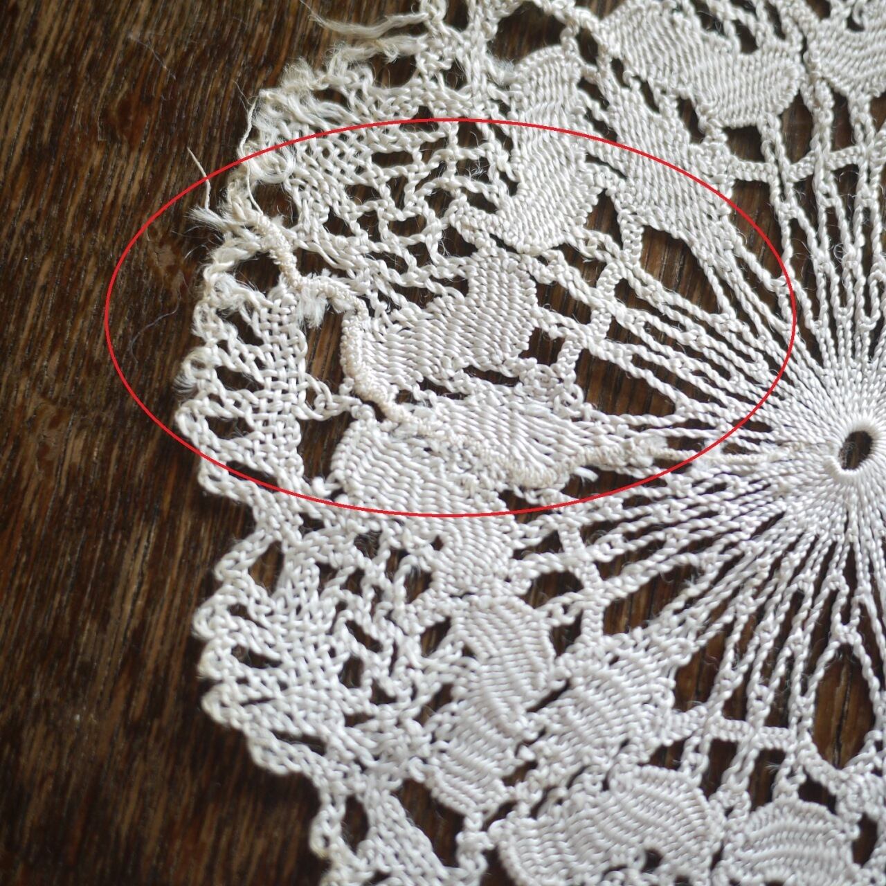 シミ。閉じ跡があります。写真赤丸