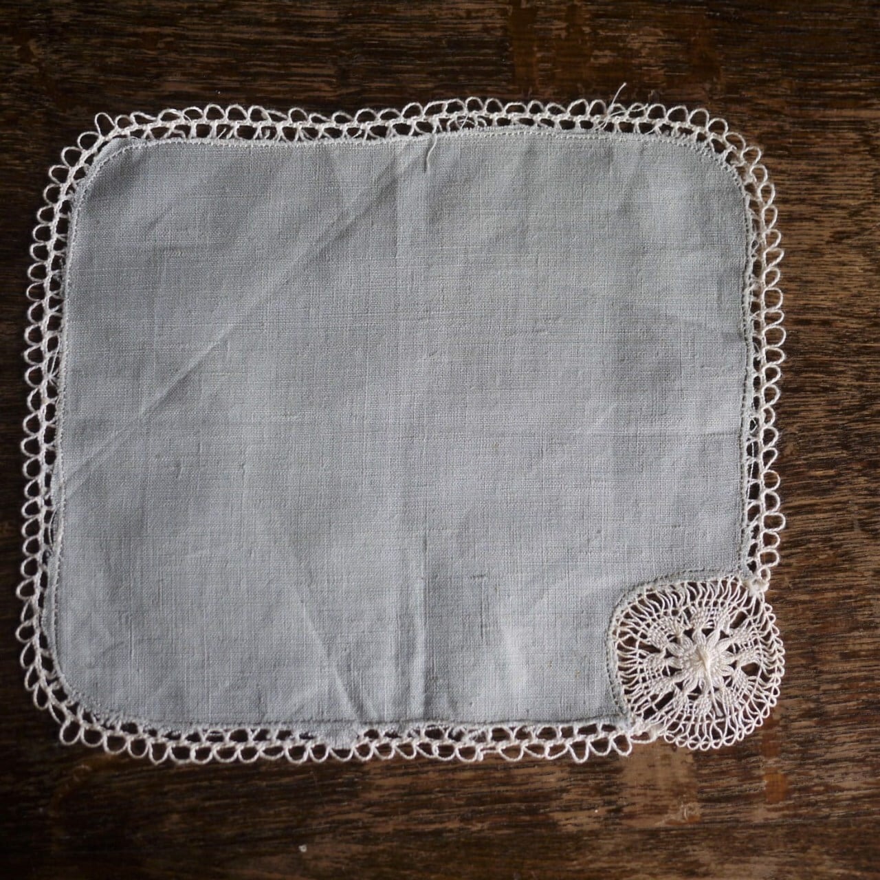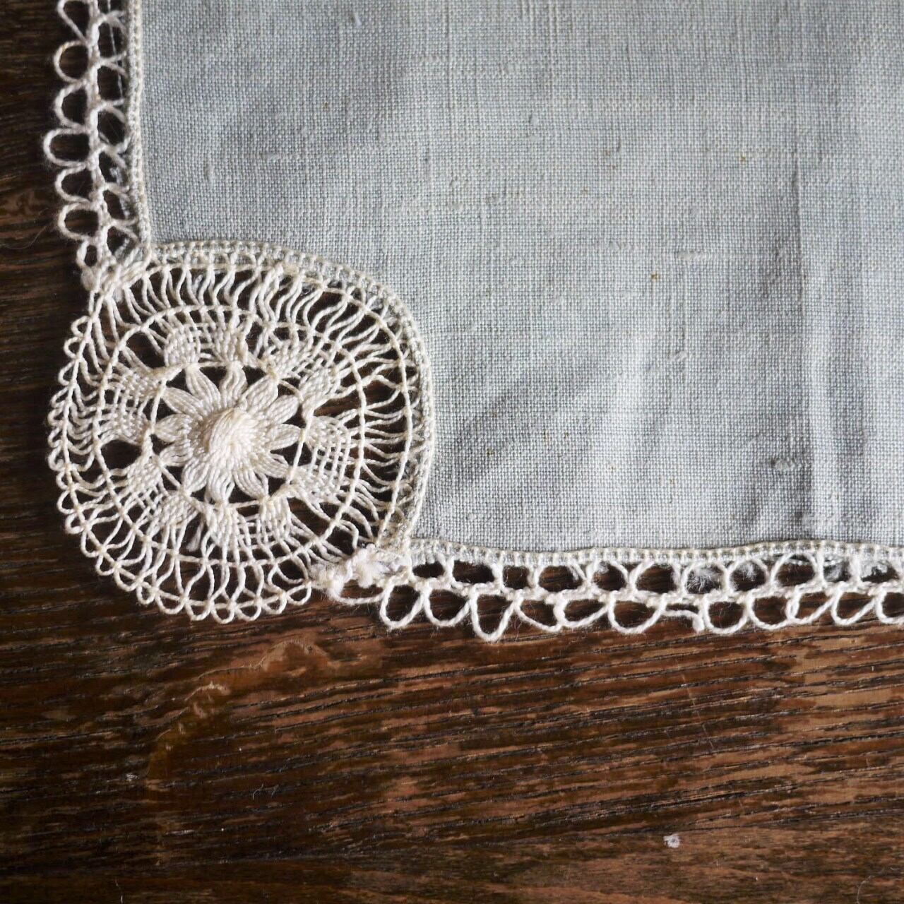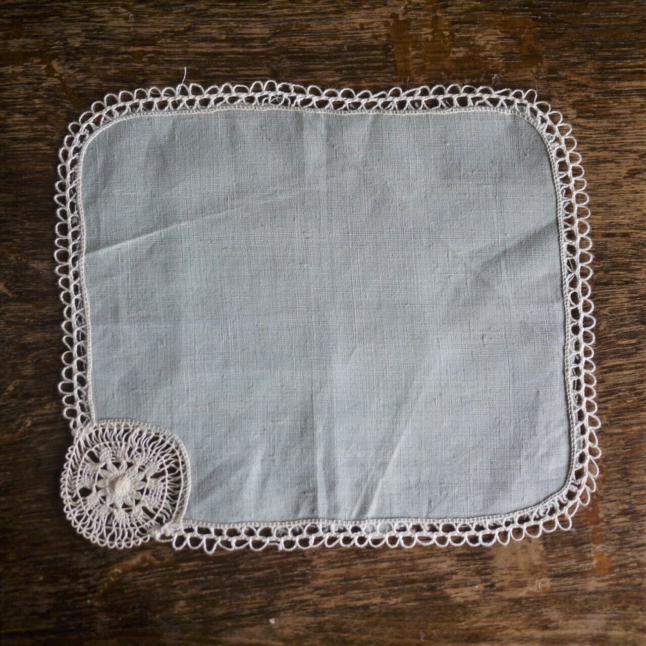 [レース縁取りモチーフ リネン灰緑色ハンカチ ドイツ]