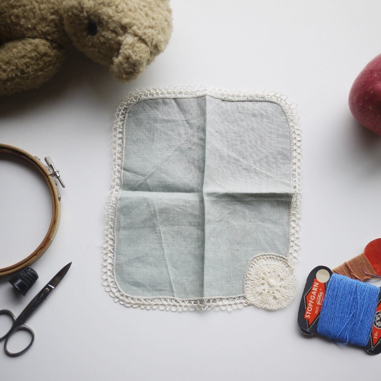 古いレース縁取りのハンカチ。