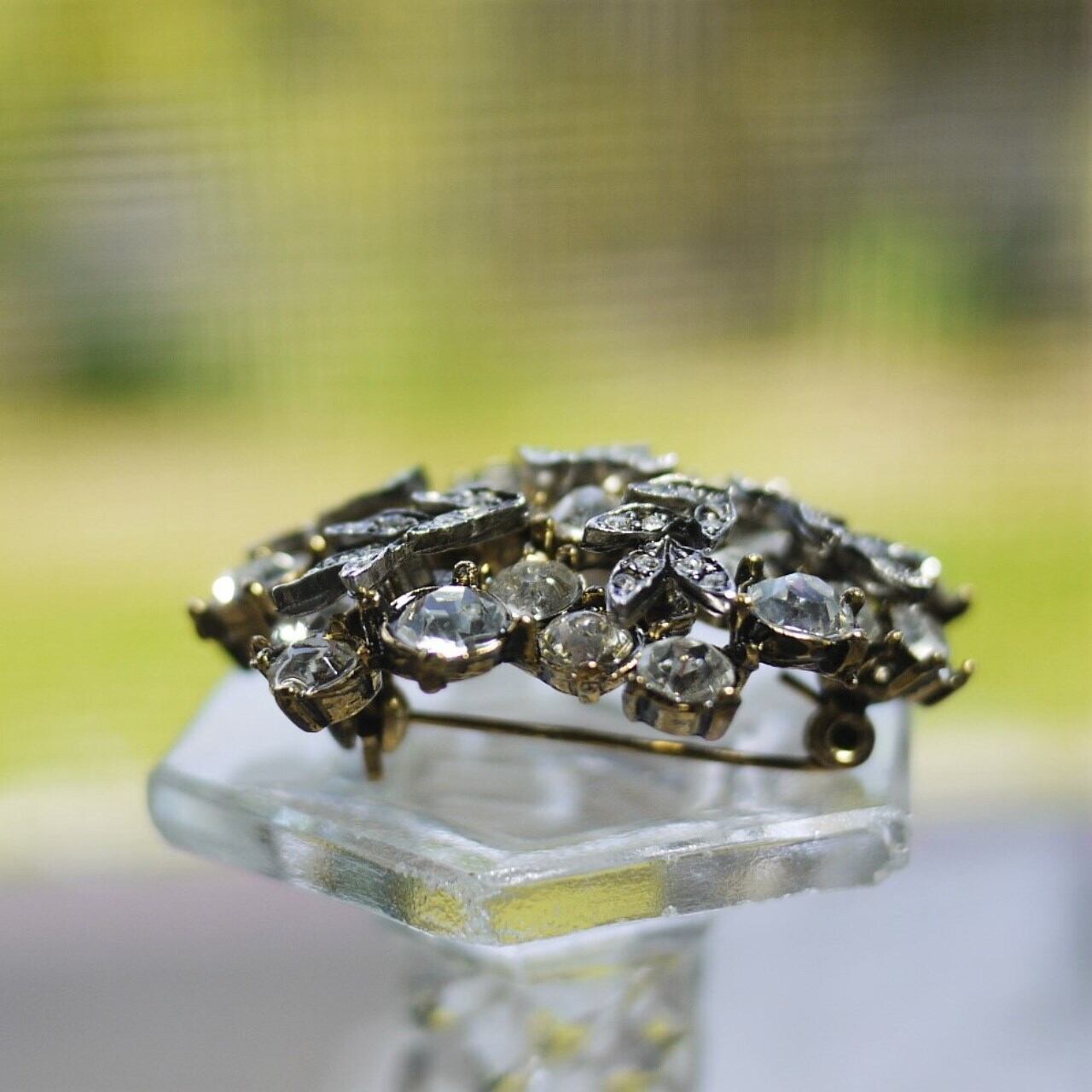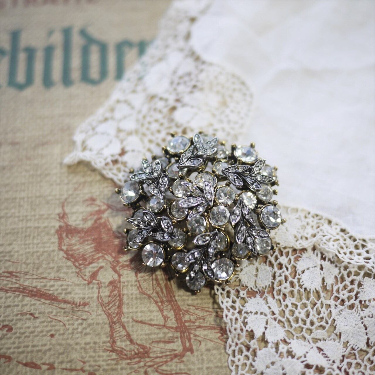 透明ガラスを集めたきらびやかなガラスブローチ。