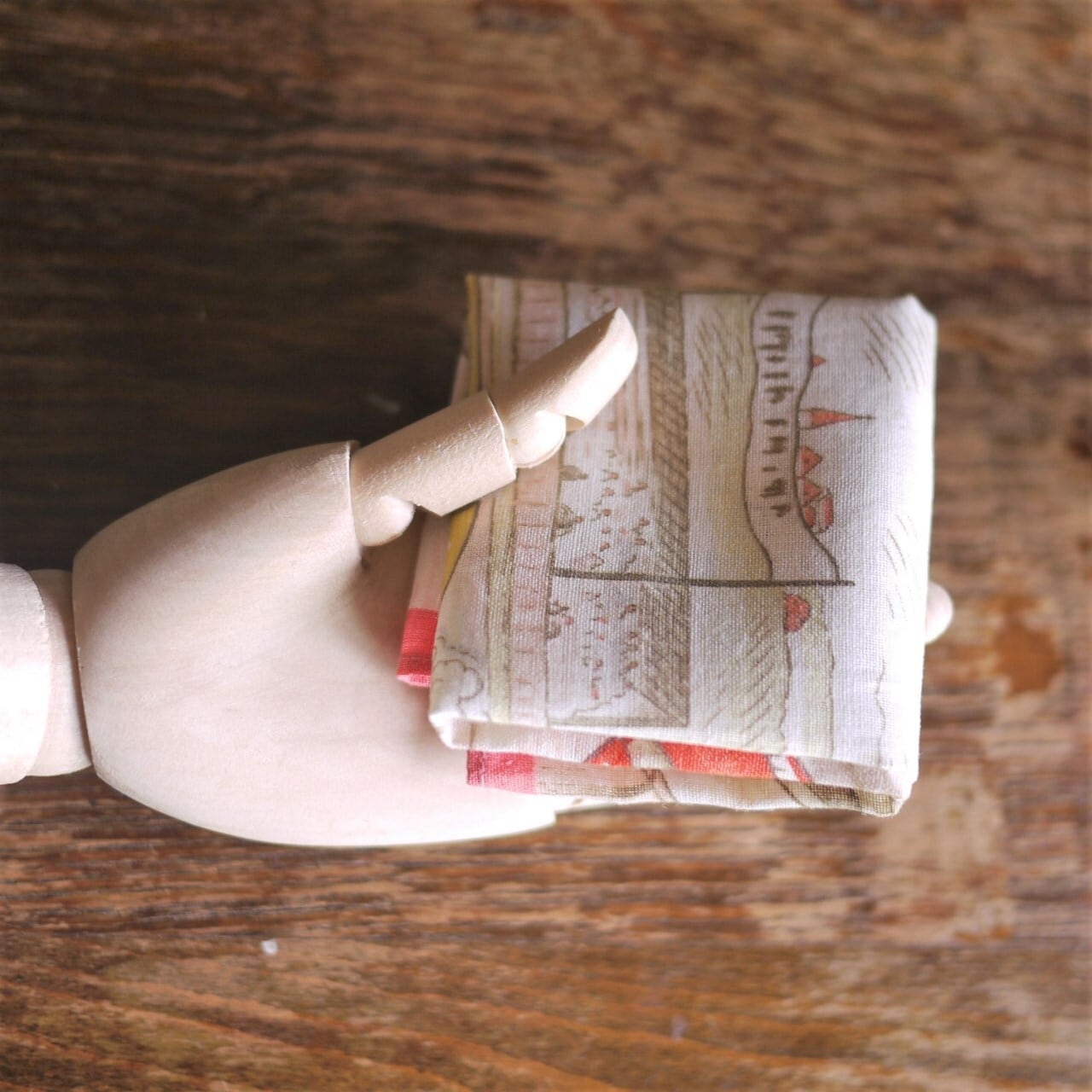 写真のウッドトルソーはこどもの手(小学生低学年)の大きさです。