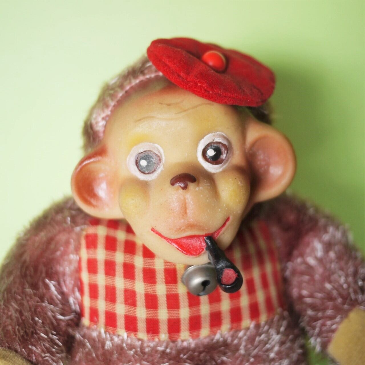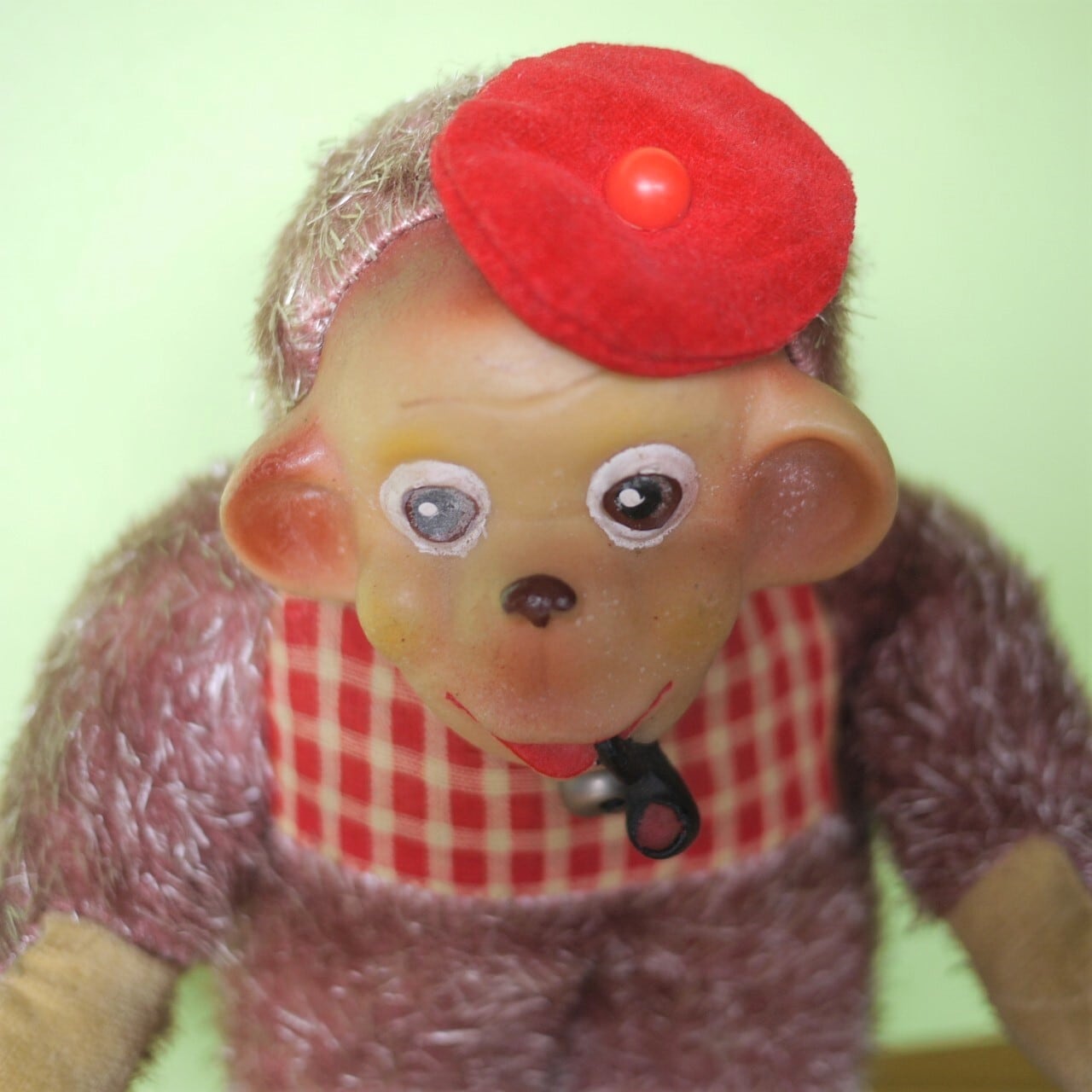 ラバーフェイスドール 赤いベレーのおさるさん 鳴き笛