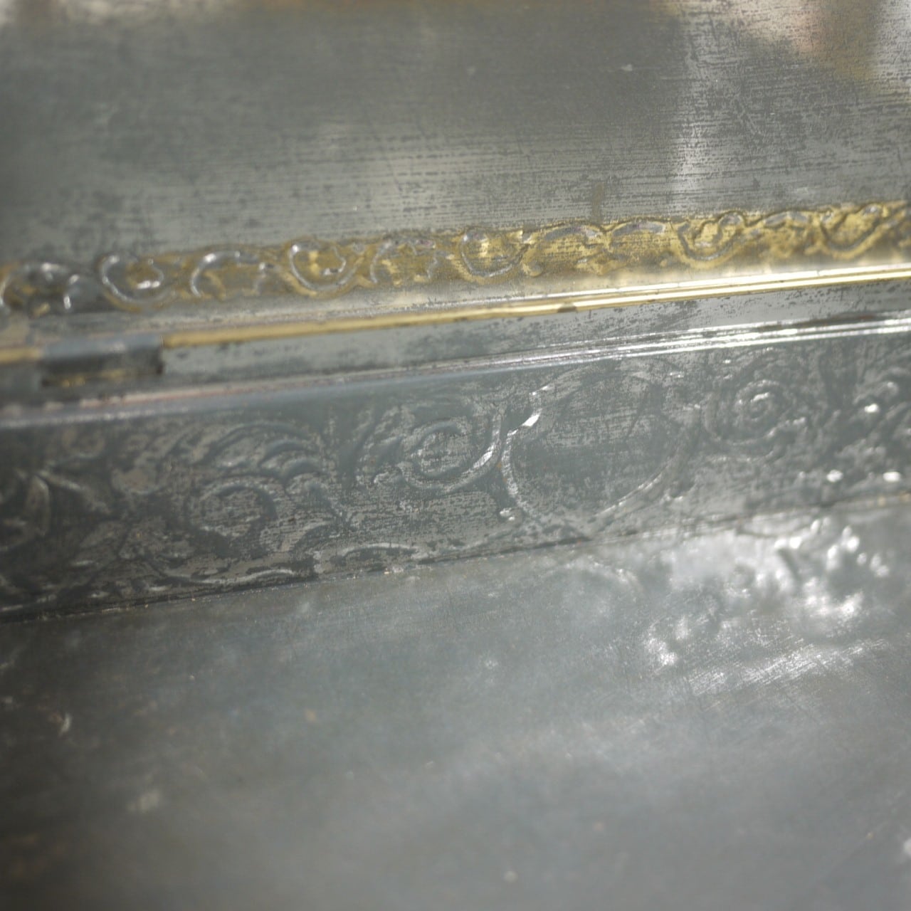 側面は蓋周囲はエンボス加工で浮彫になっています。