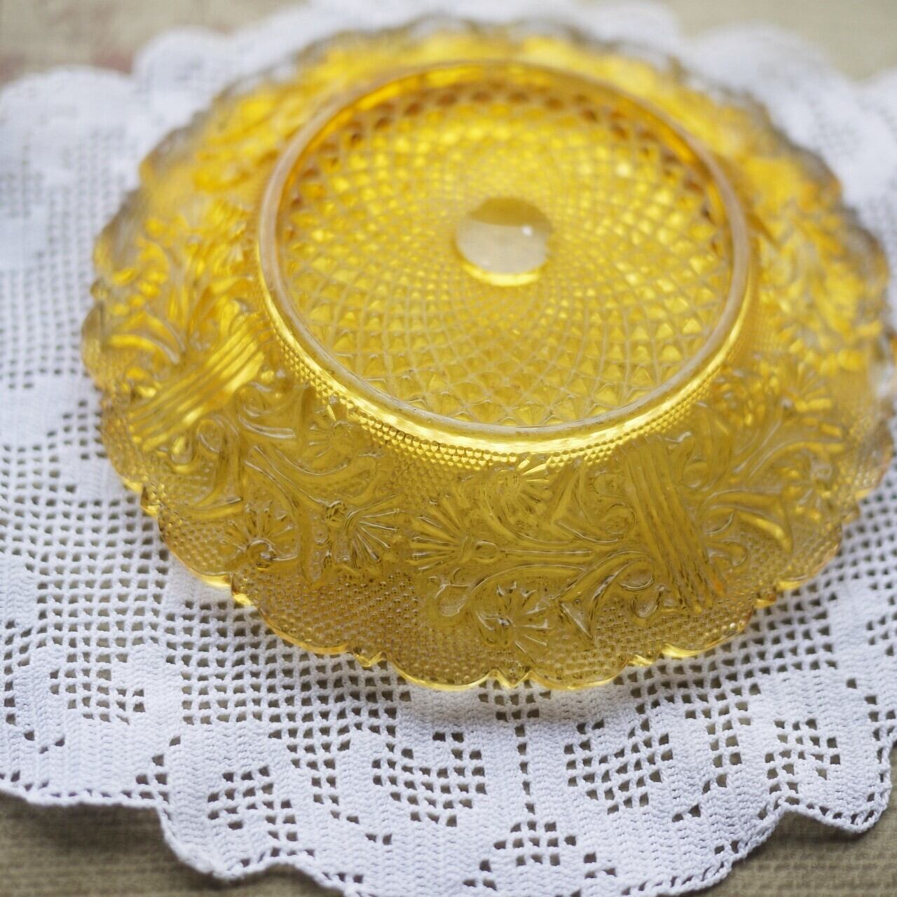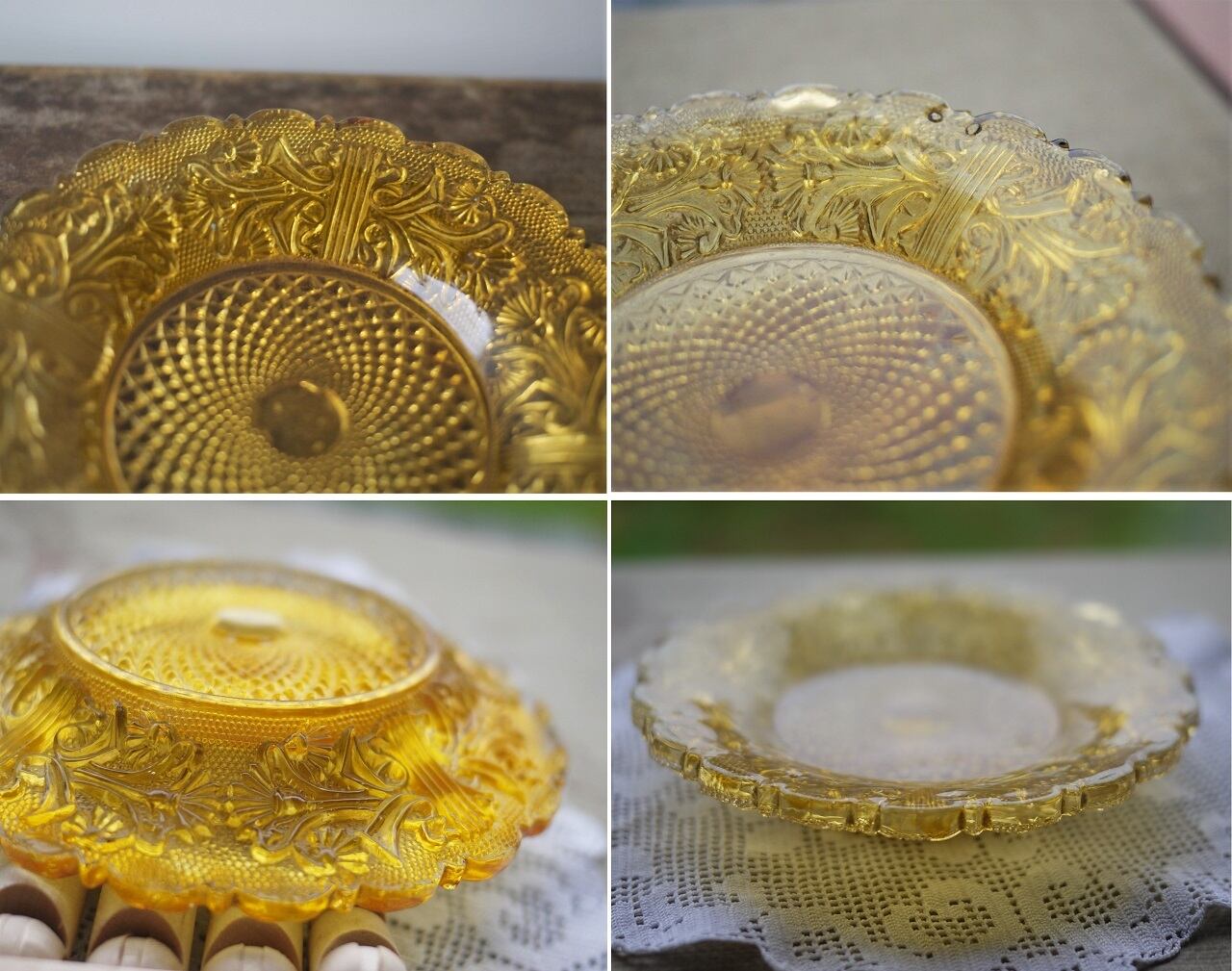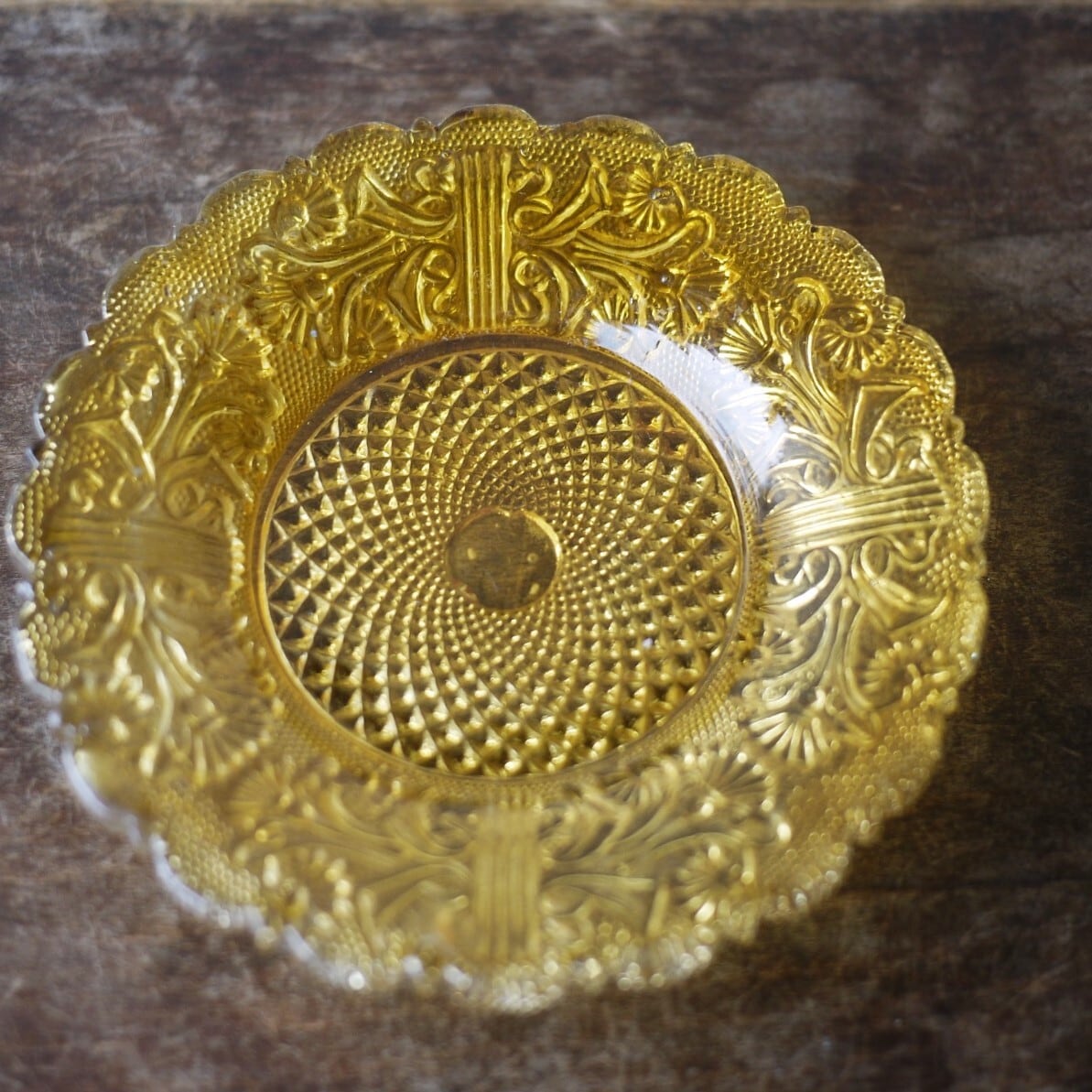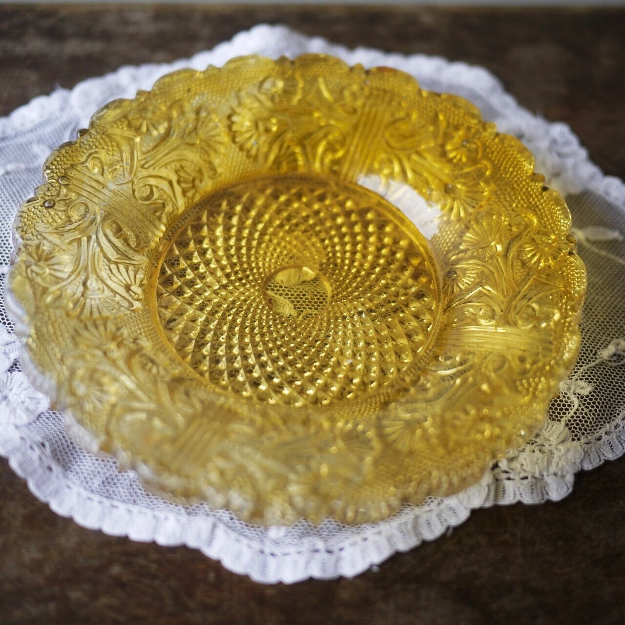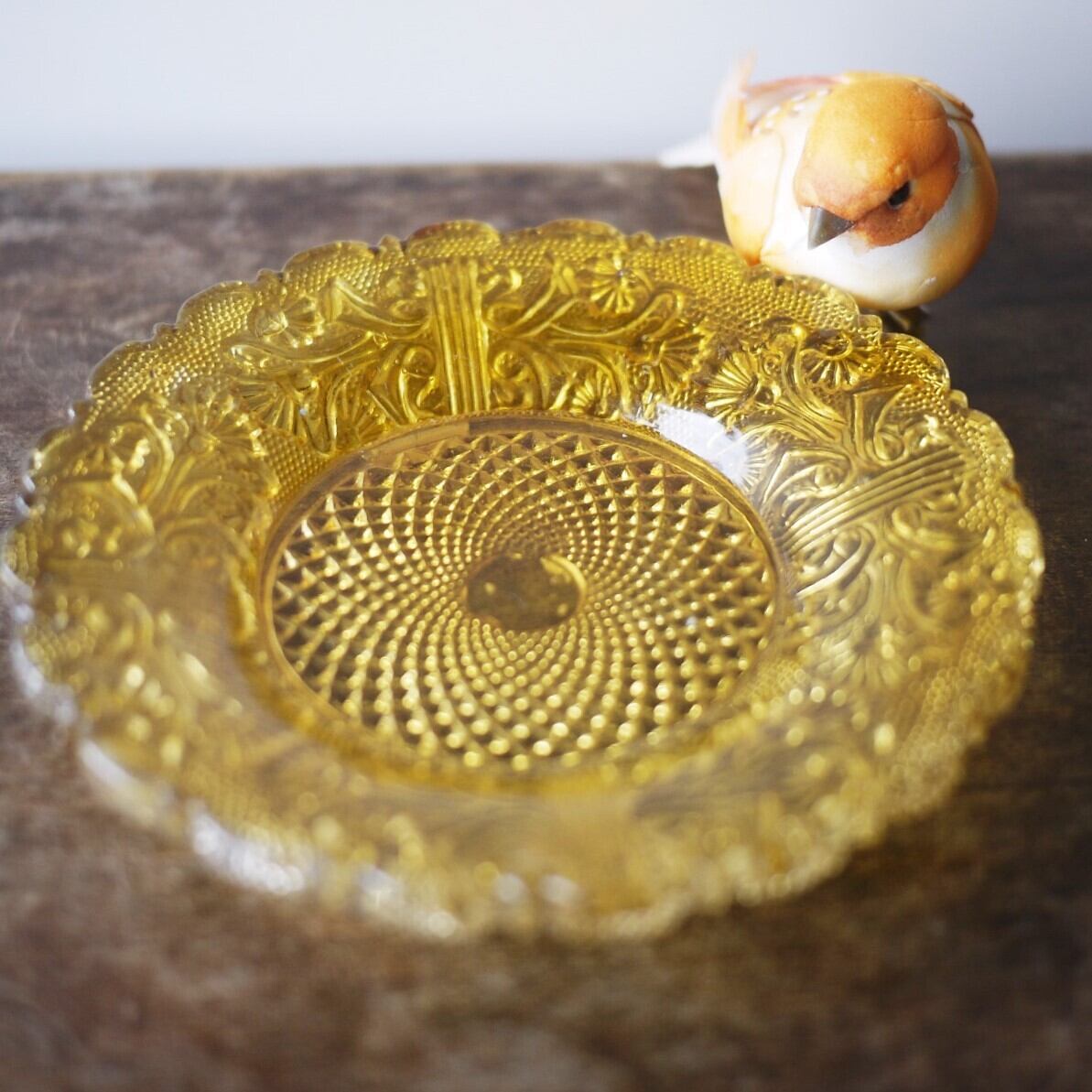 プレスガラス小皿 幾何学草花レース文様 ミッドセンチュリー 難あり