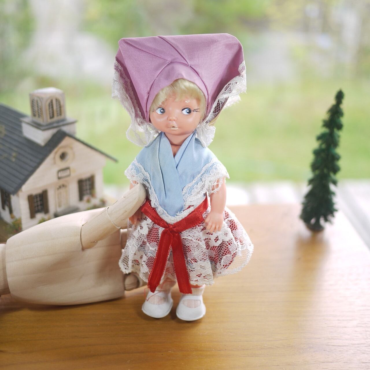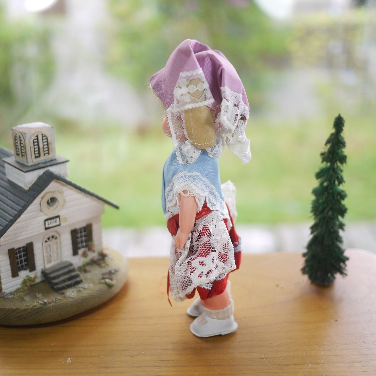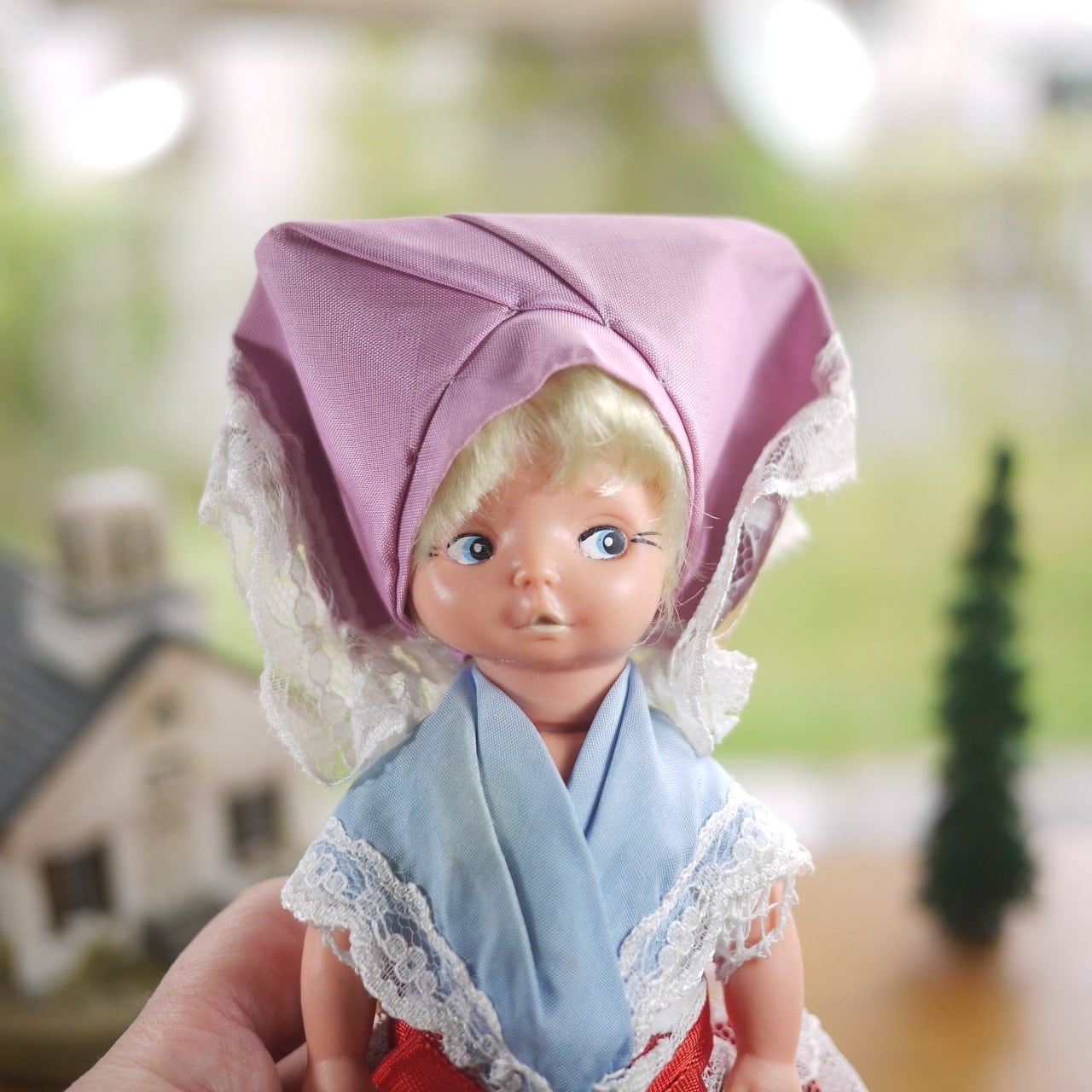 民族衣装のお人形 薄紫のヘッドドレス ドイツ