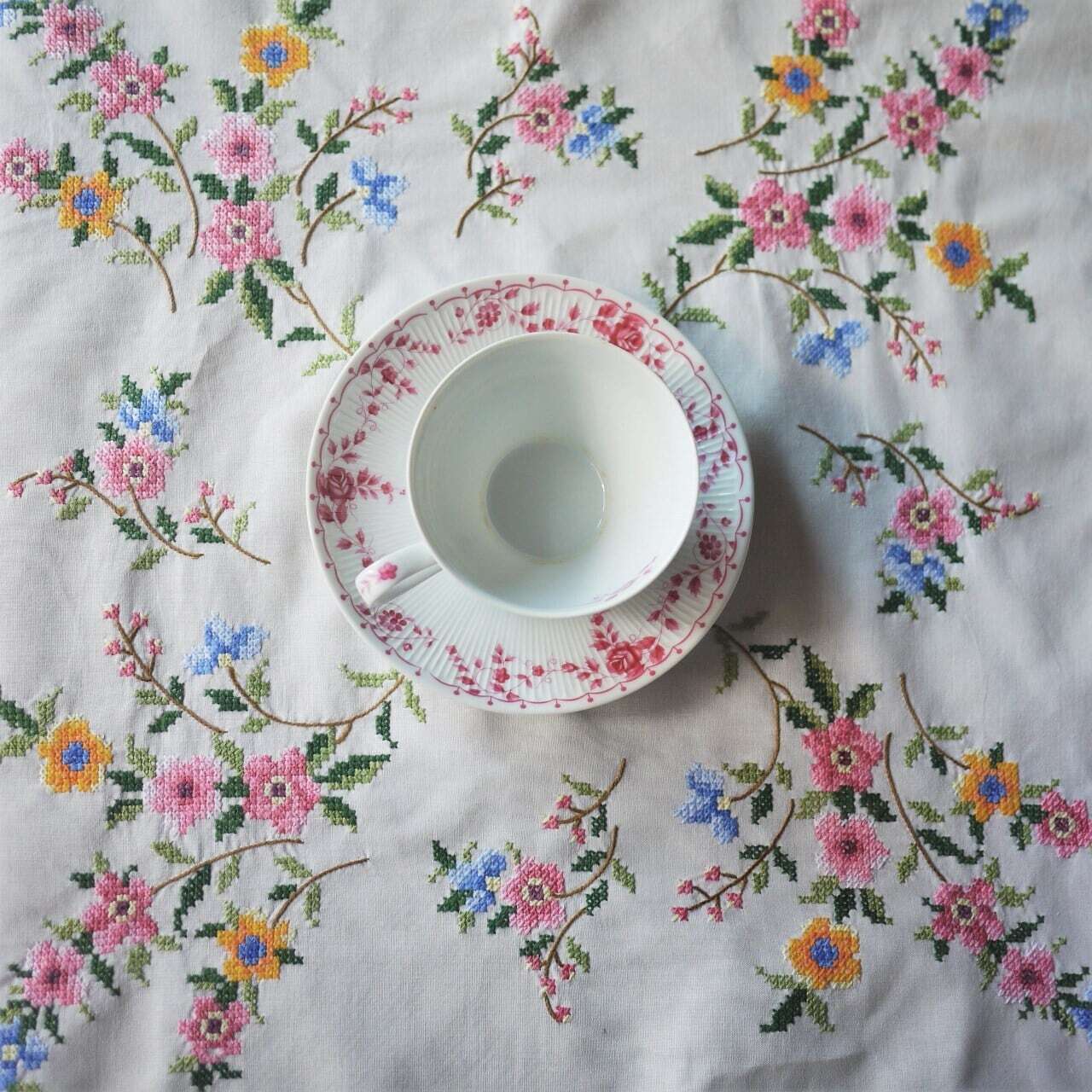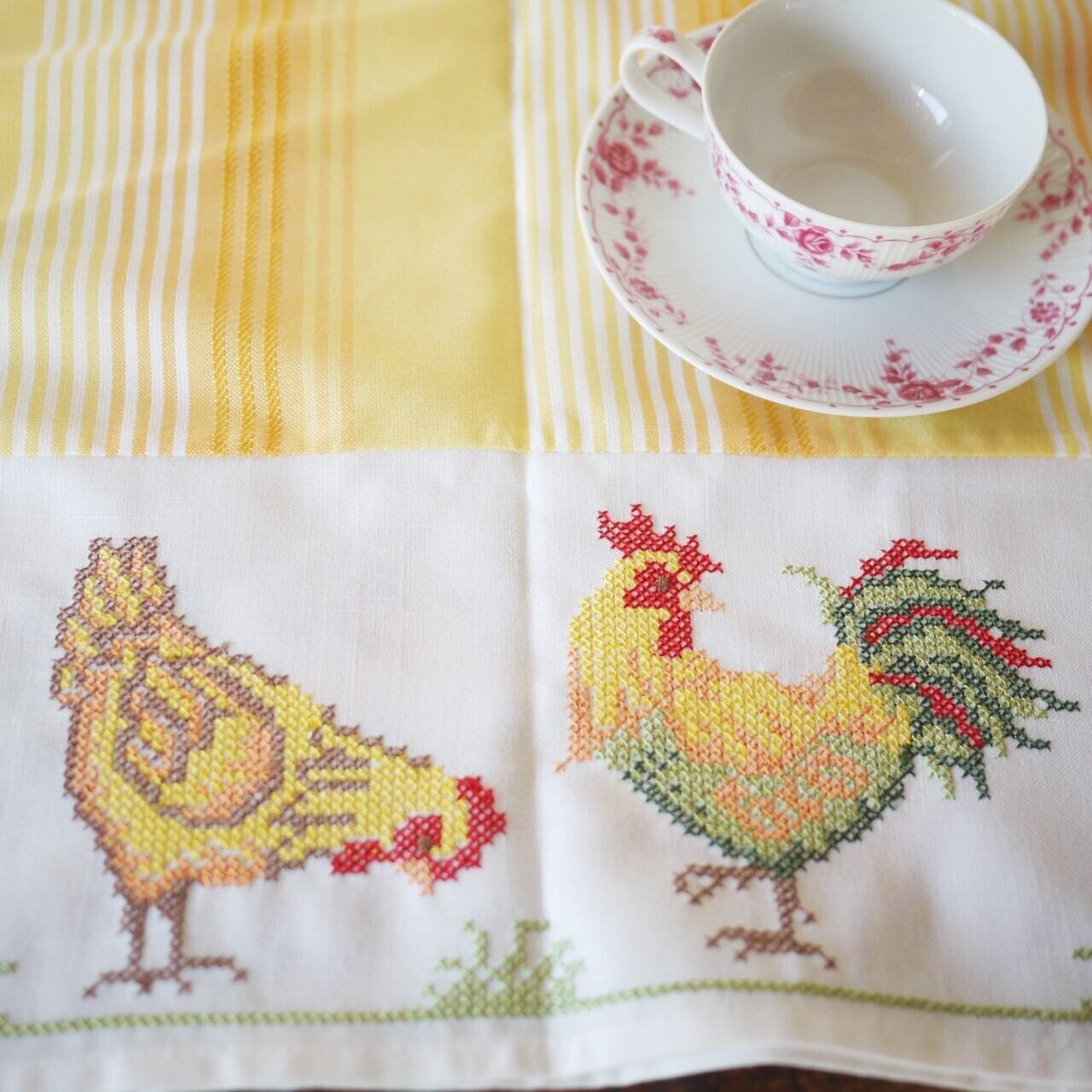 クロスステッチ にわとりテーブルクロス ドイツヴィンテージ
