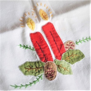 ハーフリネンのテーブルクロス クリスマスキャンドル