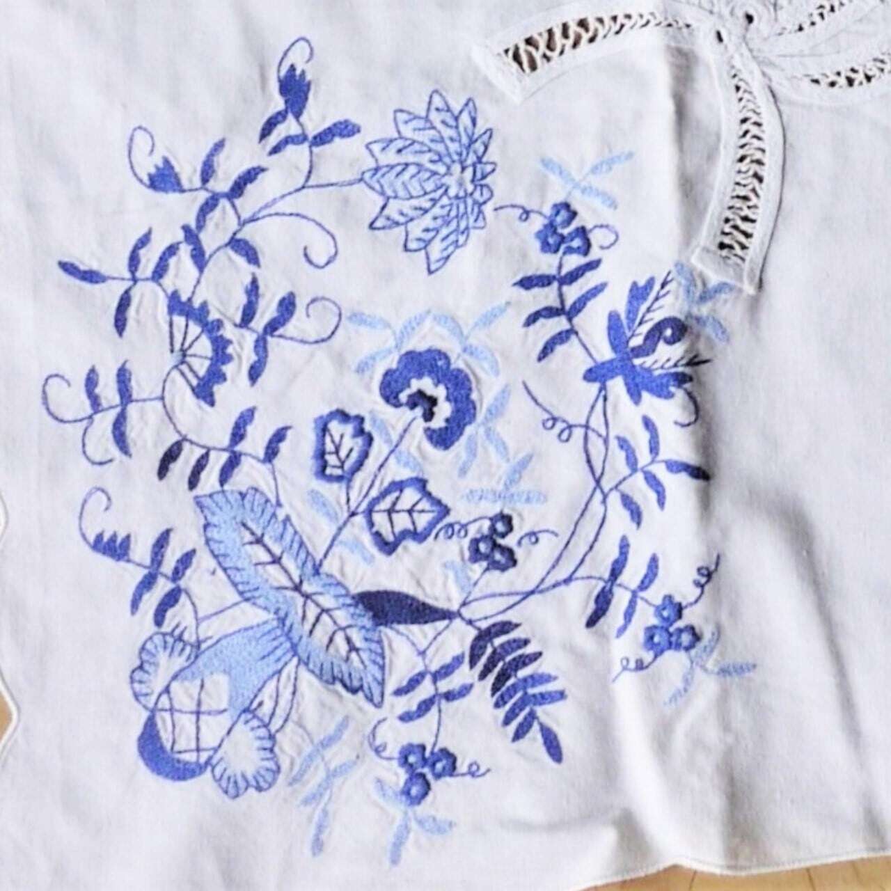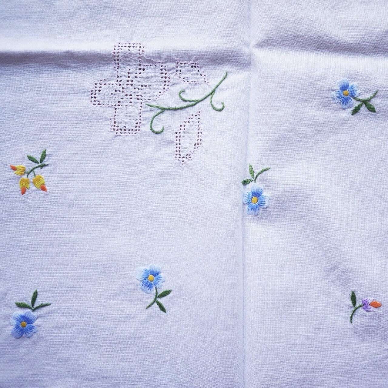 ブルーワーク刺繍 カットワークテーブルクロス ドイツ