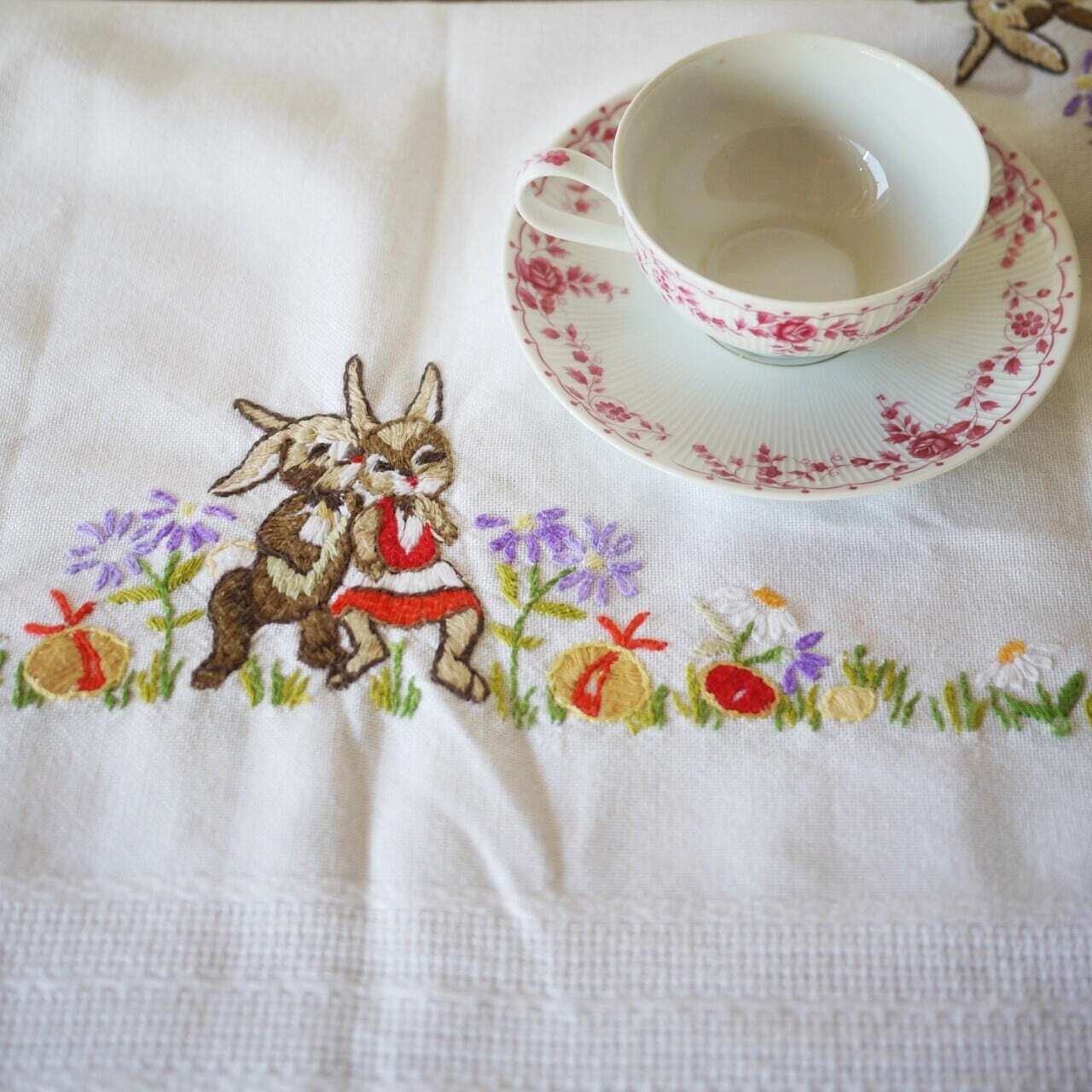 ウサギ刺繍のテーブルクロス ドイツヴィンテージ