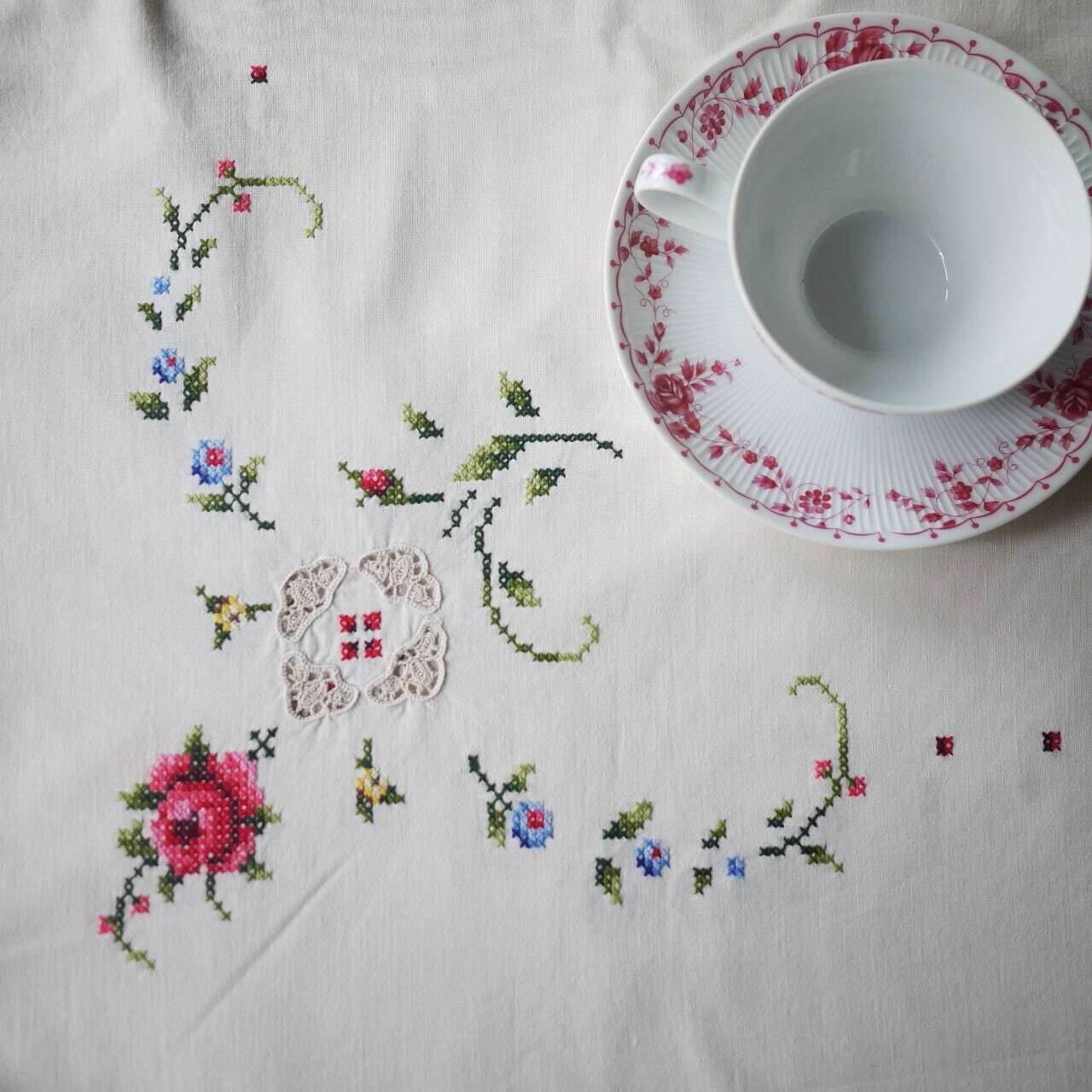 [薔薇のクロス 大判 カットワーク ドイツ]