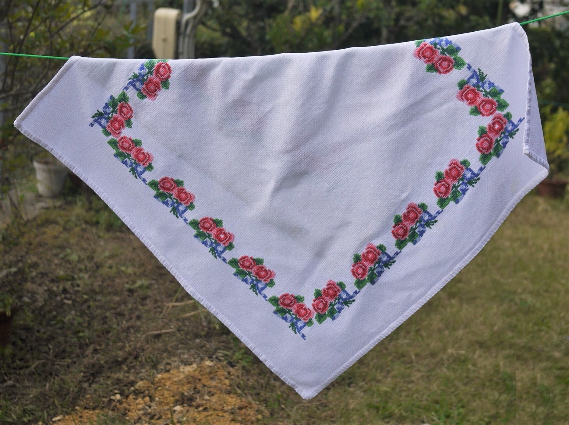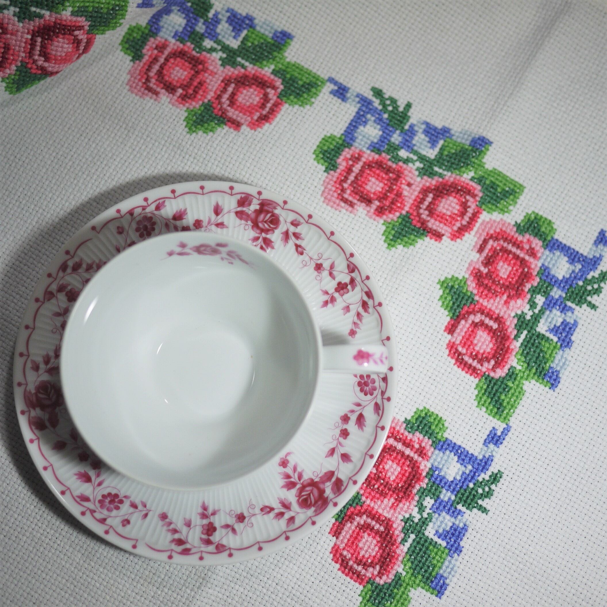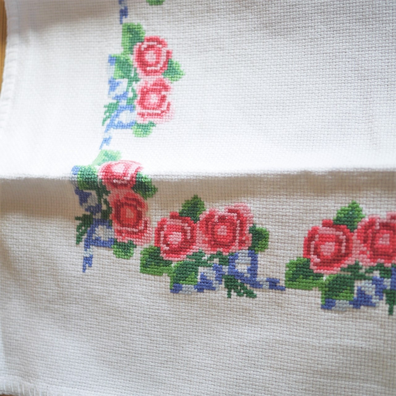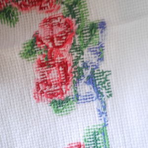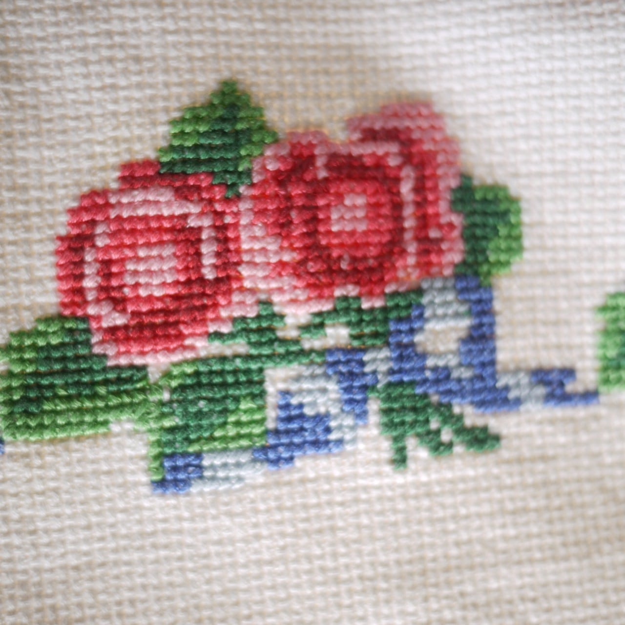 きちっ密なとクロスステッチされた薔薇刺繍。