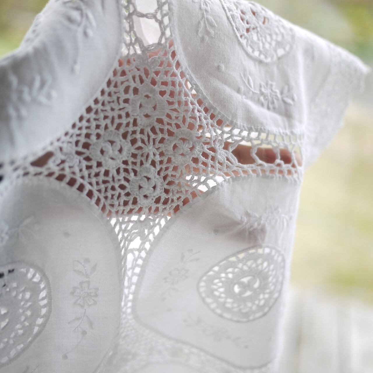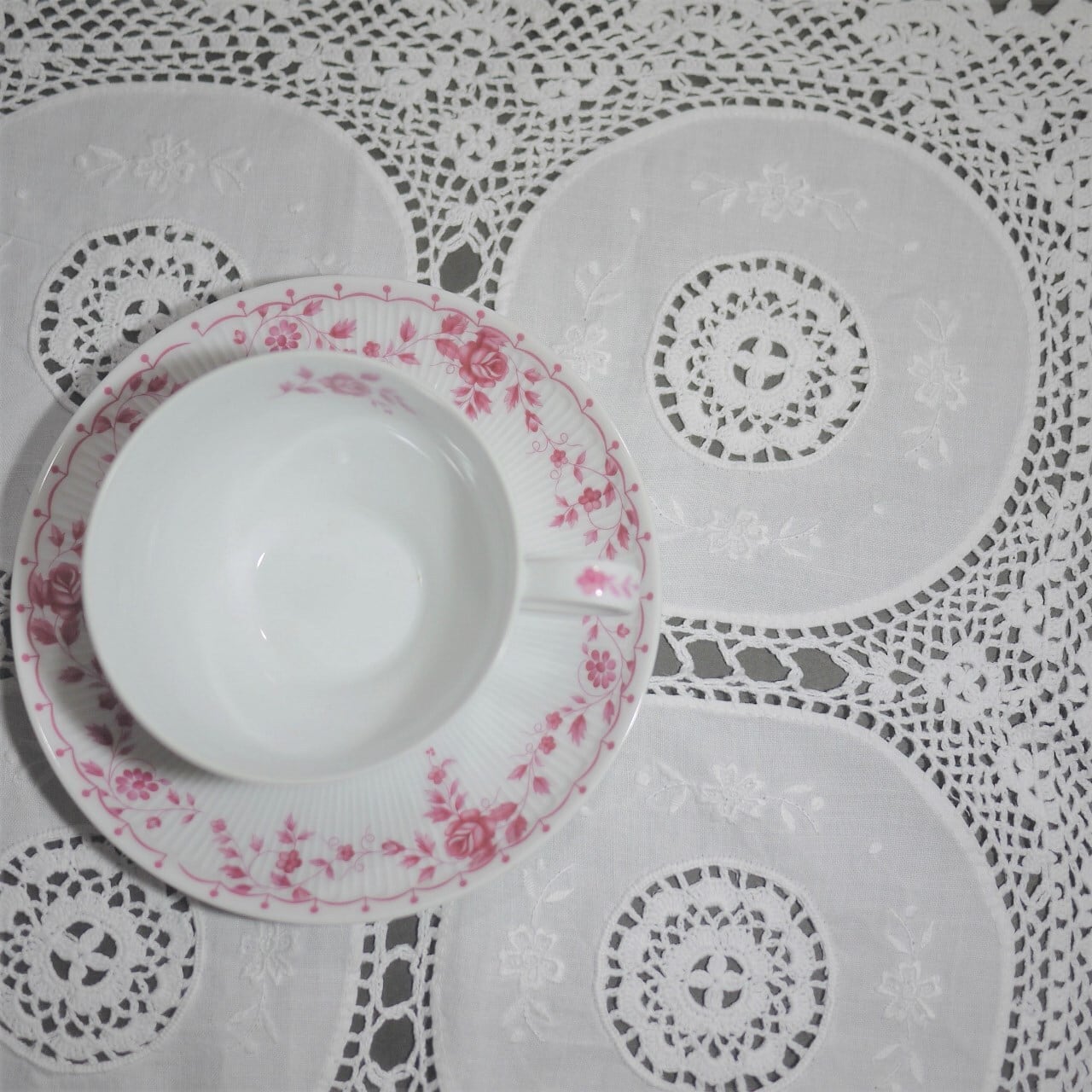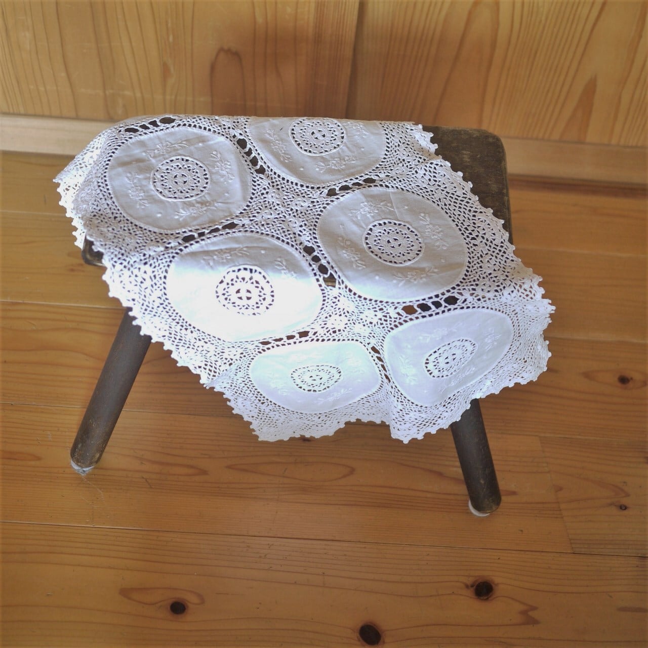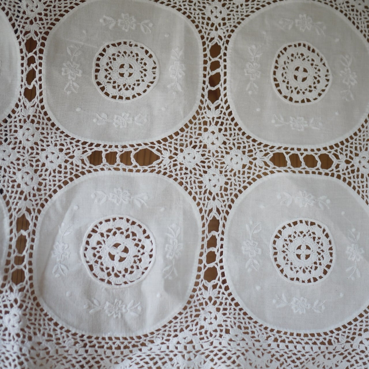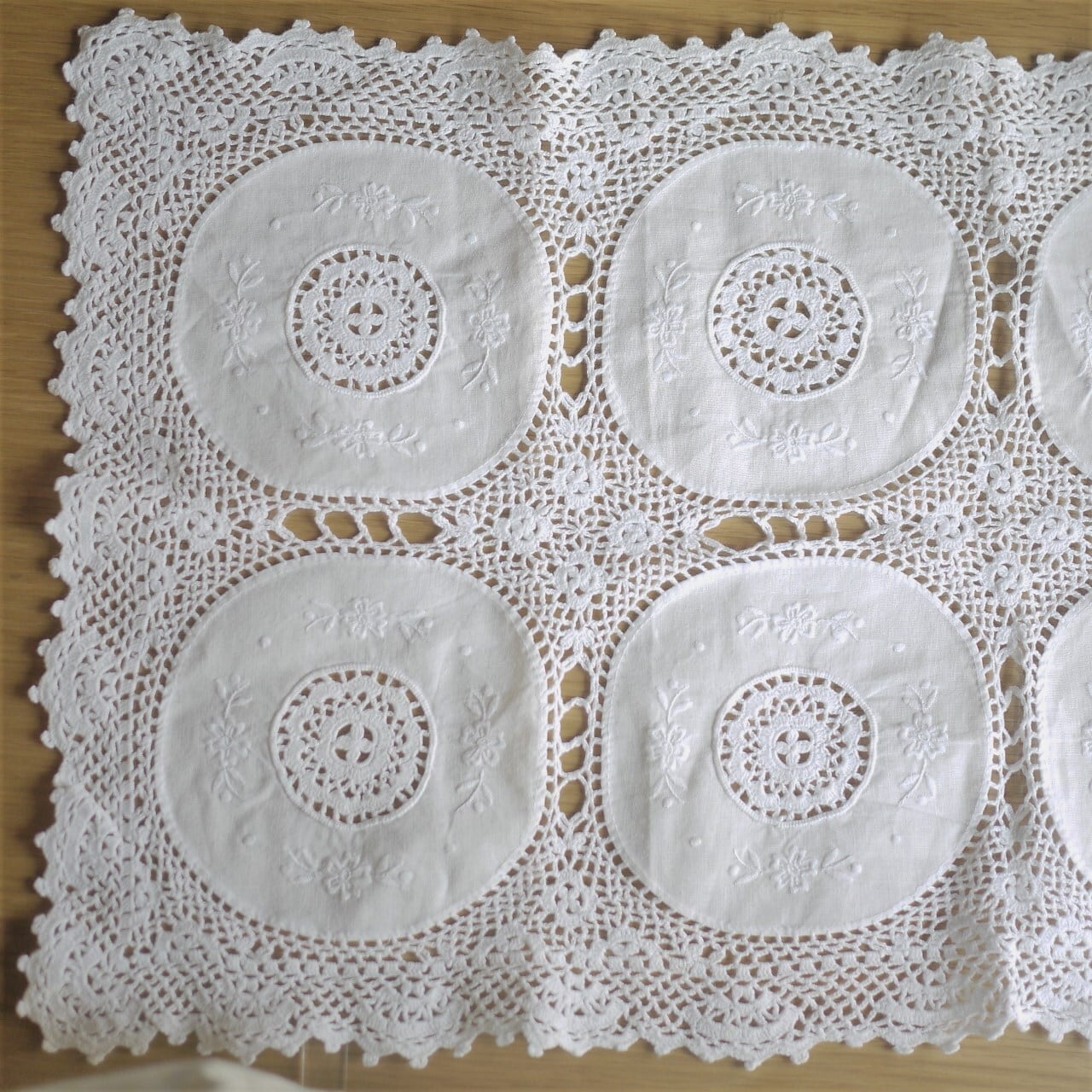 [白いテーブルセンター レースと刺繍 ドイツ]