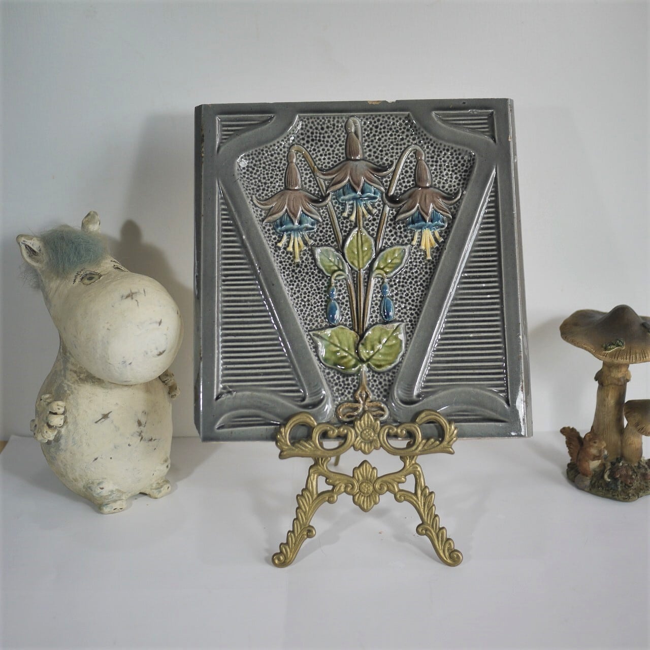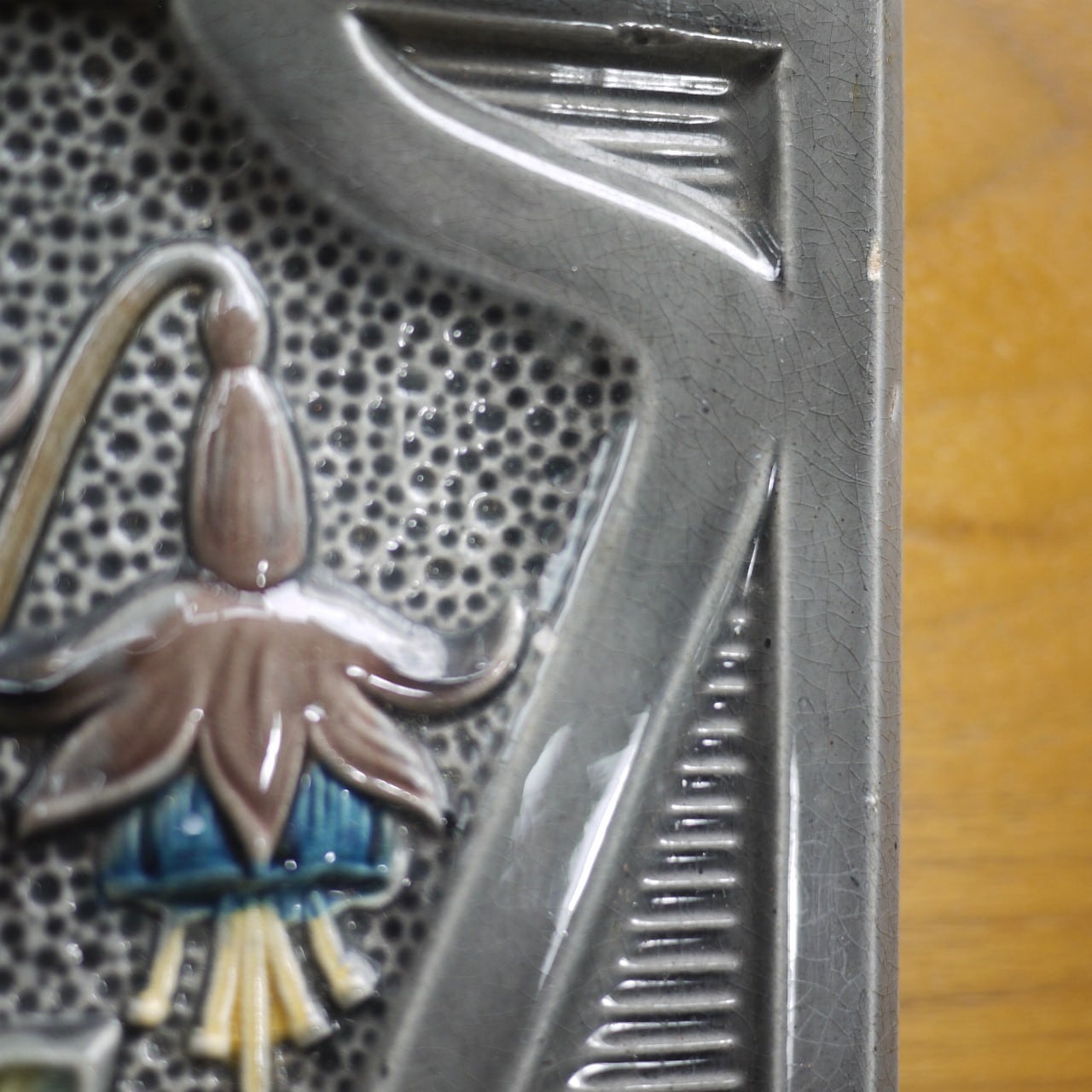 セラミックアート 角タイル20cm フクシア レリーフ アールヌーボー ドイツ