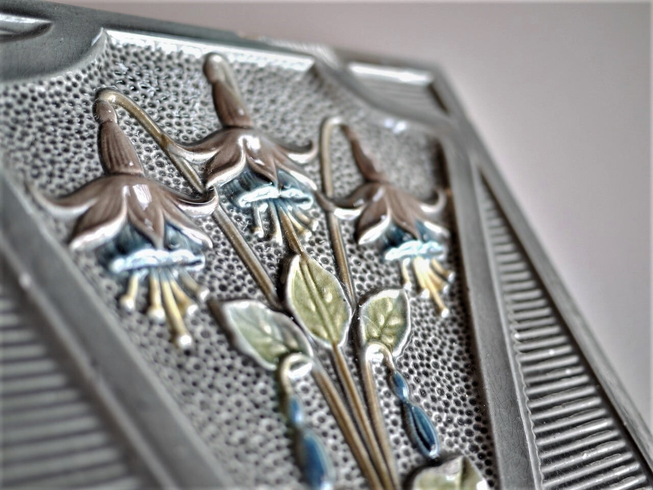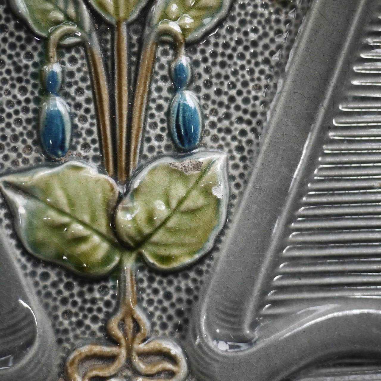 植物をモチーフにしたアールヌーボー様式の陶板です。