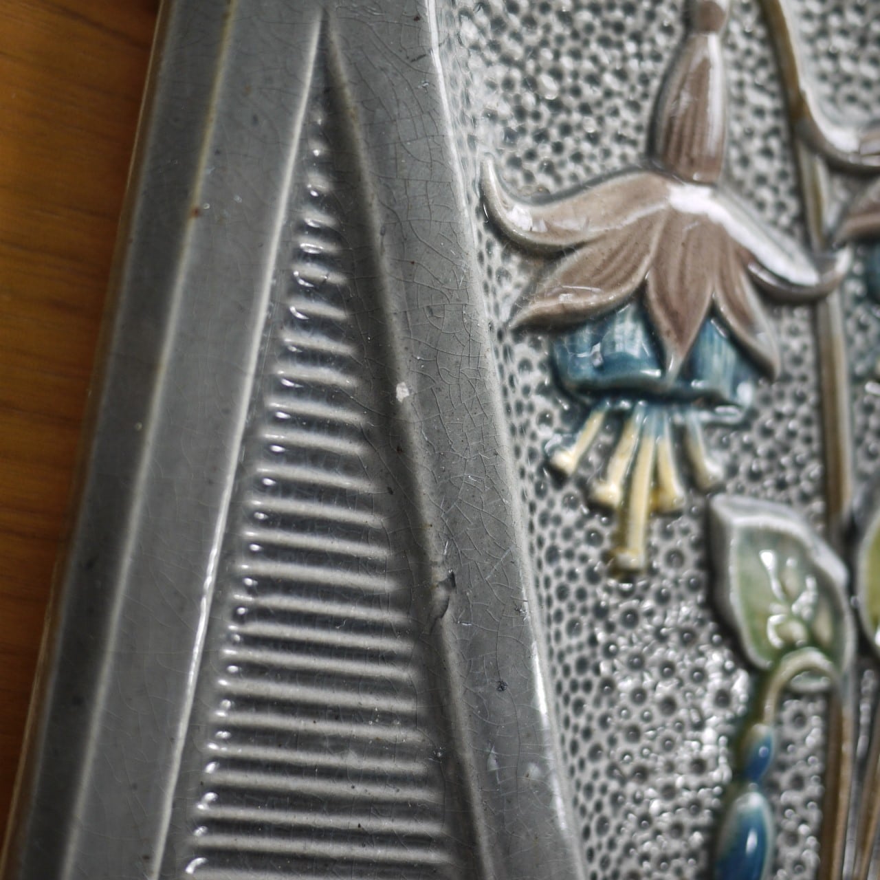 [セラミックアート 角タイル20cm フクシア レリーフ アールヌーボー ドイツ]