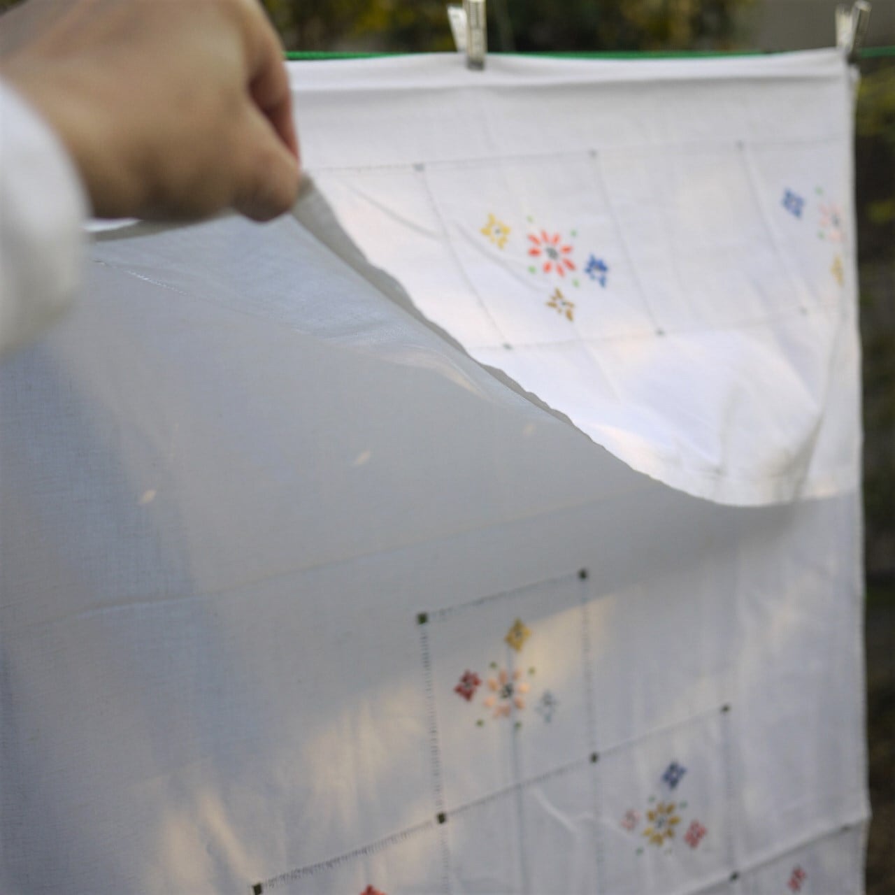 上辺を折りかえし、カーテンや間仕切りなどにつくられたオーバータオル。