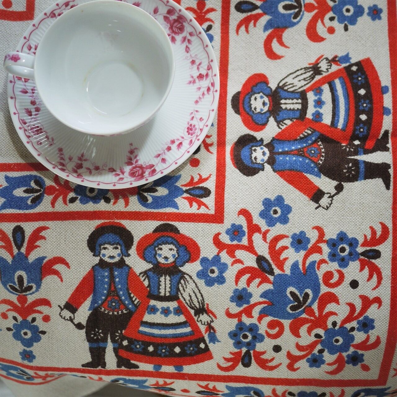 可愛い民族衣装のカップルがプリントされたクロス。