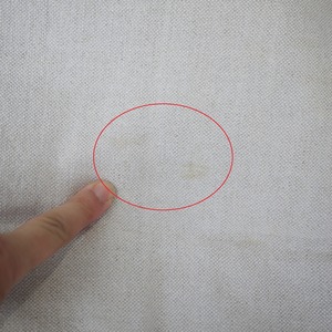 布地縁にプリントの一部が付着しています。
