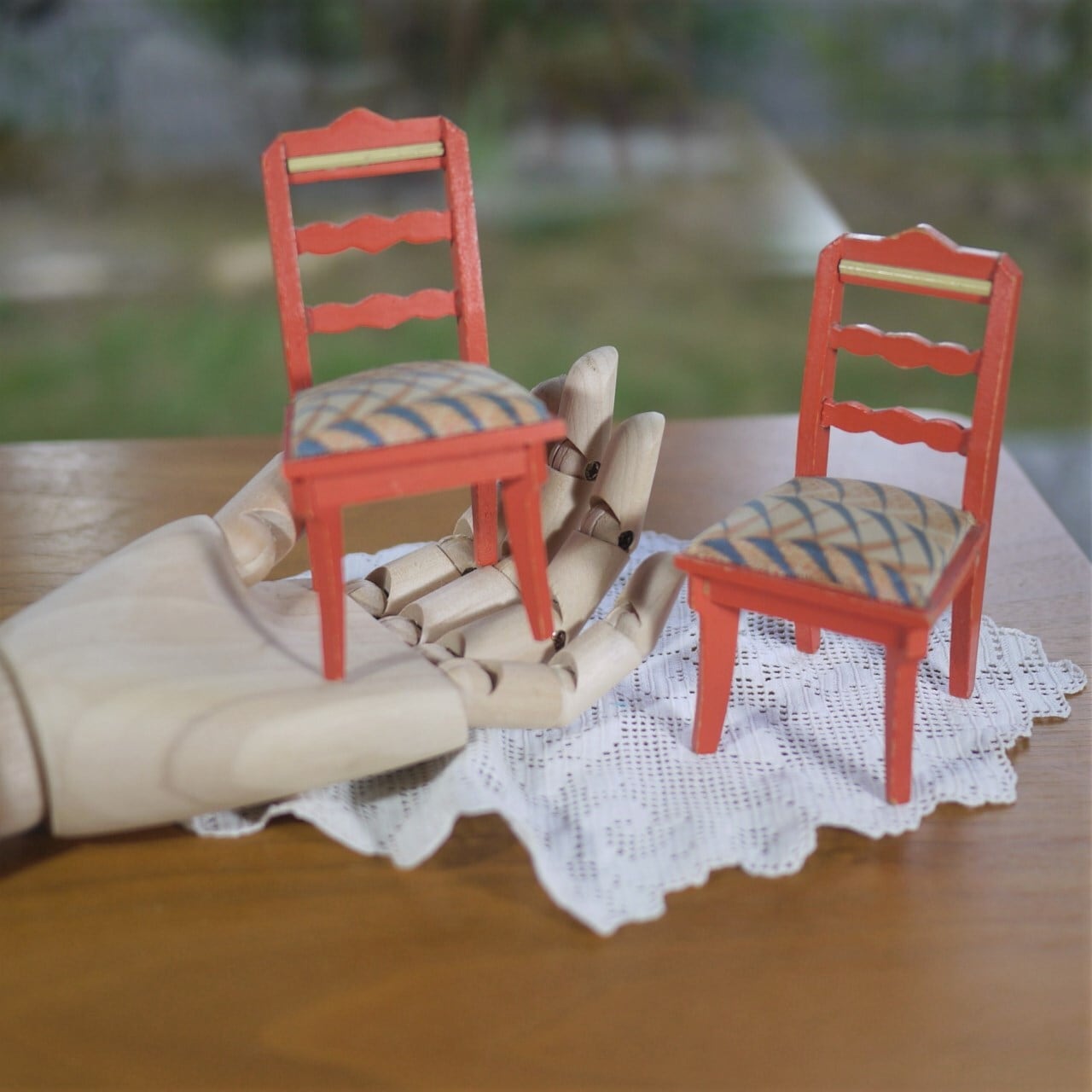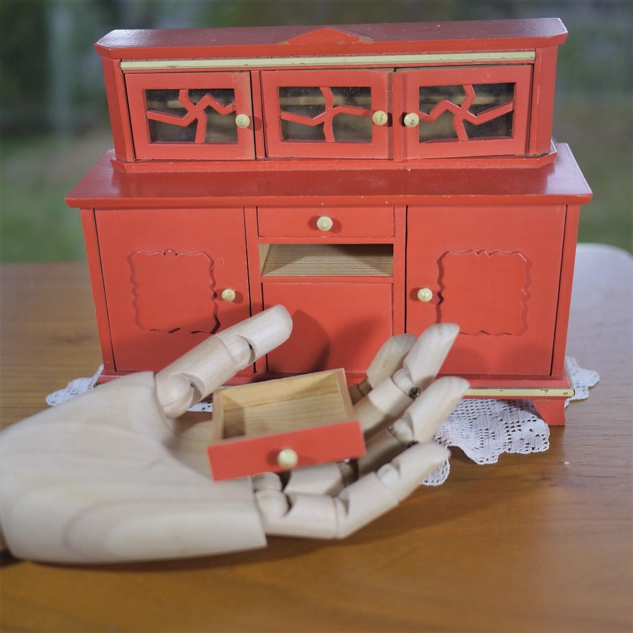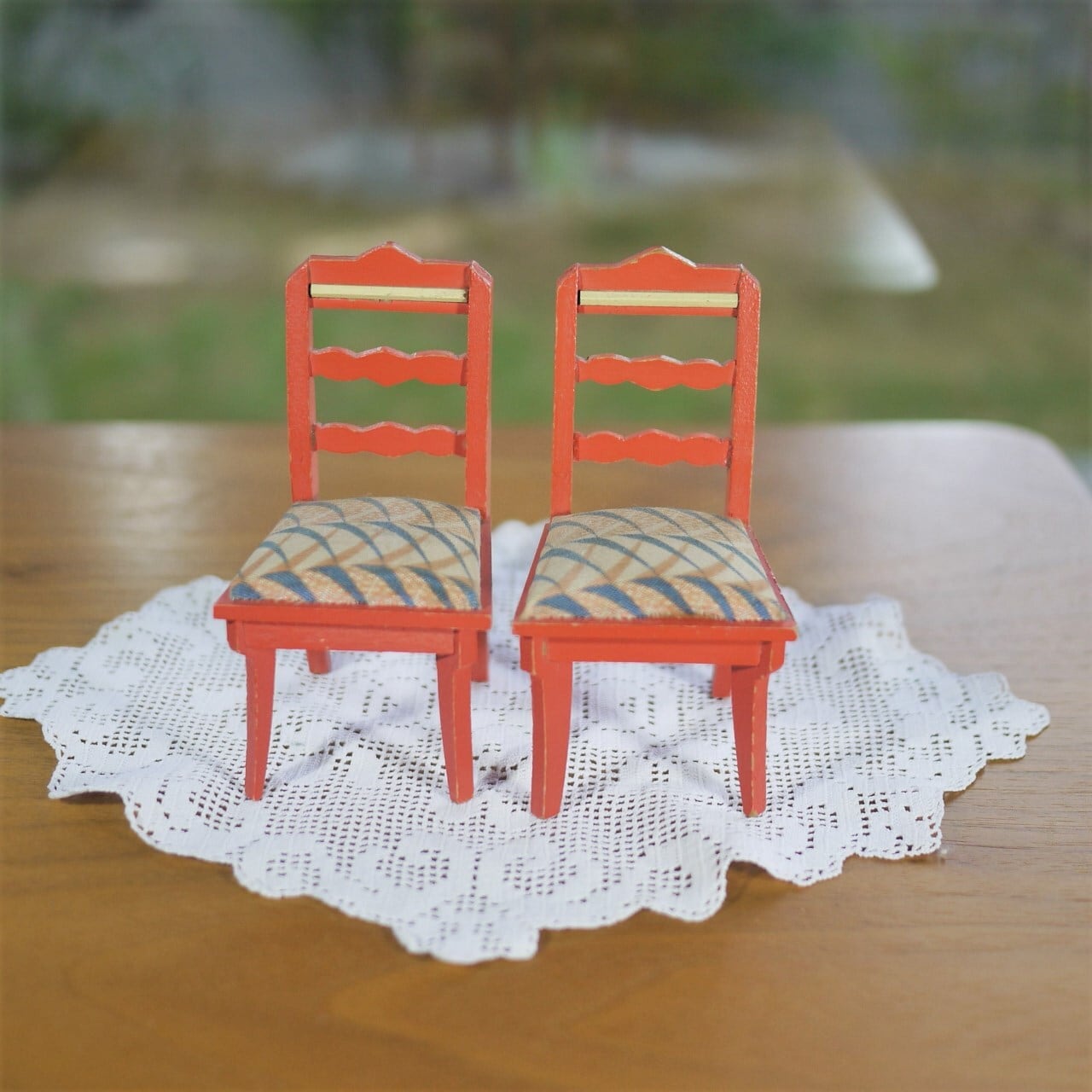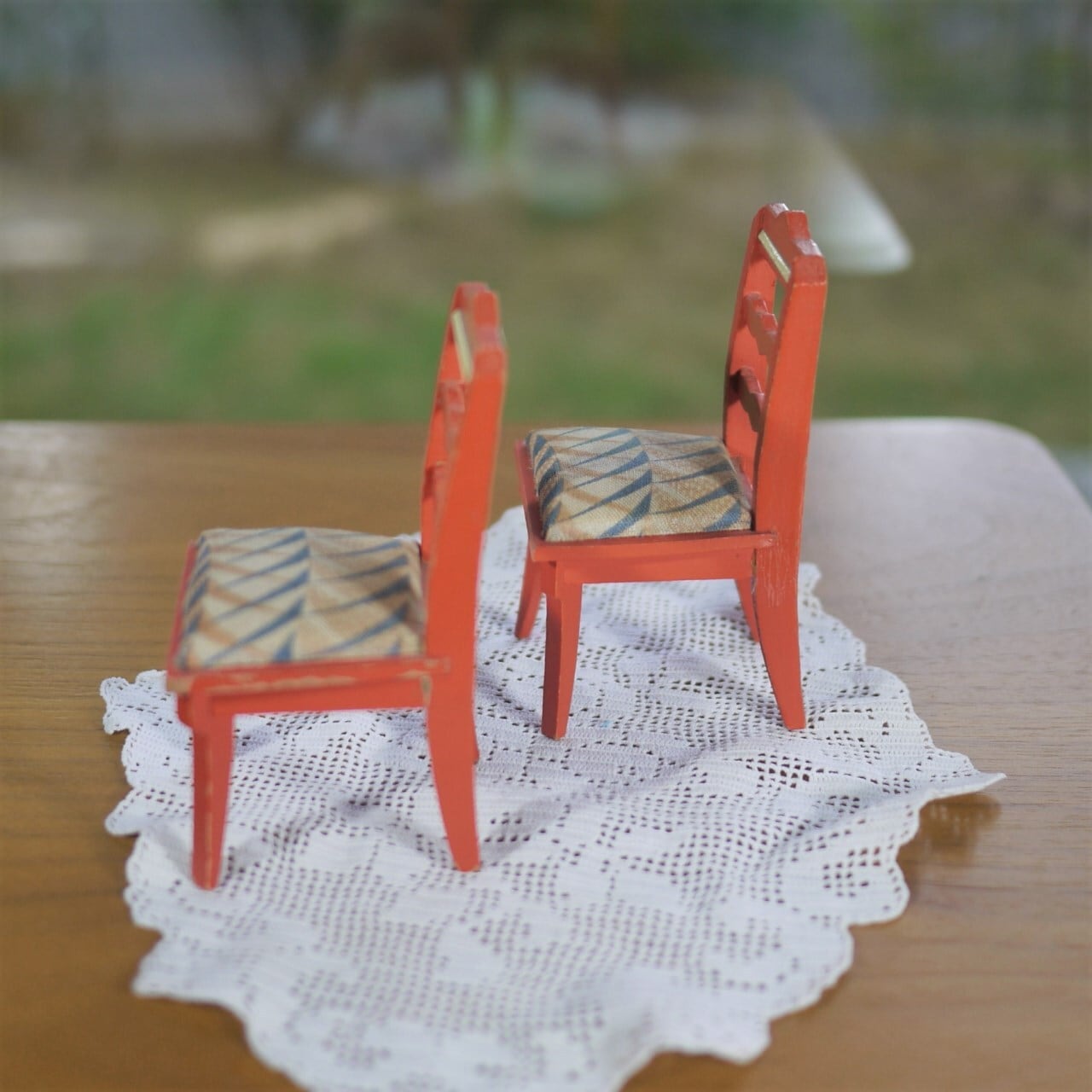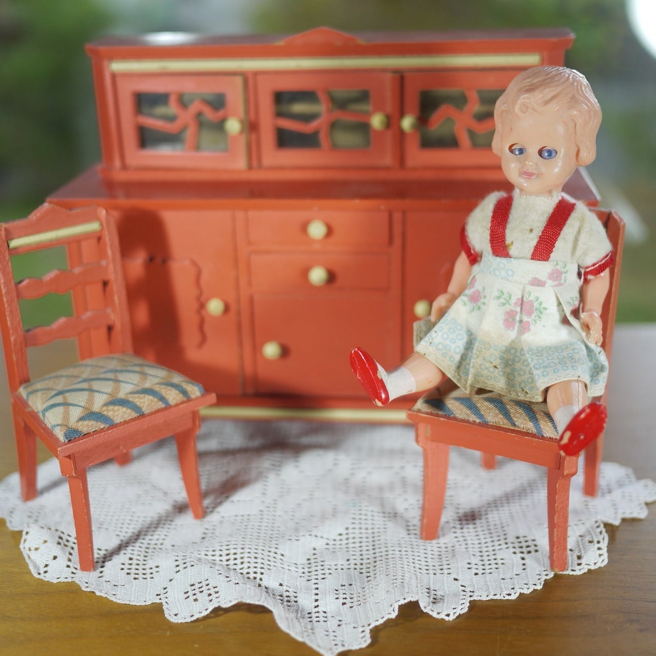 木製カップボードとチェア2脚 ドイツ ドールハウス