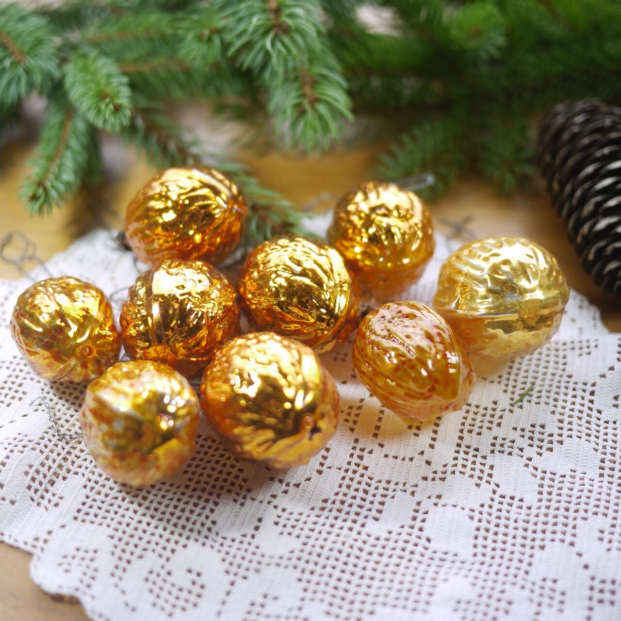 クルミ型ガラス玉9個 クリスマスクーゲル ツリーオーナメント ドイツ