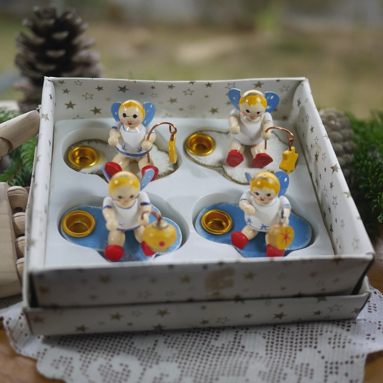 ランタンを持つ天使 キャンドルホルダー4個 クリスマスオーナメント エルツ
