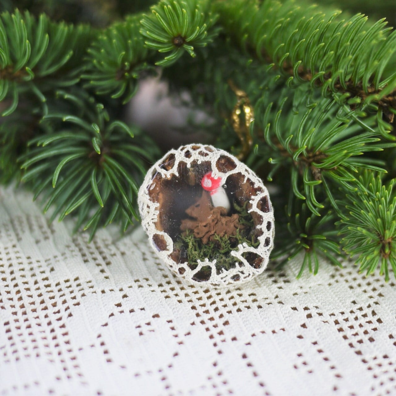 クルミオーナメント ハリネズミとキノコ オリジナル