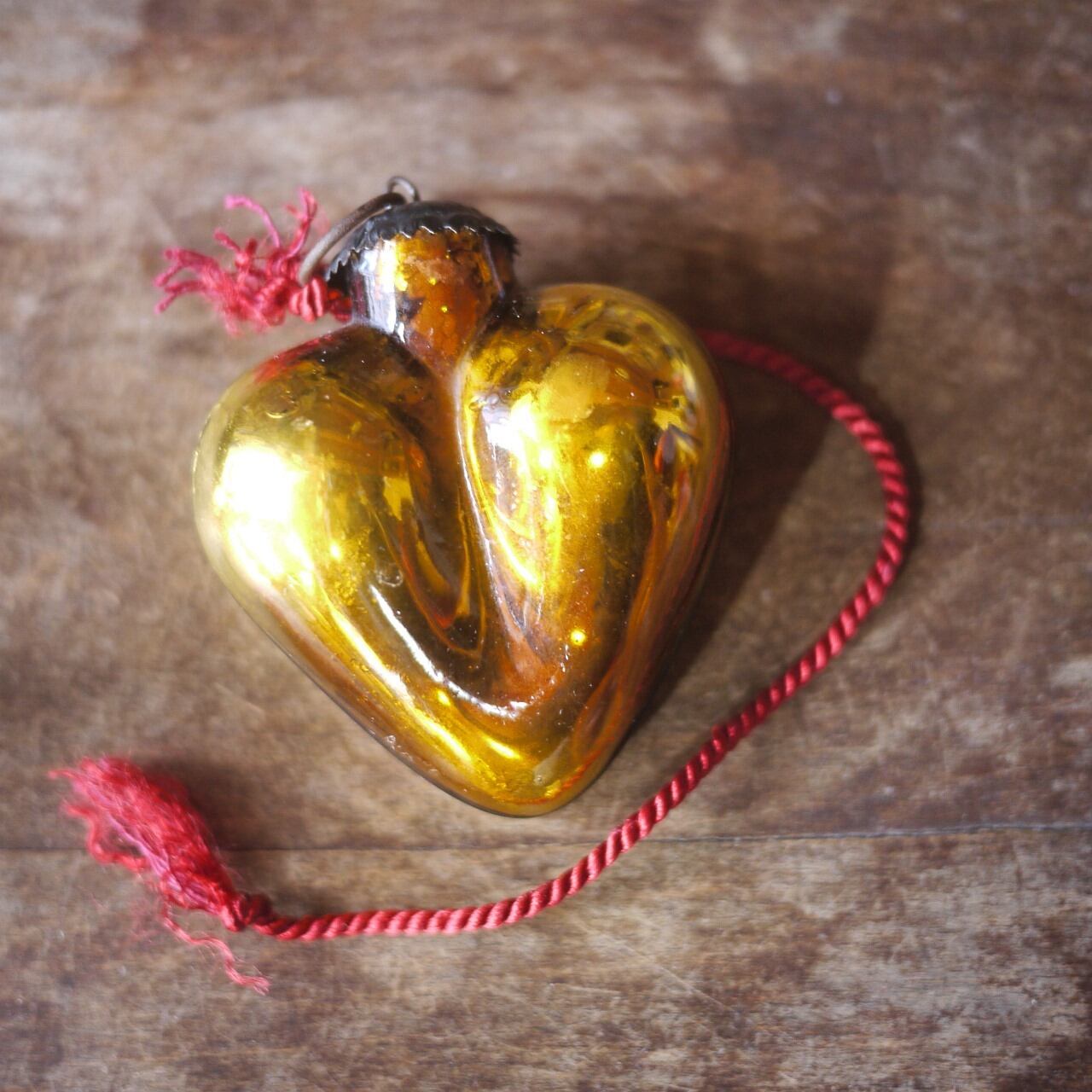 ハート型クリスマスクーゲル アンバーガラス ドイツ